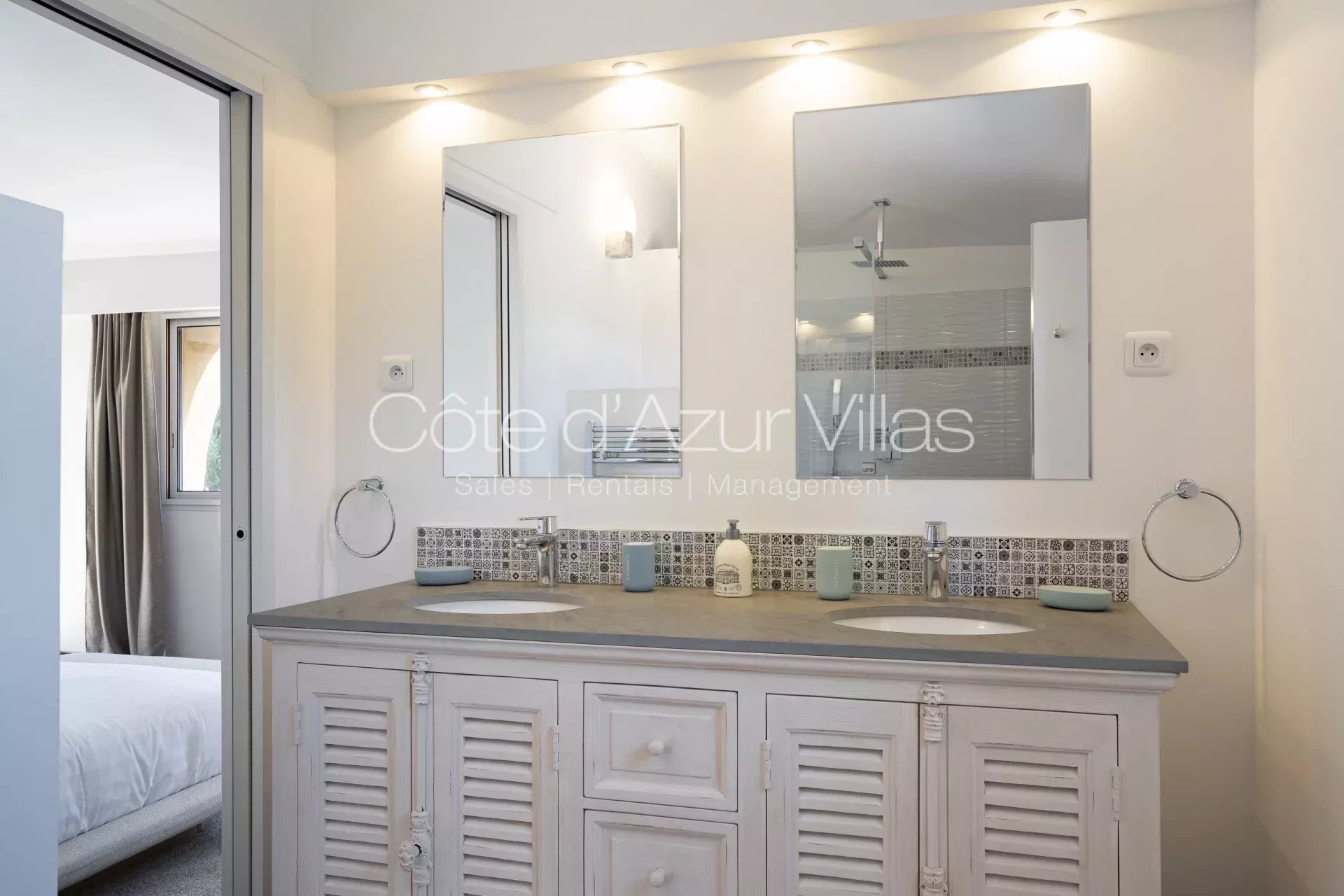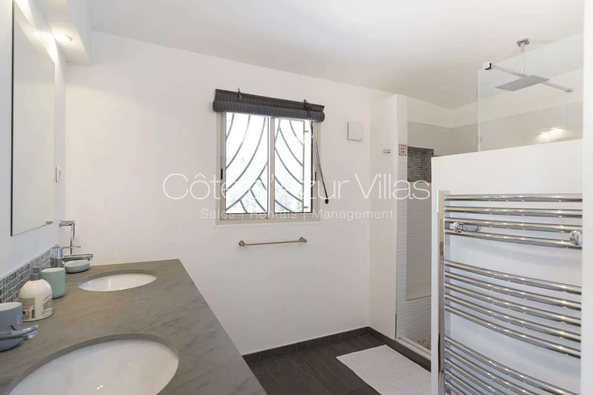 - une salle de douche avec deux vasques