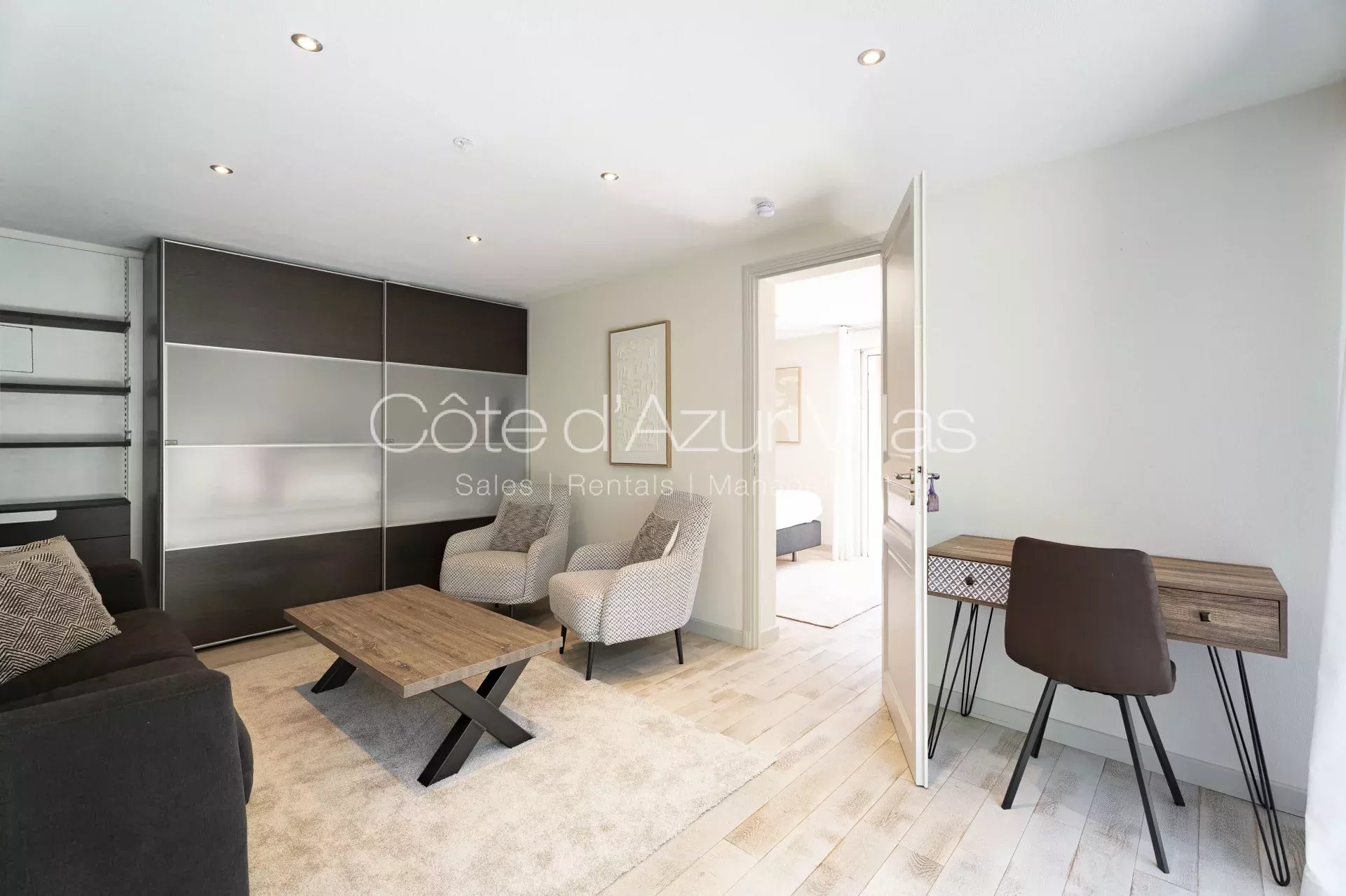- un vaste espace salon avec de nombreux espaces de rangement