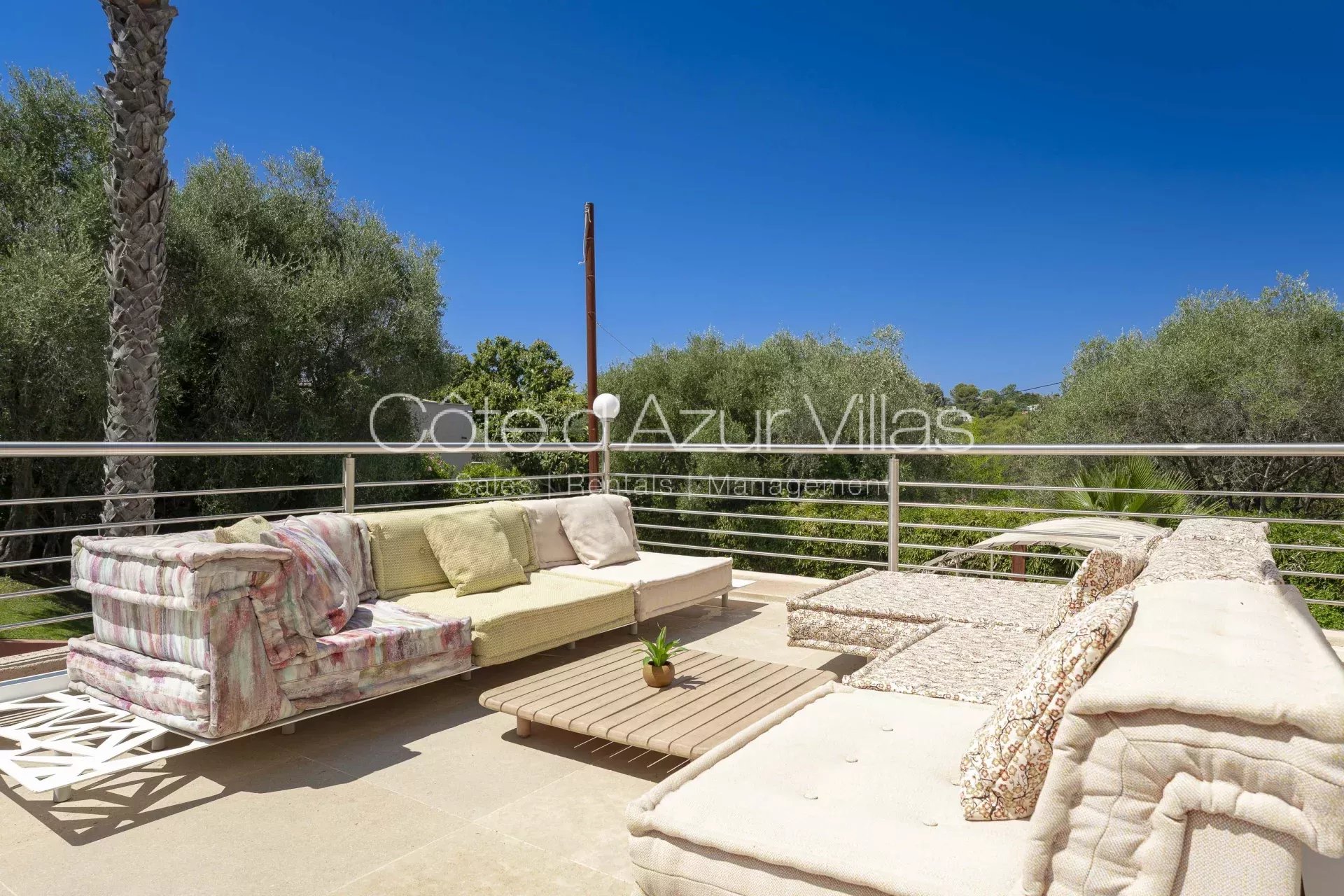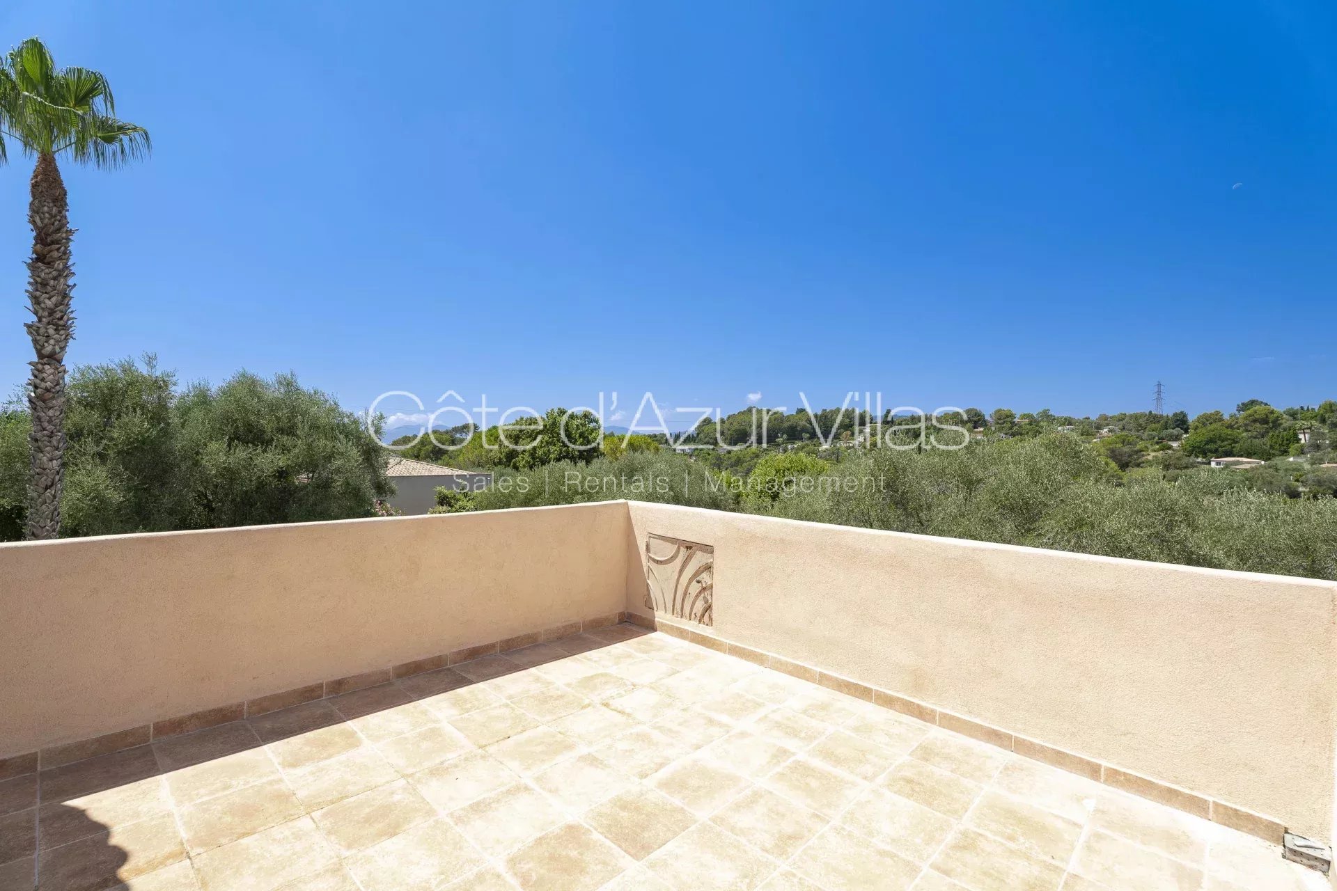 Agréable et spacieuse villa dans un quartier calme à flanc de colline, à 15 minutes à pied du cœur de la ville de Mougins, et à 15 minutes en voiture de Sophia-Antipolis et des écoles internationales.