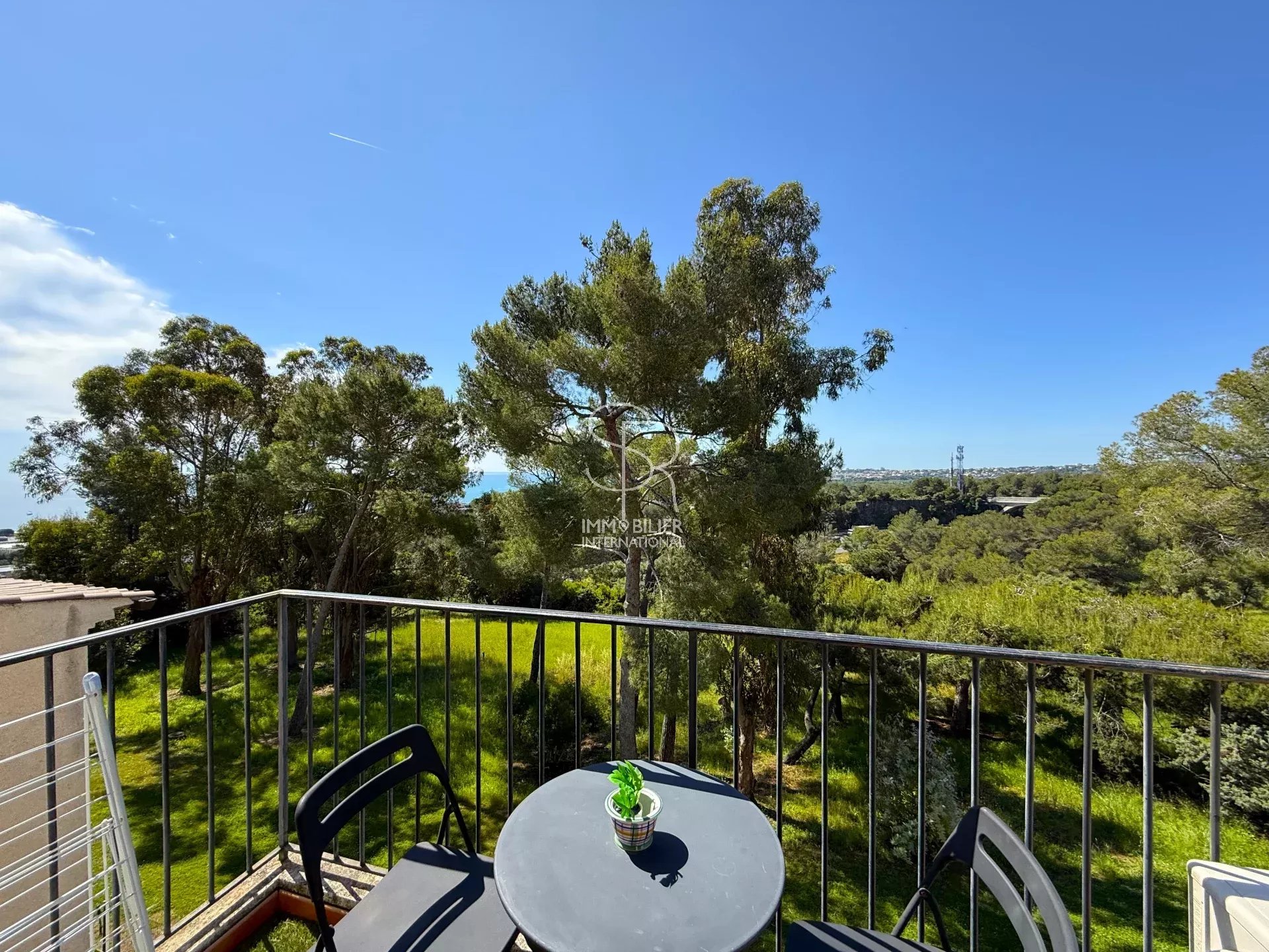All’ultimo piano con ascensore, bel trilocale di 66 m² (60 m² Carrez) in ottime condizioni, esposto a Sud con splendida vista mare.