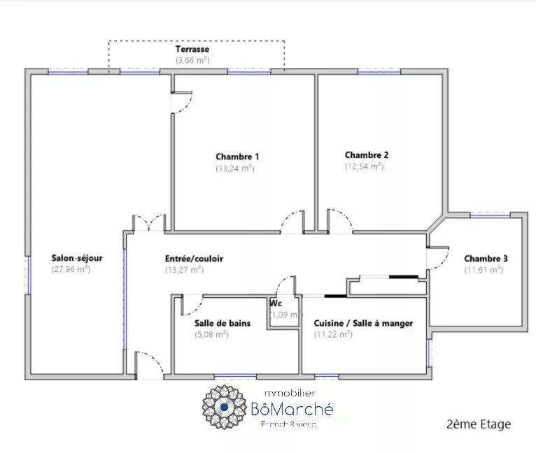 Il bénéficie d'une belle luminosité et d'une vue dégagée jusqu'à la mer! Il dispose de 3 belles chambres et d'une grande pièce de vie. On peut également très facilement créer un espace télétravail dans la pièce de vie.