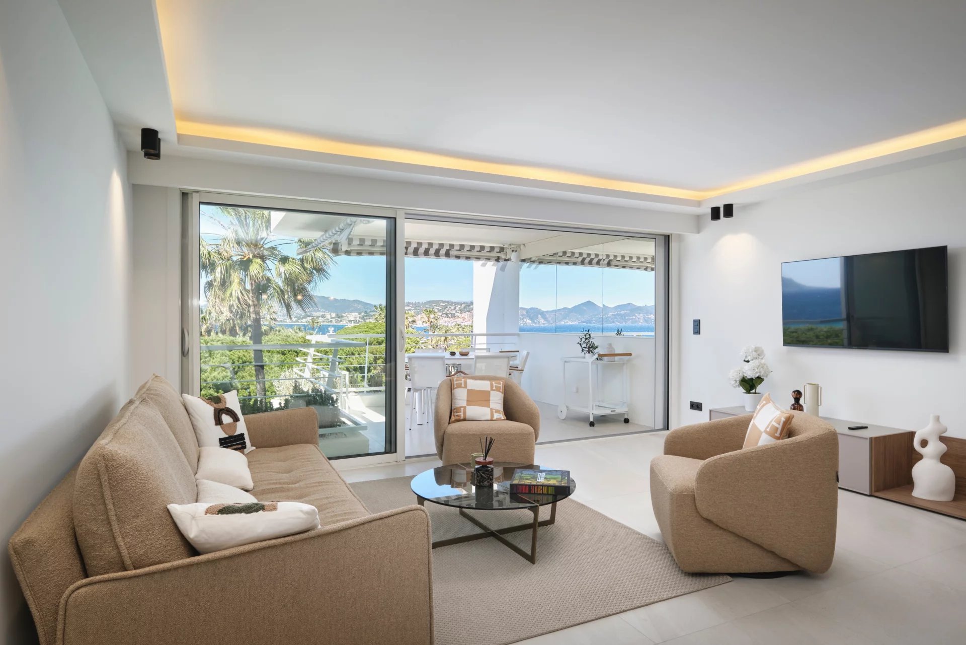 Sur la plus belle promenade de la cote d'Azur dans une résidence de standing avec gardien en étage élevé donnant sur une vue mer panoramique et Esterel Magnifique appartement entièrement rénové avec des matériaux des grandes qualités et tous le raffinement possible ,avec un hall distribuant la cuisine ouverte et équipée le séjour donnant sur la terrasse et sa vue unique ,et coté nuit ,3 chambres en suites avec leurs salles de douches un toilette invité. Il est possible d'acquérir un garage ce qui est rare dans ce secteur à 130.000 €