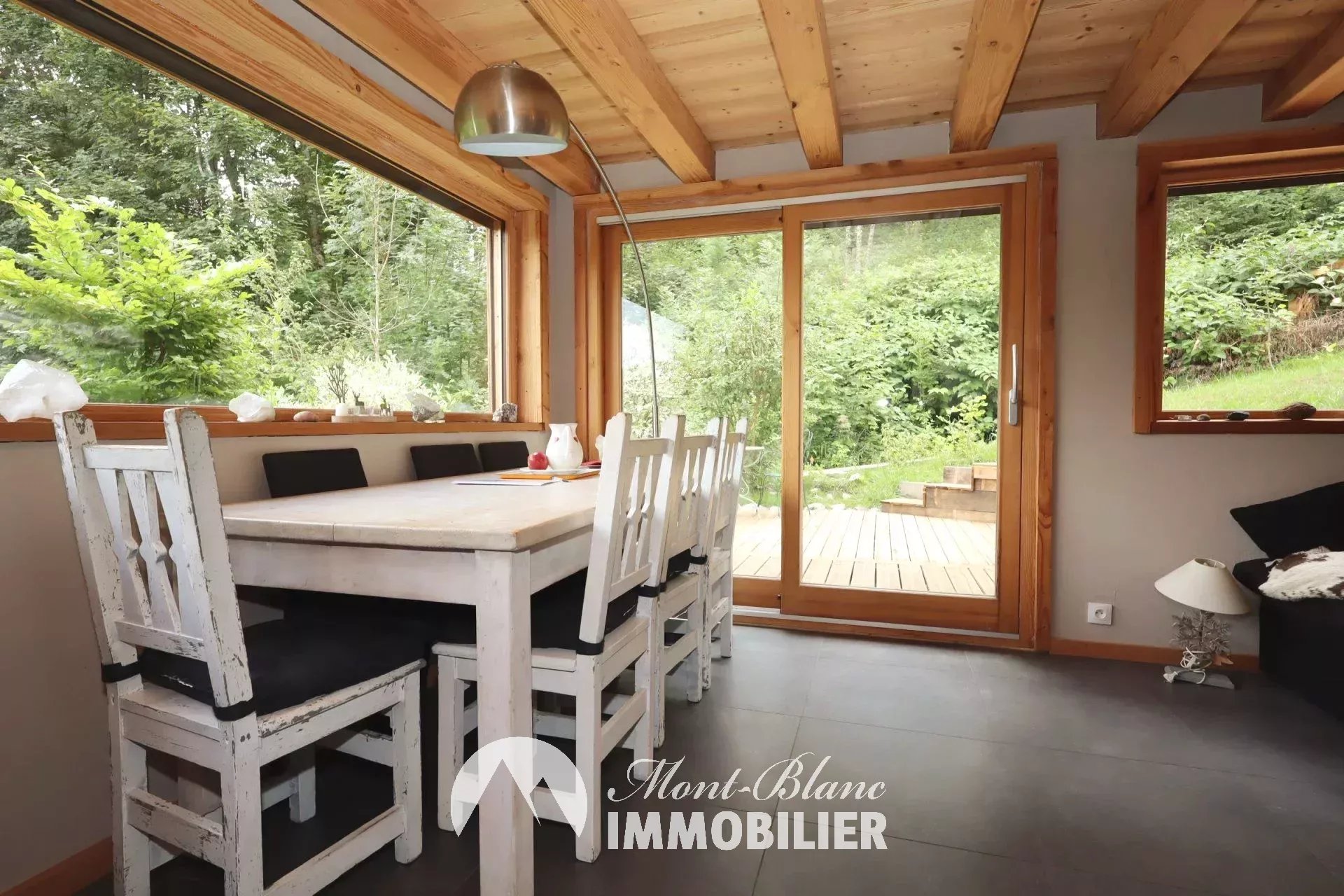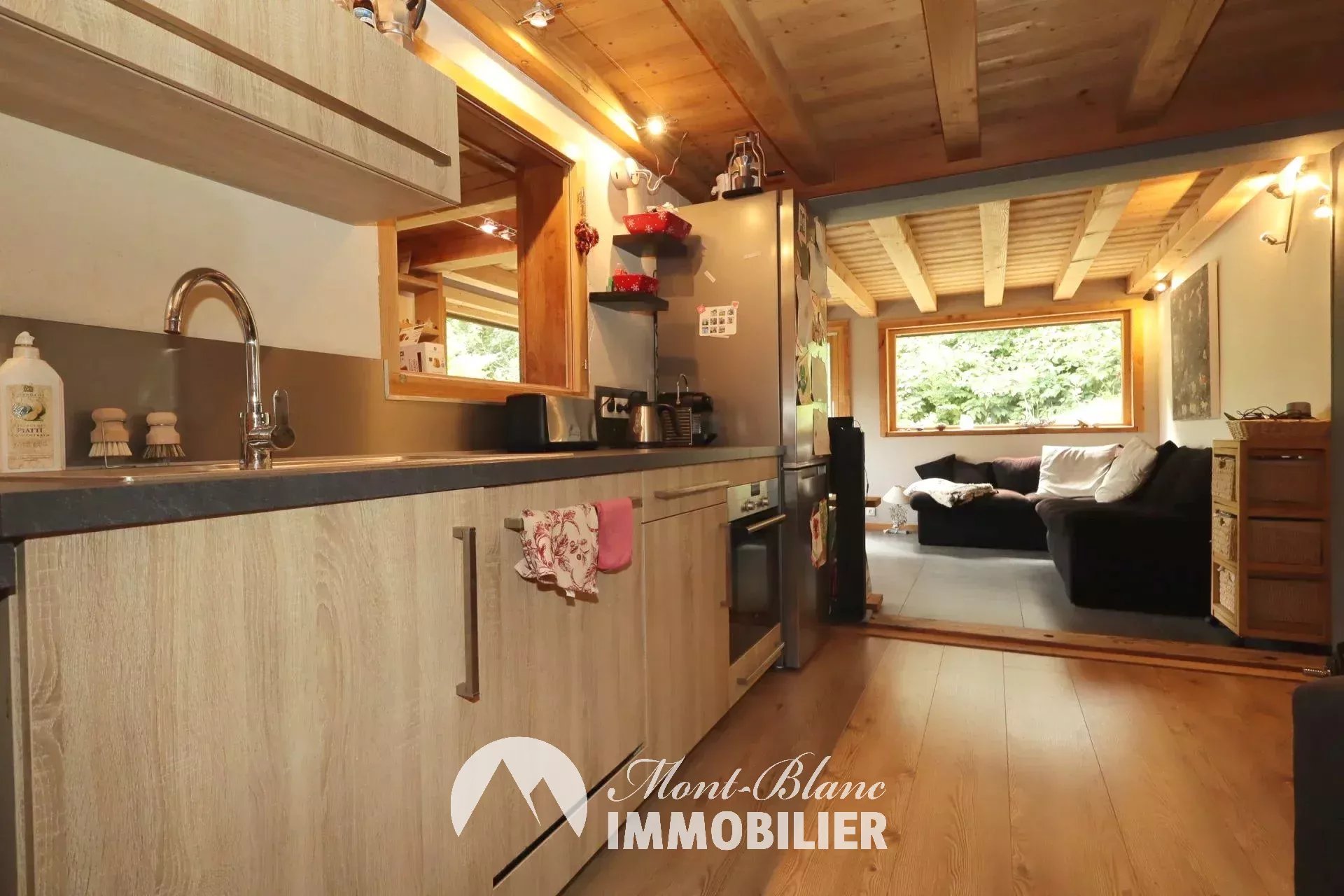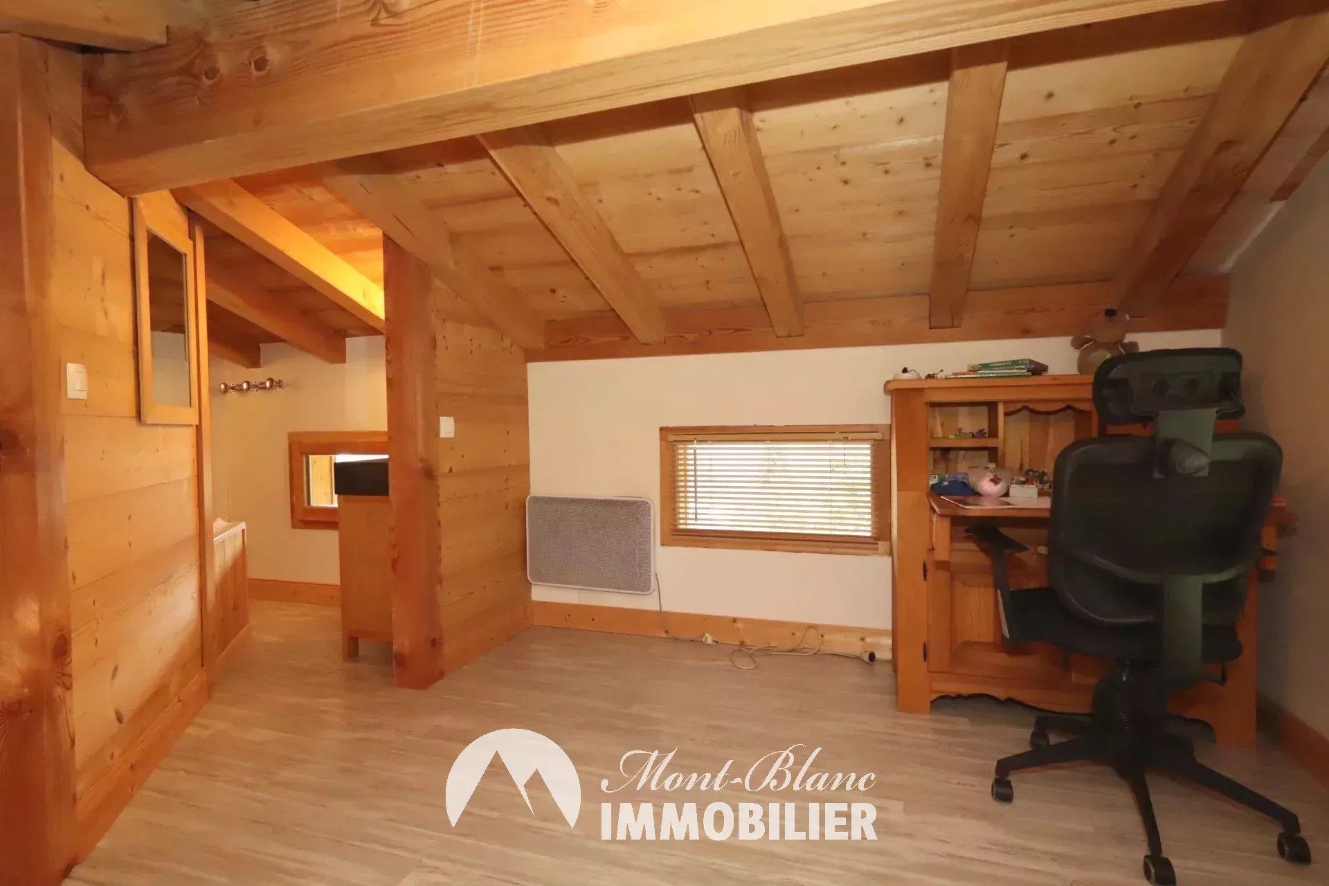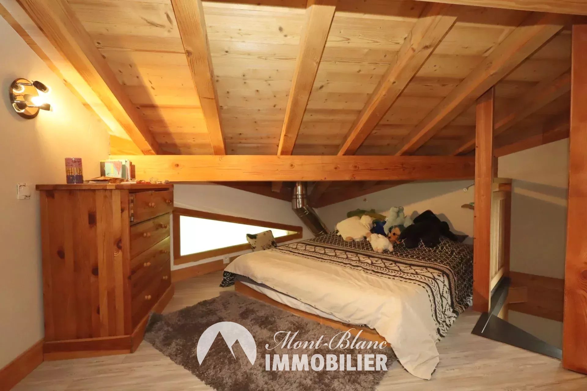 Location annuelle sur les hauteurs des Houches, secteur des Chavants. Chalet individuel de 74m² (110m² habitable) avec terrasse, jardin et garage, composé comme suit : entrée avec rangements, pièce de vie avec poêle à bois, accès à la terrasse et au jardin, cuisine ouverte équipée, WC séparé. Au 1er étage, dégagement avec rangements, espace nuit, grande suite avec possibilité de faire un dressing, salle d'eau avec WC. Au 2ème étage, une chambre double sous pente avec salle de bain et WC. Meublé Loyer : 2 400€ Dépôt de garantie : 3 000€