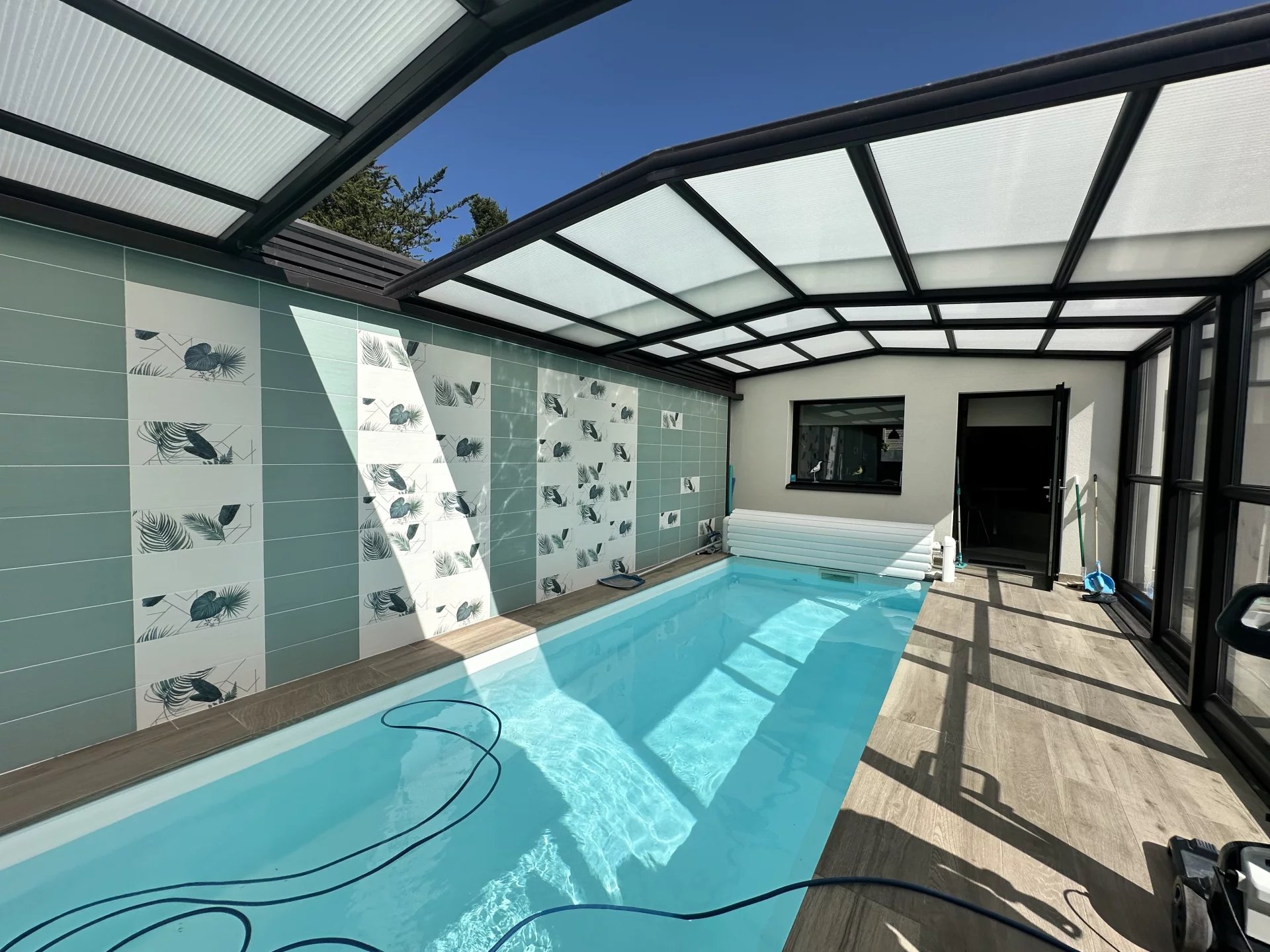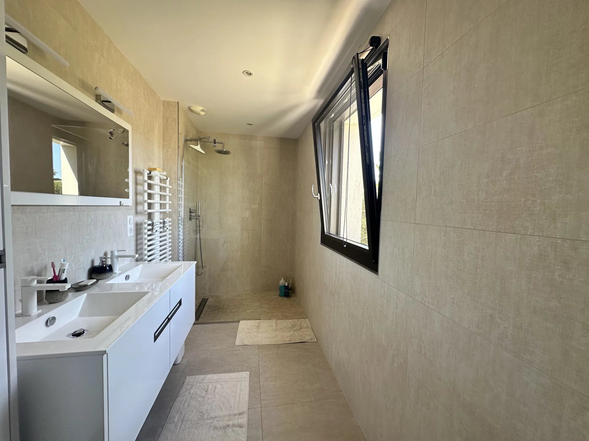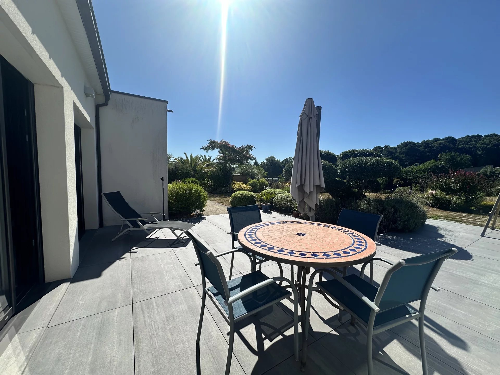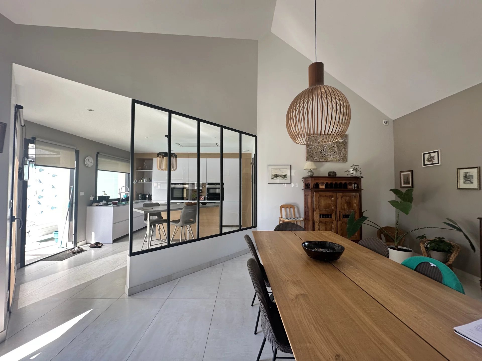 Belle maison familiale récente de plain pied d'environ 158m² sur un terrain de 1962m² exposé Sud, comprenant : Une belle pièce de vie avec cuisine équipée et arrière cuisine donnant sur le jardin paysagé et la piscine. Deux chambres avec placards, salle d'eau privative et une suite parentale avec dressing et salle d'eau. Parking pour 3 véhicules