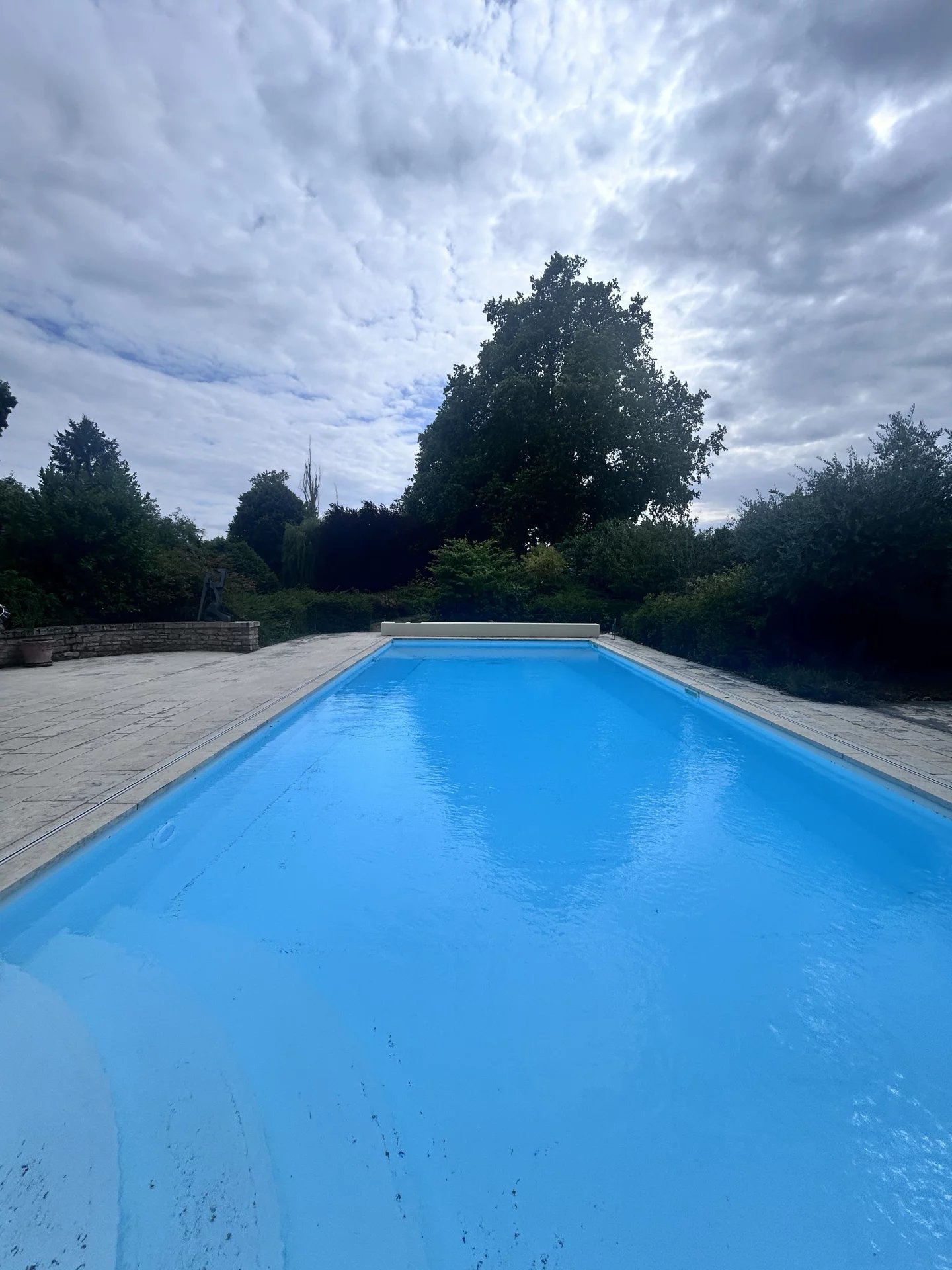 une piscine chauffée de 5 x 15 mètres s’intègre harmonieusement dans le décor verdoyant, véritable havre de détente en toute intimité.