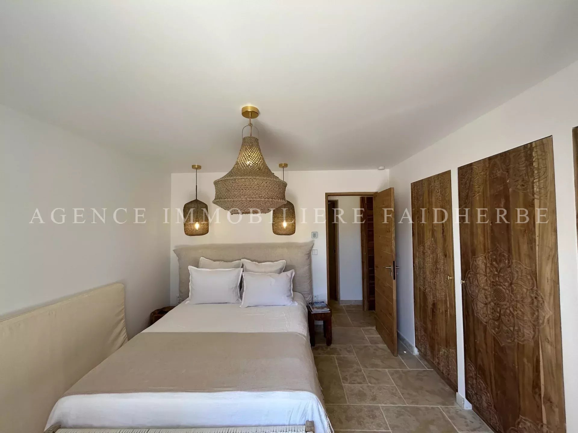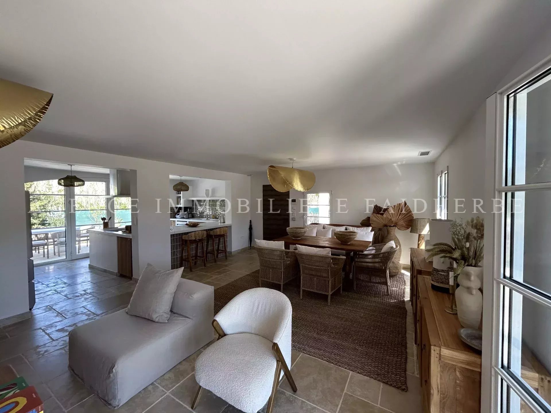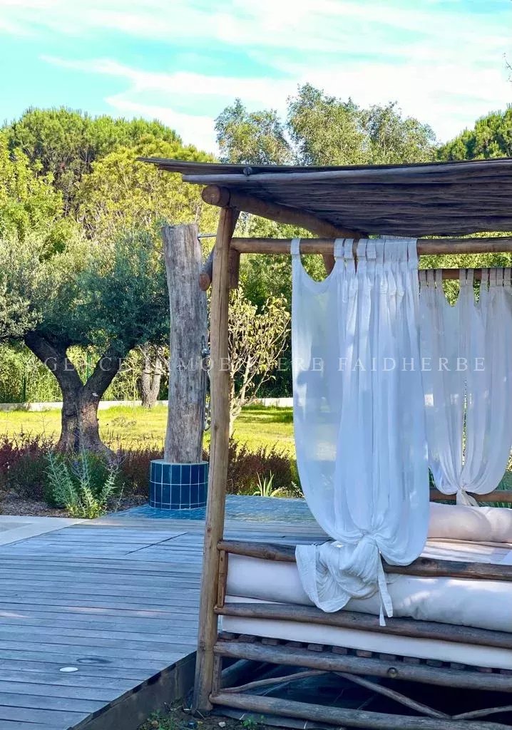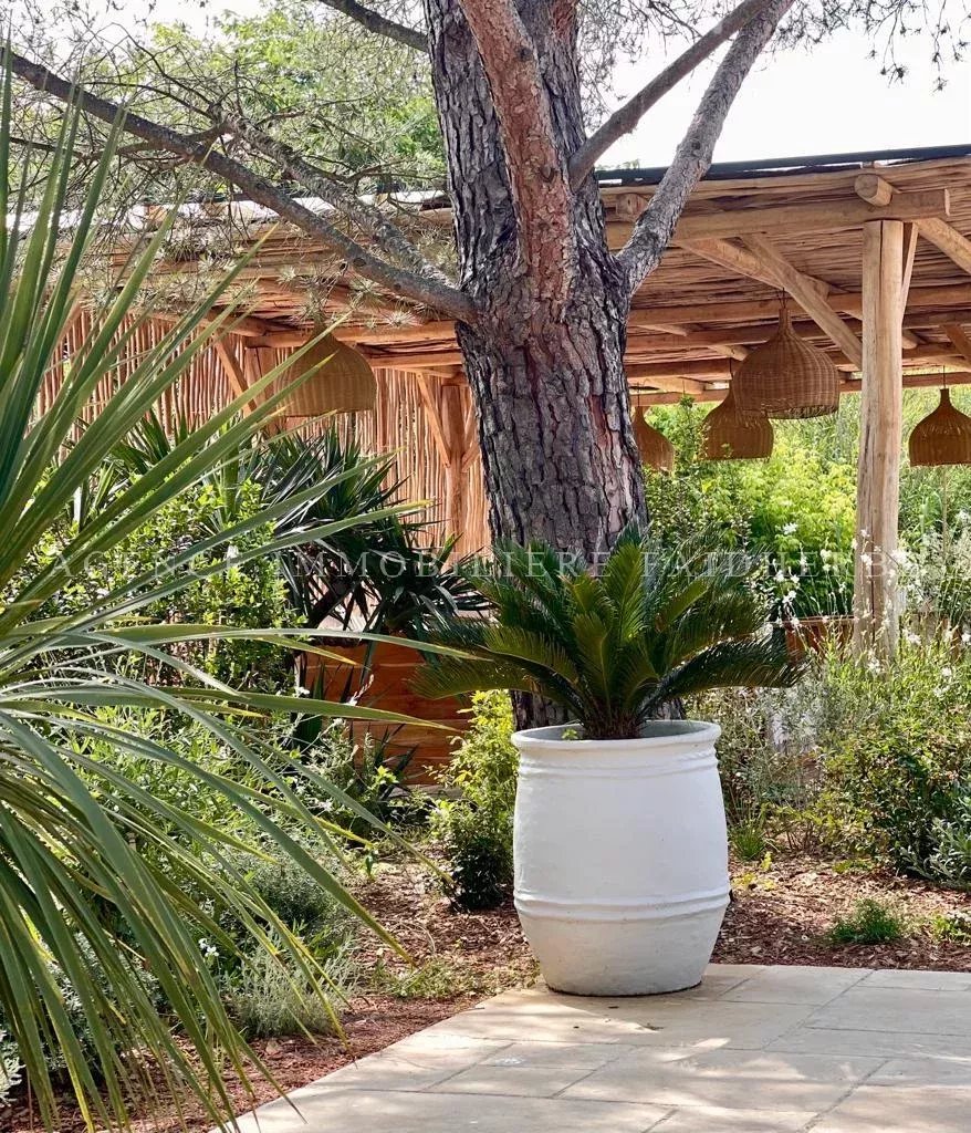Questa sontuosa villa a un piano, recentemente ristrutturata e arredata con gusto, dispone di una spaziosa cucina completamente attrezzata che si apre su un soggiorno e una sala da pranzo, nonché di cinque camere da letto con bagno privato con doccia e servizi igienici. Il giardino, punteggiato di piante e fiori mediterranei in uno stile bohémien e leggermente selvaggio, ospita una magnifica piscina. Potrete godervi appieno le splendide giornate estive grazie ai lettini prendisole, agli arredi da giardino ombreggiati, alla zona pranzo all'aperto e alla palestra all'aperto. La villa dispone inoltre di accesso a internet, aria condizionata e parcheggio esterno. Costi: pulizia 35 €/ora, biancheria 30 €/camera e tassa di soggiorno 6,91 €/giorno/adulto.