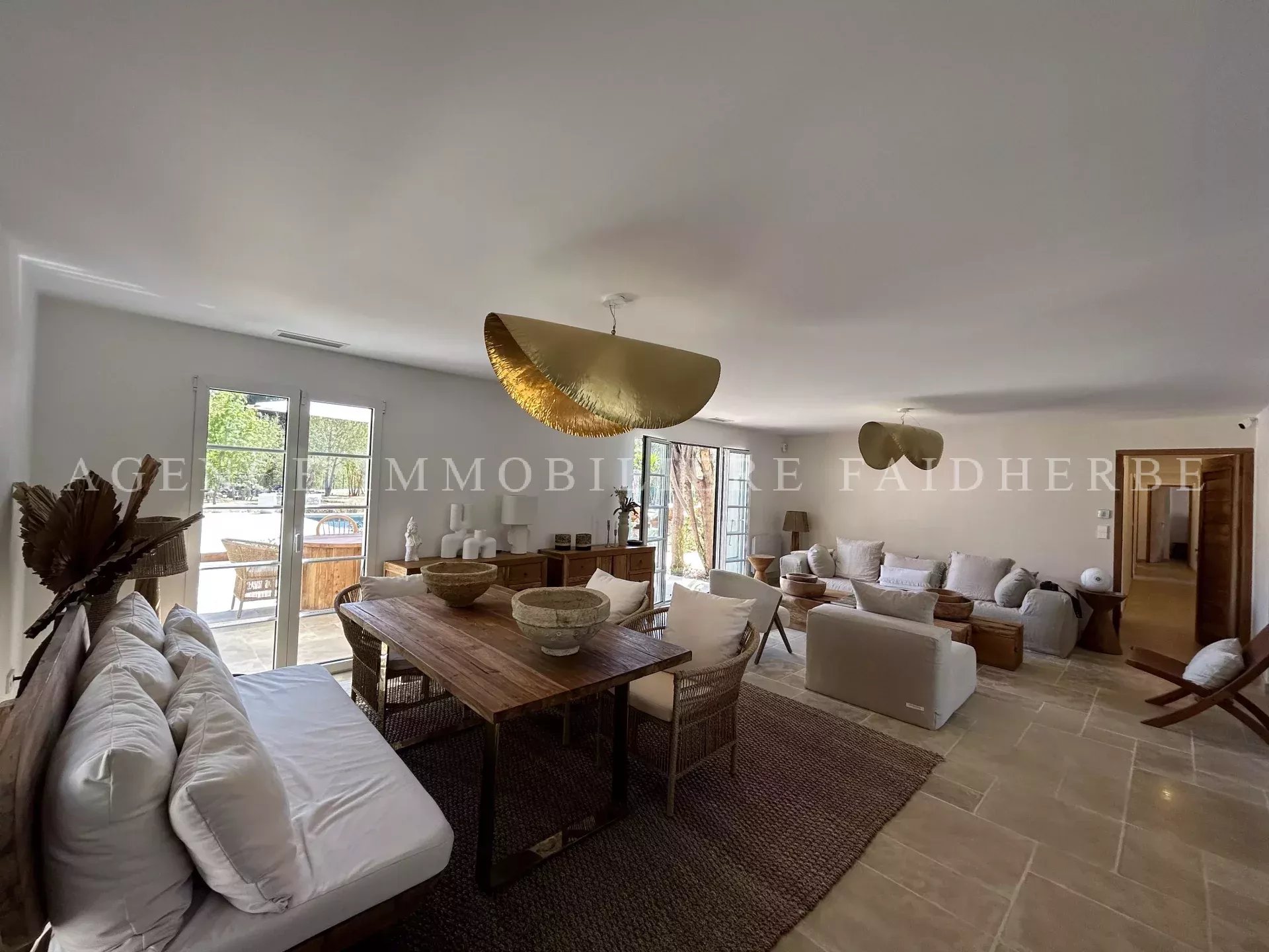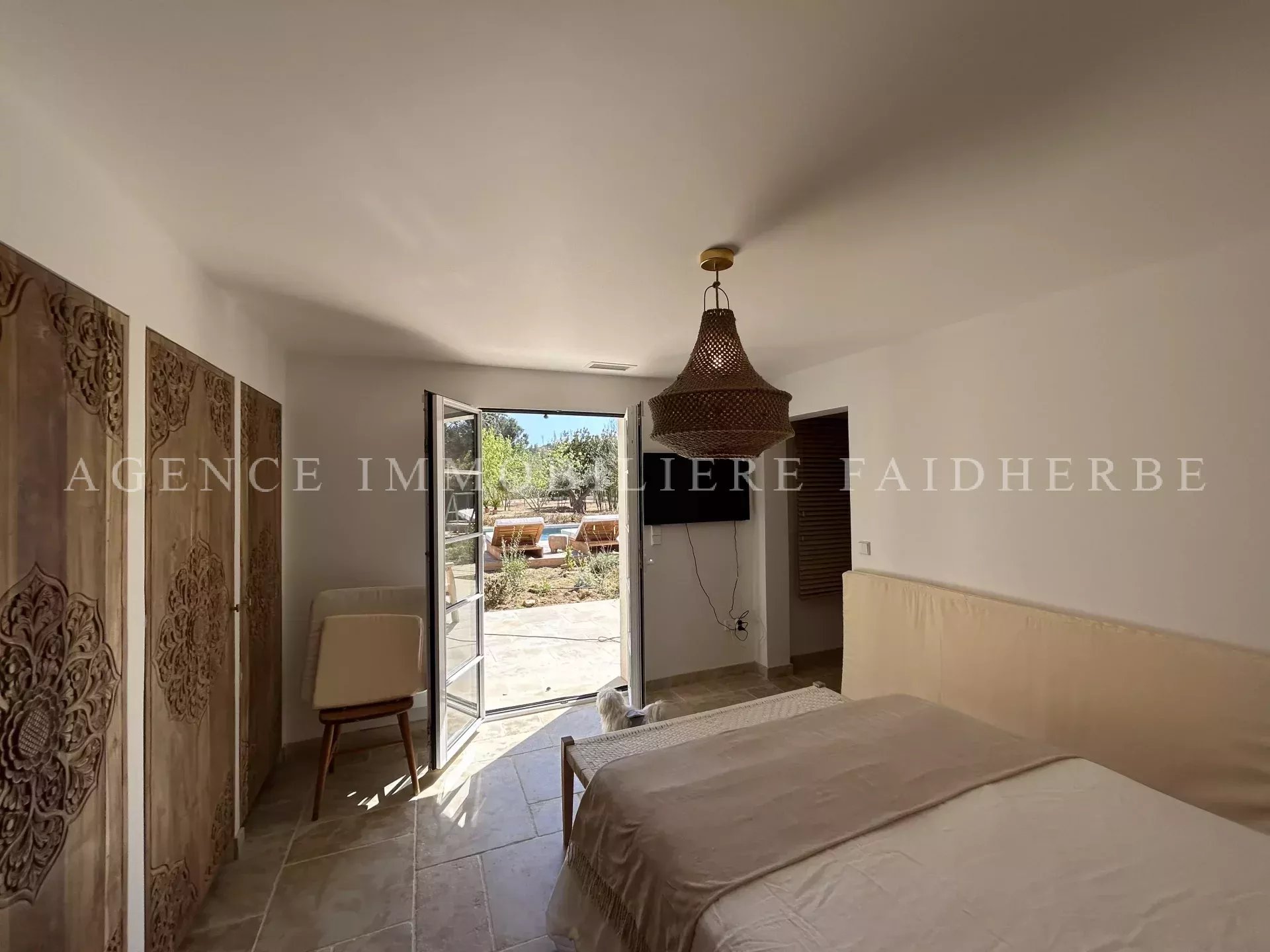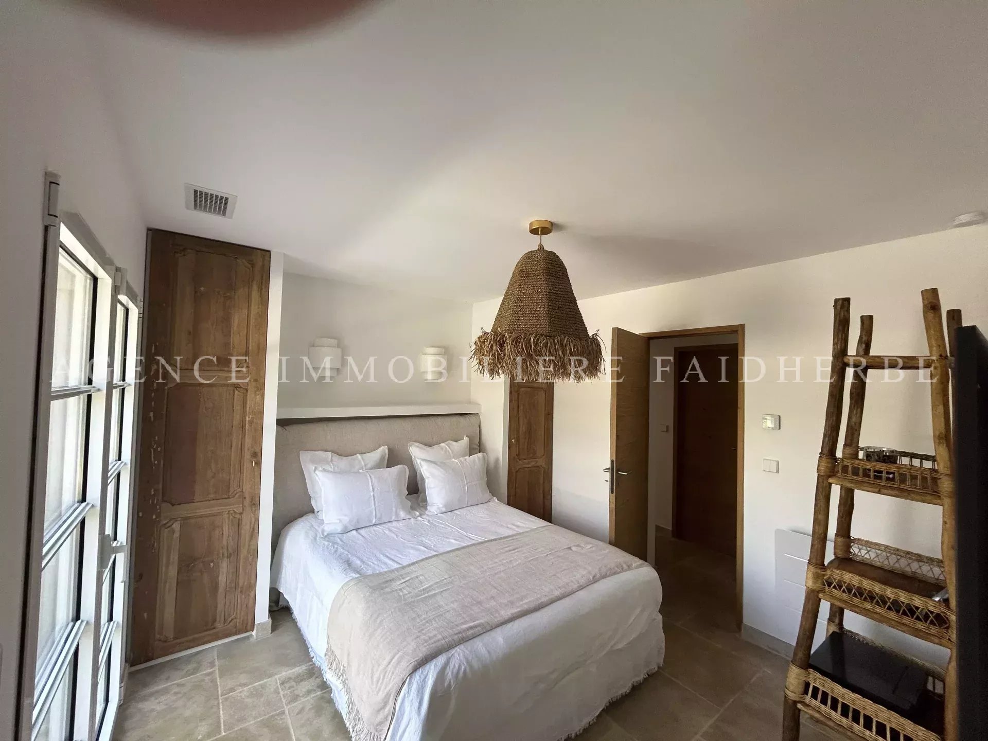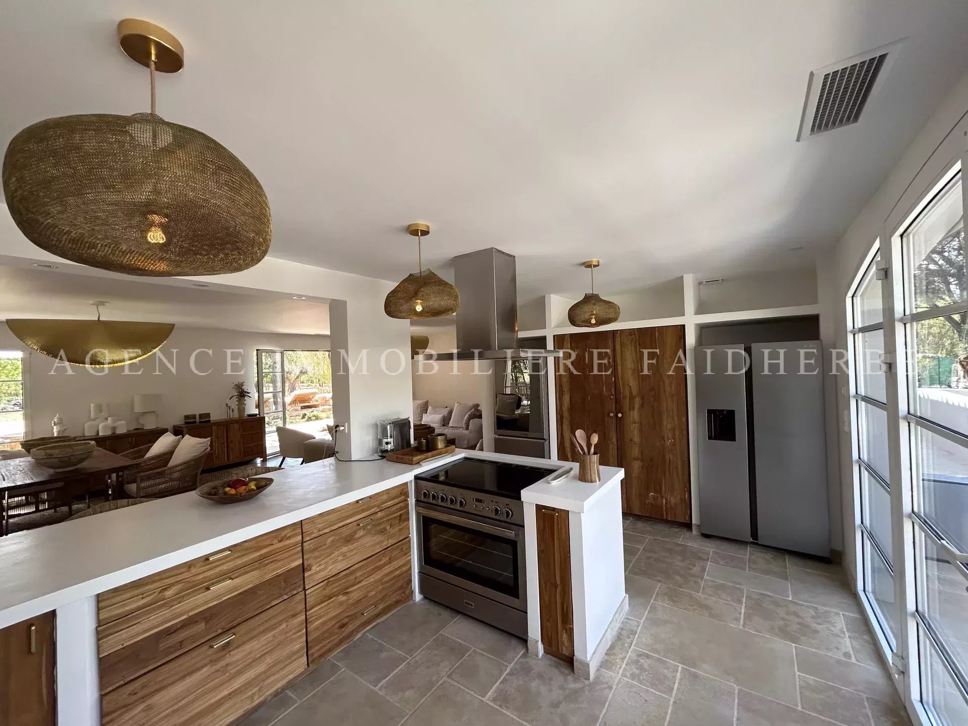 Questa sontuosa villa a un piano, recentemente ristrutturata e arredata con gusto, dispone di una spaziosa cucina completamente attrezzata che si apre su un soggiorno e una sala da pranzo, nonché di cinque camere da letto con bagno privato con doccia e servizi igienici. Il giardino, punteggiato di piante e fiori mediterranei in uno stile bohémien e leggermente selvaggio, ospita una magnifica piscina. Potrete godervi appieno le splendide giornate estive grazie ai lettini prendisole, agli arredi da giardino ombreggiati, alla zona pranzo all'aperto e alla palestra all'aperto. La villa dispone inoltre di accesso a internet, aria condizionata e parcheggio esterno. Costi: pulizia 35 €/ora, biancheria 30 €/camera e tassa di soggiorno 6,91 €/giorno/adulto.