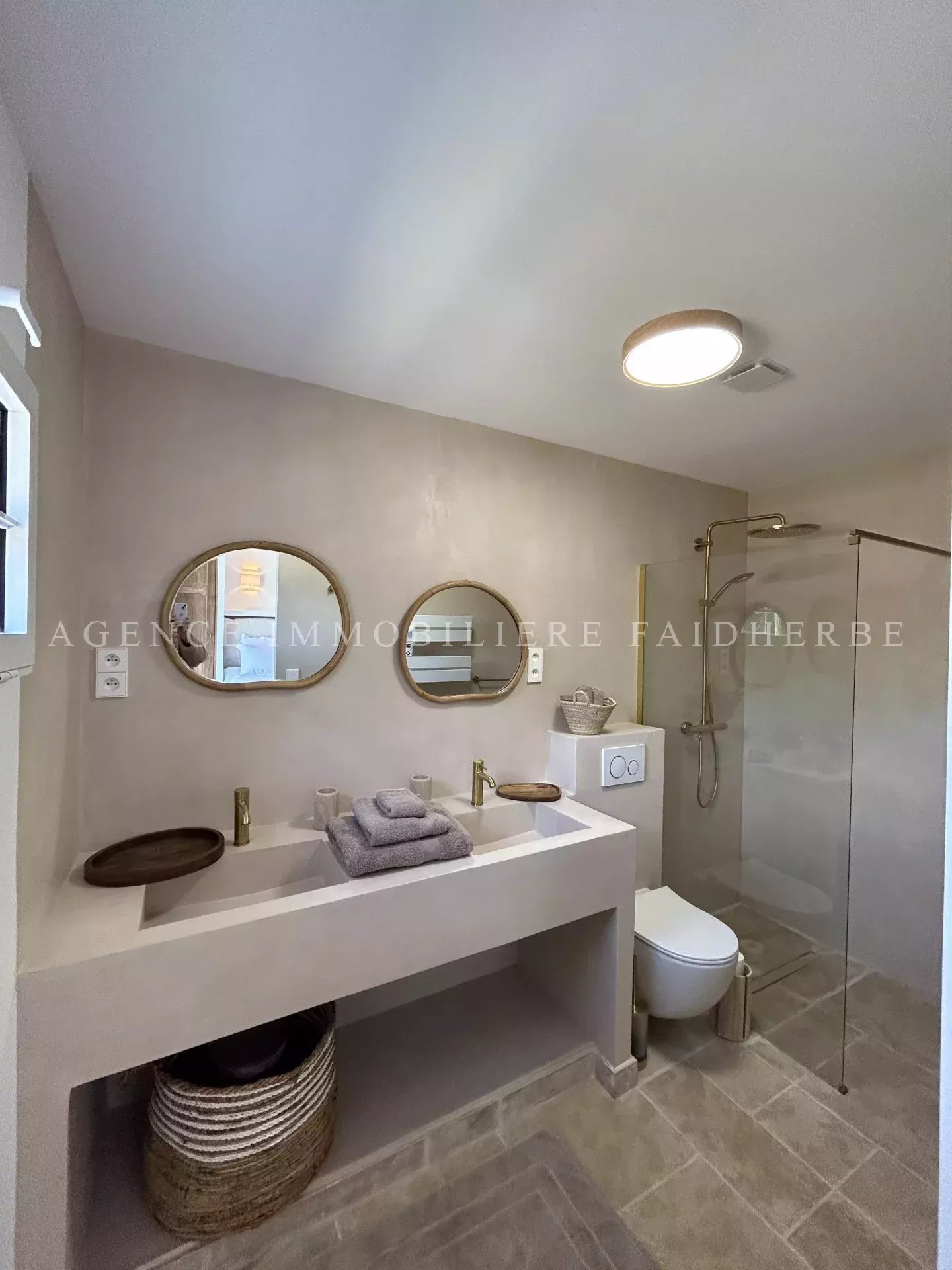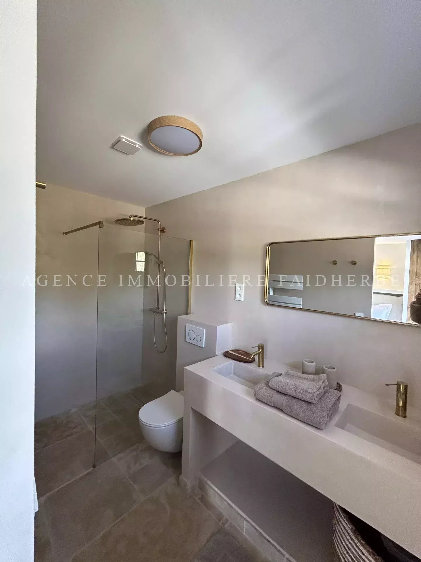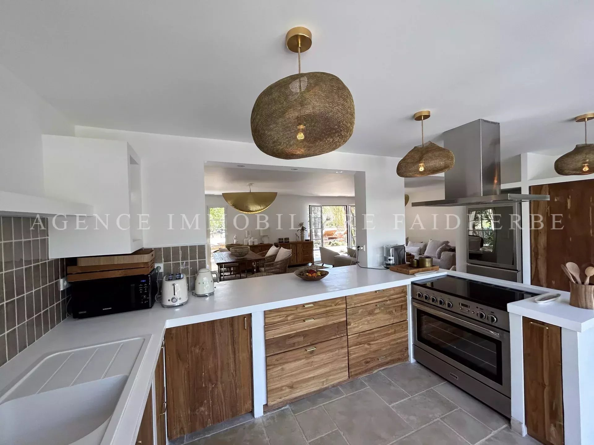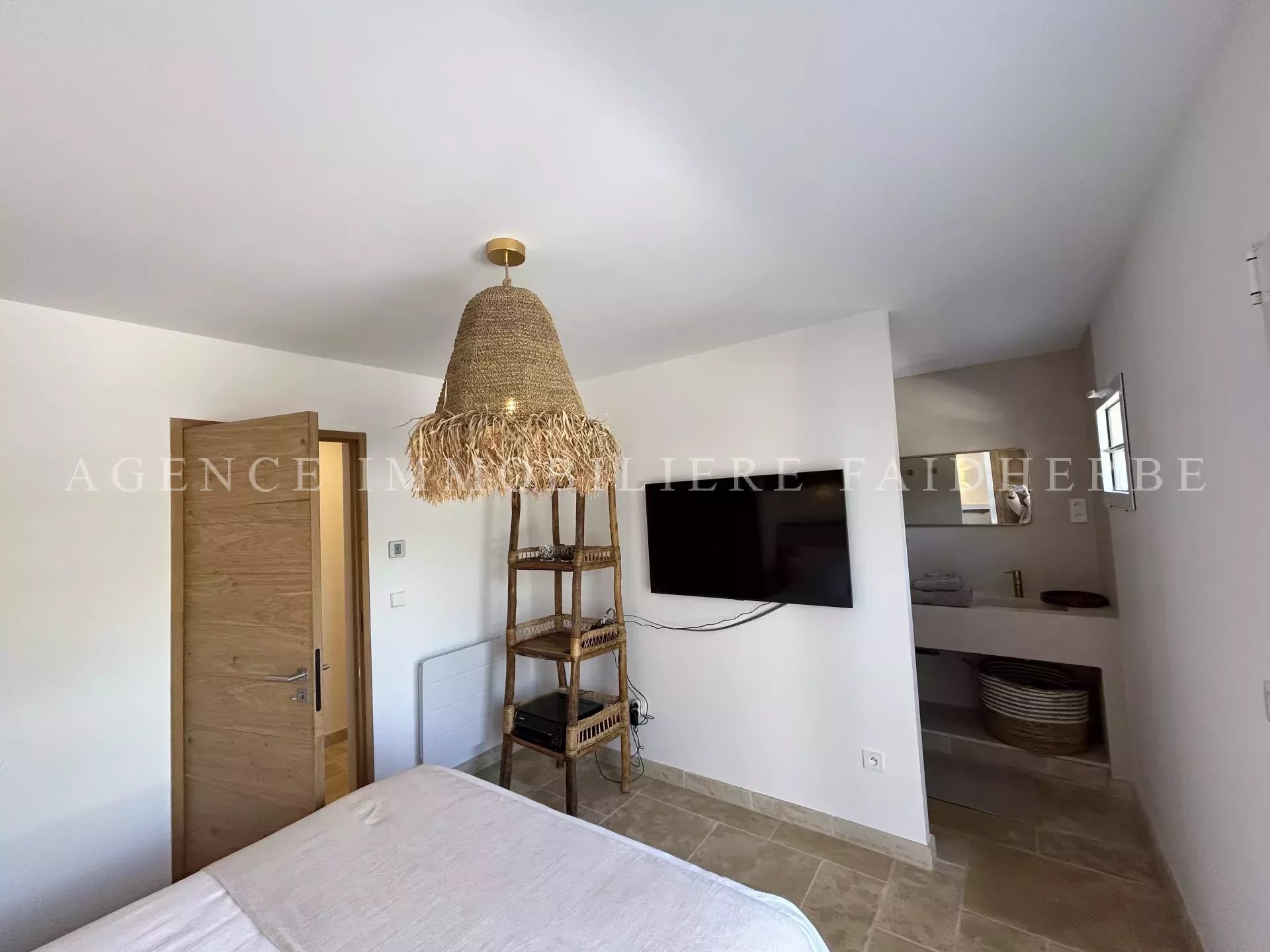 Questa sontuosa villa a un piano, recentemente ristrutturata e arredata con gusto, dispone di una spaziosa cucina completamente attrezzata che si apre su un soggiorno e una sala da pranzo, nonché di cinque camere da letto con bagno privato con doccia e servizi igienici. Il giardino, punteggiato di piante e fiori mediterranei in uno stile bohémien e leggermente selvaggio, ospita una magnifica piscina. Potrete godervi appieno le splendide giornate estive grazie ai lettini prendisole, agli arredi da giardino ombreggiati, alla zona pranzo all'aperto e alla palestra all'aperto. La villa dispone inoltre di accesso a internet, aria condizionata e parcheggio esterno. Costi: pulizia 35 €/ora, biancheria 30 €/camera e tassa di soggiorno 6,91 €/giorno/adulto.
