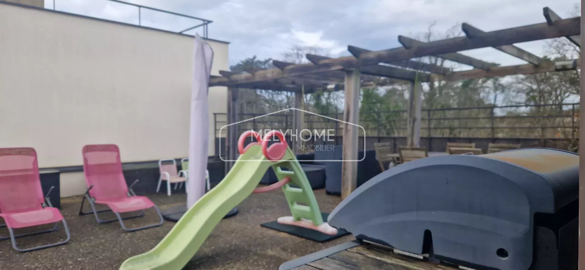 Rare! Rambouillet dans résidence récente sécurisée avec ascenseur appartement de 4 pièces en dernier étage au premier niveau, entrée, 3 chambres, une salle de bains avec wc et coin buanderie, rangement, au deuxième niveau par escalier grande pièce de vie avec triple exposition donnant sur terrasse de 50 m² plein sud, sans vis à vis. Cave, parking double en enfilade au sous sol accès par l'ascenseur. Proche des écoles ; maternelle, collège, lycée ; 10 minutes à pieds. Gare de Rambouillet 15 minutes à Pieds pour Paris Montparnasse en 30 minutes