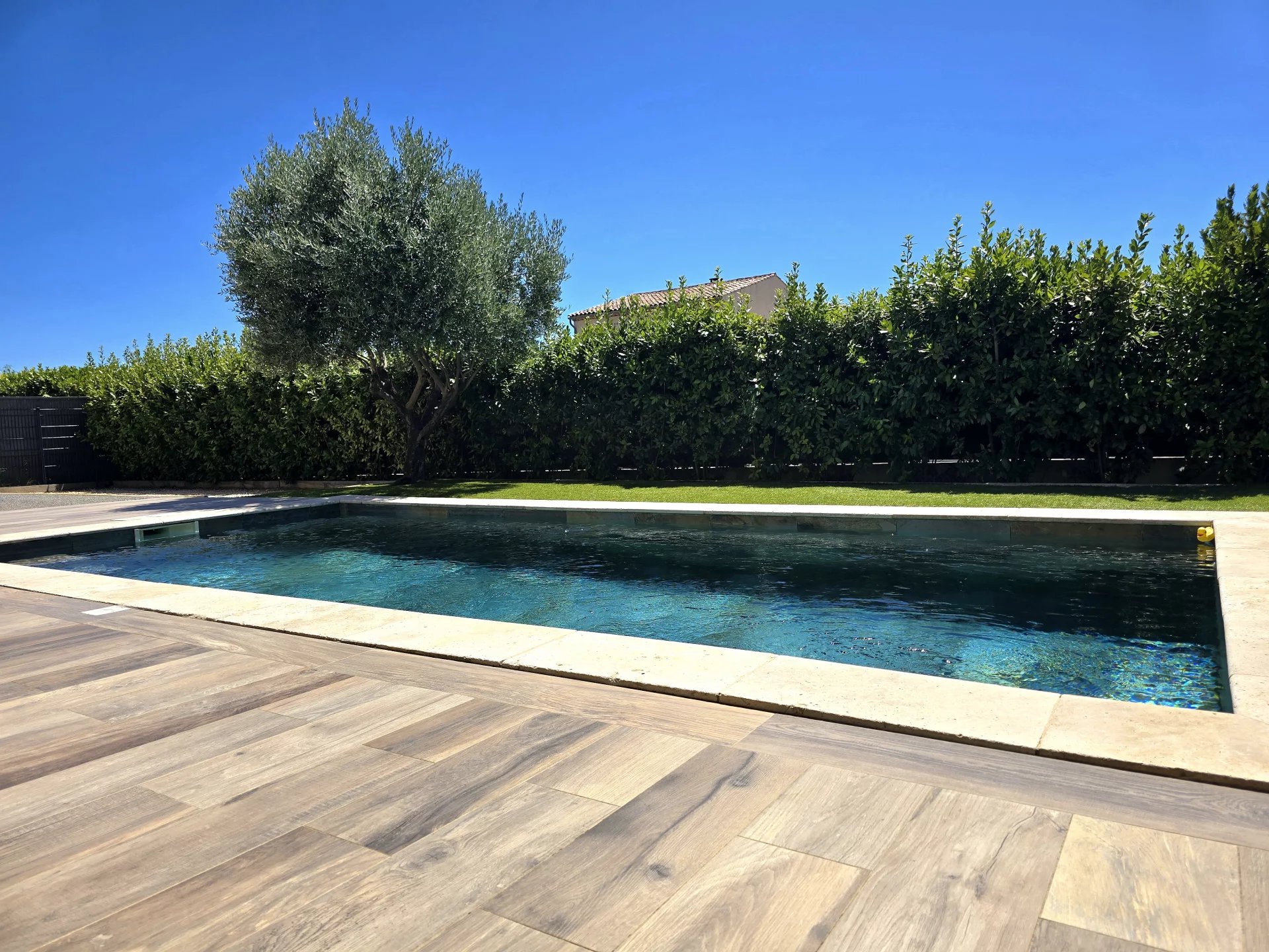 Coup de coeur pour cette maison, située à Bormes-Les-Mimosas, non loin des commerces et des plages, au calme, cette maison moderne de 2018 très lumineuse avec ses grandes baies ouvertes sur le jardin et sa piscine plein sud. De très beaux espaces de vie, cuisine et salon ouverts sur l'extérieur, une suite parentale au rez-de-chaussée, WC, coin buanderie ; A l'étage 3 chambres dont une ouverte sur une grande terrasse en bois offrant une vue dégagée, salle d'eau et WC. A l'extérieur un jardin facile d'entretien avec sa piscine 7x3.5, un espace terrasse avec pergola bioclimatique très agréable. Un garage plus 2 stationnements
