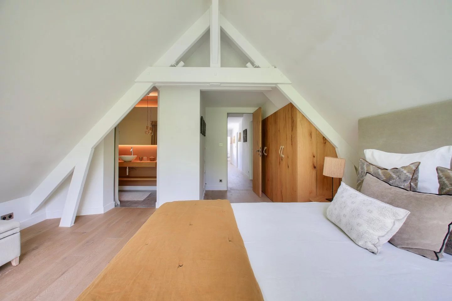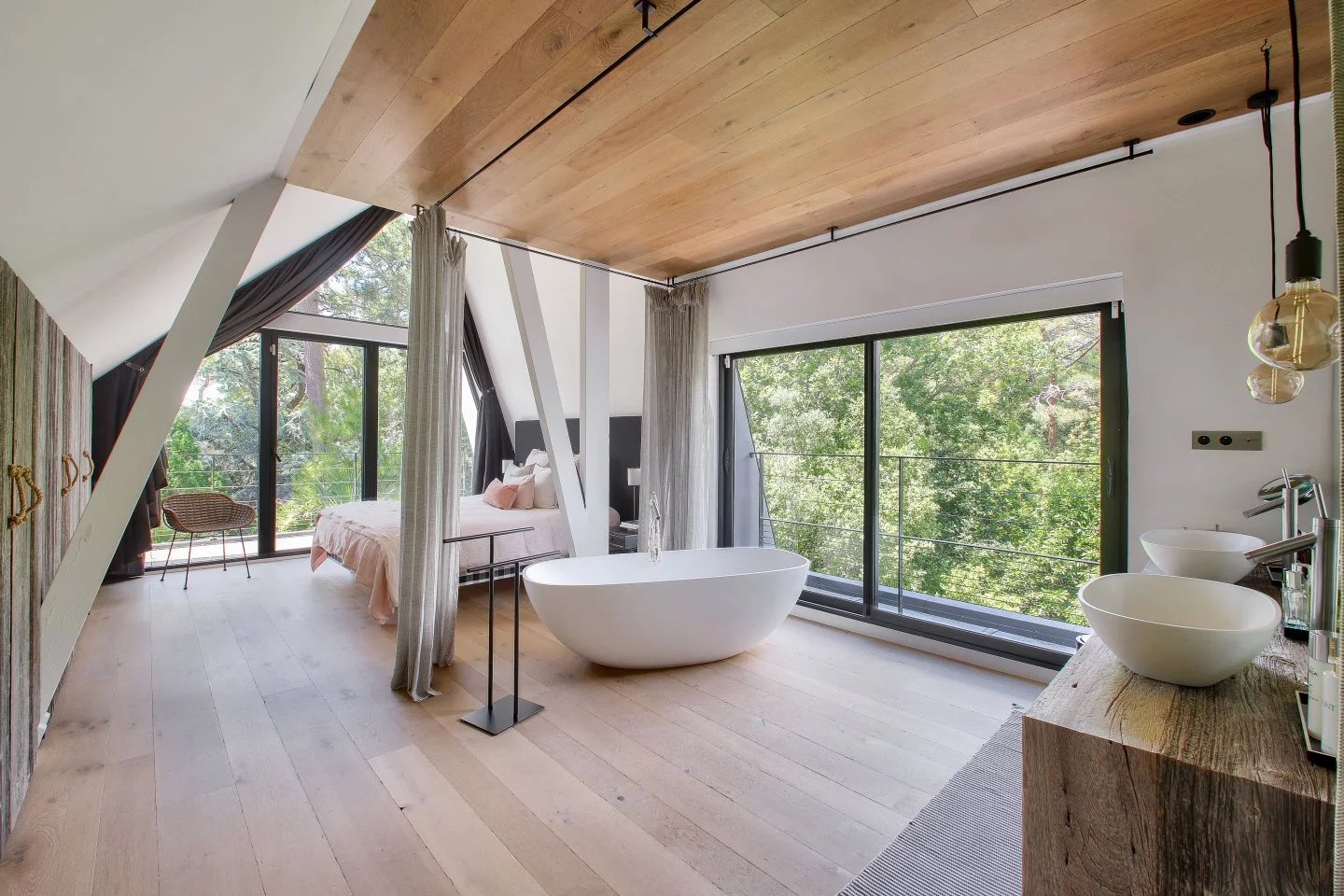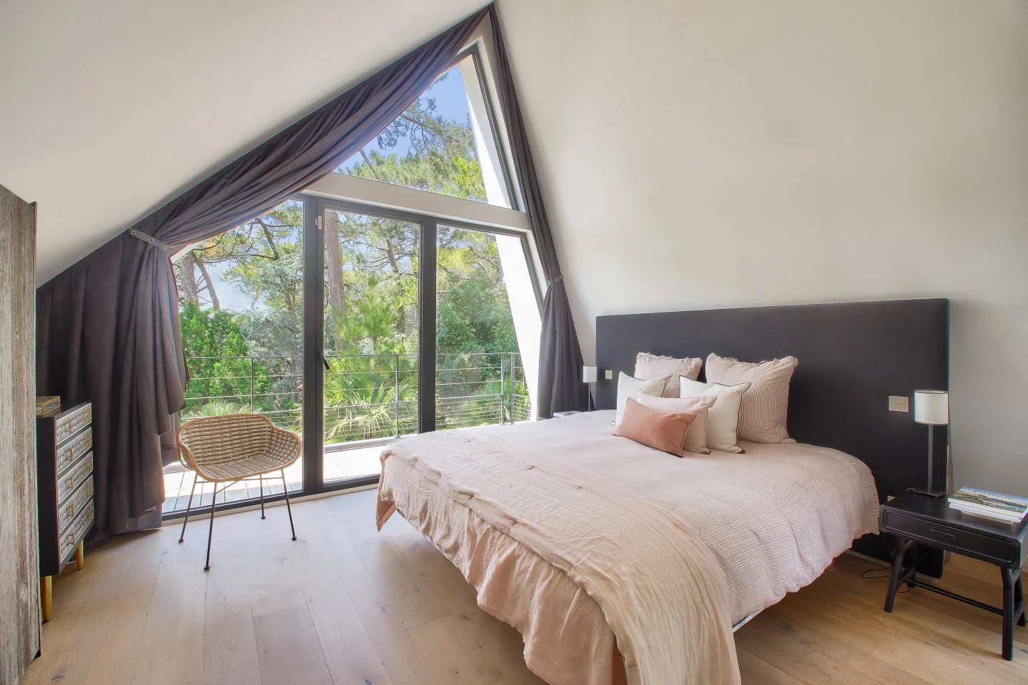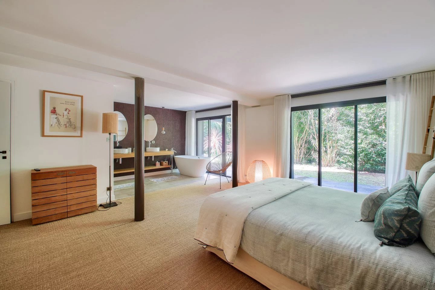 Nichée au cœur du quartier de La Baule-les-Pins, cette somptueuse demeure de 500m² offre intimité et sérénité. Rénovée par un architecte renommé, elle mêle avec élégance la pierre, le bois, l'acier et le verre, offrant une transparence subtile sur son jardin parfaitement paysager. Grandes pièces de réception lumineuses donnant sur une terrasse de 600m2 orientée plein sud. Cuisine séparée personnalisée en pierre béton et bois massif avec une cheminée, un home cinéma - bureau - chambre, cinq suites offrant chacune une salle de bains haut de gamme et un dressing. Au rez-de-jardin, vous trouverez une piscine intérieure de 15 mètres de long, chauffée, une salle de sport et un espace détente, comprenant un hamman et un spa. Une belle cave à vin en sous-sol et un grand garage fermé.