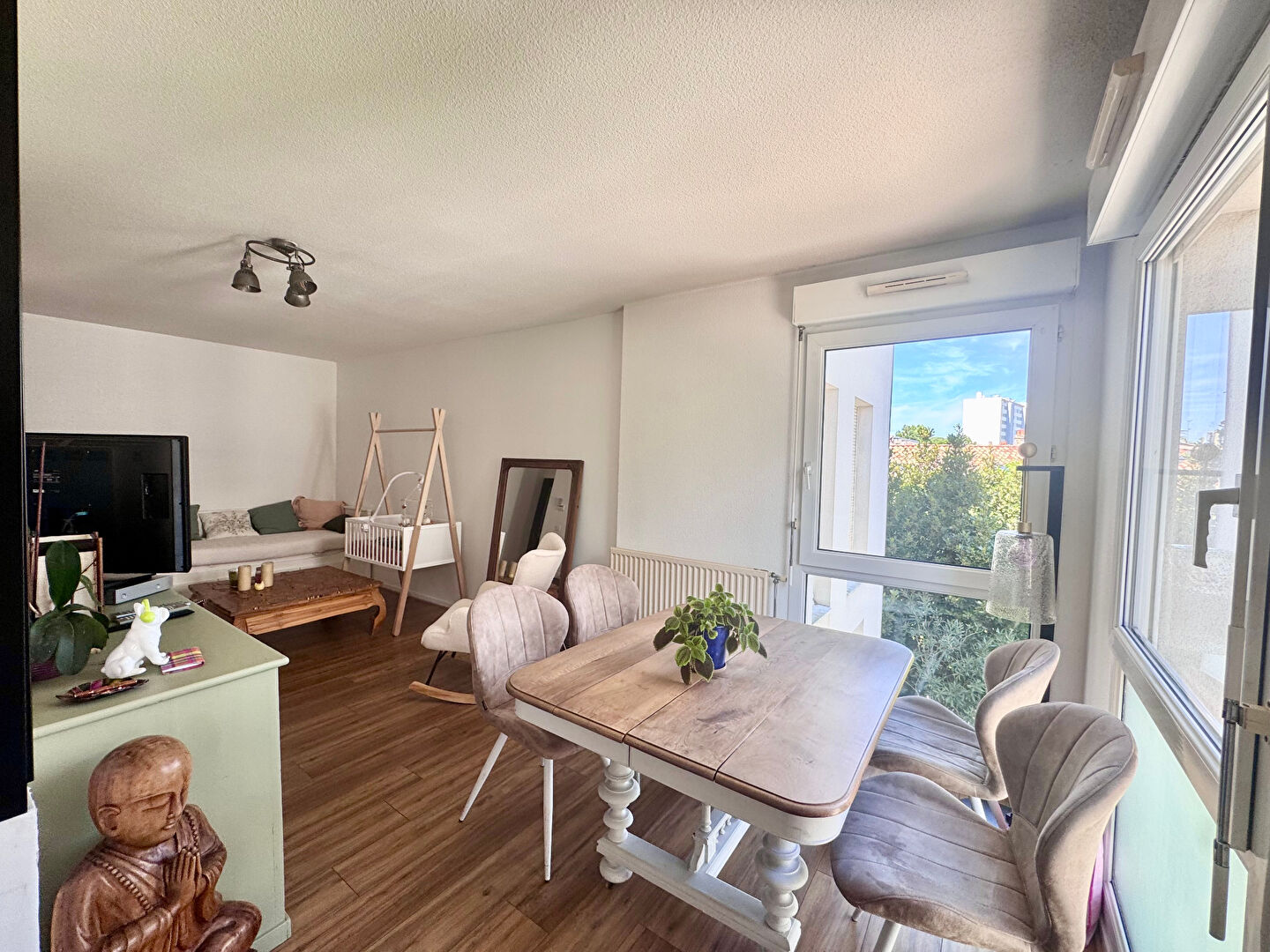 Situé à l'arrière d'une résidence calme, sécurisée, cet appartement de type 3 lumineux bénéficie d'un emplacement privilégié à proximité du parc Rivière. Il se compose d'une entrée, d'une cuisine américaine entièrement équipée, d'un séjour avec coin repas, de deux chambres au calme, d'une salle de bain et de WC séparés. IL comprend aussi un espace commun pour profiter des belles soirées d'été. L'agence Actia Concept ne détient aucuns fonds dans le cadre de son activité de transaction sur immeubles. Copropriété de 78 lots - dont 28 lots habitation. (Pas de procédure en cours). Charges annuelles : 1520 euros.