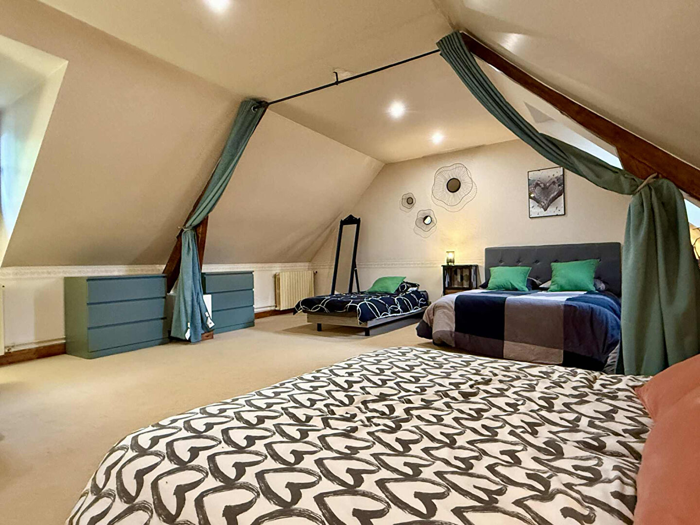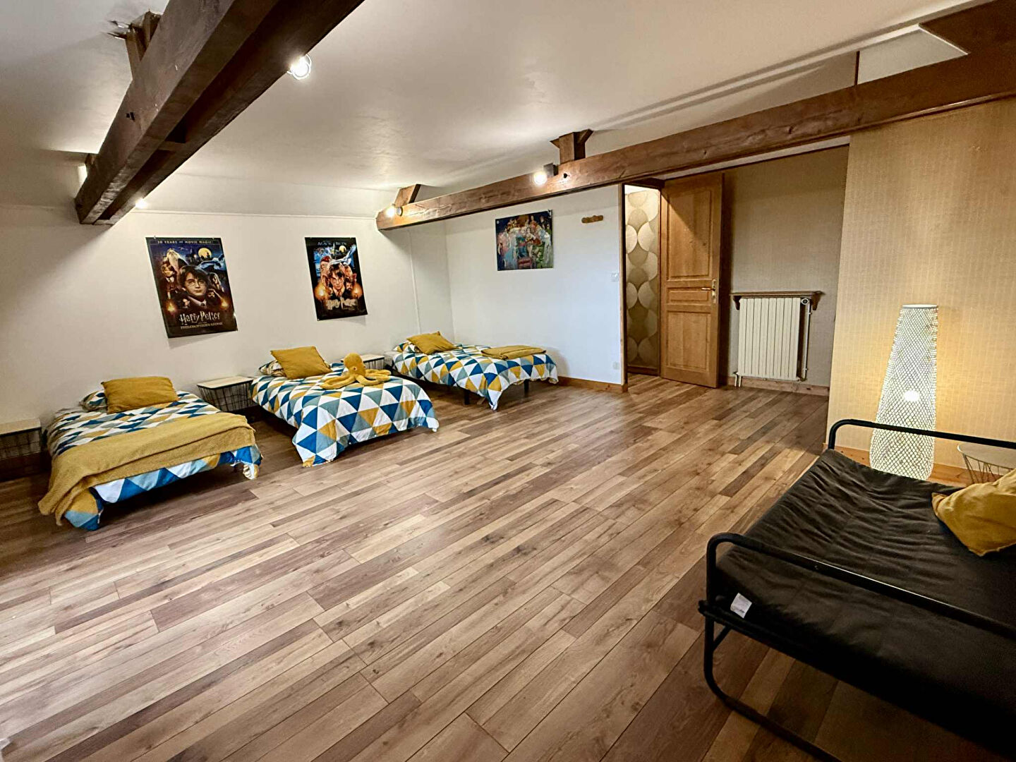 Découvrez cette grande maison pleine d'authenticité, nichée au calme au fond d'une impasse, offrant près de 300 m² habitables sur un terrain clos et arboré de 1352 m². Un bien rare, idéal pour une grande famille, une résidence secondaire ou un projet de gîte grâce à ses volumes exceptionnels et ses espaces indépendants. La maison se compose de deux niveaux parfaitement pensés : Au rez-de-chaussée : Une entrée accueillante, une salle d'eau, une salle de jeux, une vaste salle de réception, un salon, une cuisine, ainsi que deux chambres dont l'une peut devenir une salle à manger. Un dégagement dessert une salle de bains et une cave. A l'étage : Un palier distribue une chambre, un WC, une salle d'eau, une bibliothèque, un grand dortoir ou chambre, ainsi qu'une seconde grande chambre/dortoir située dans la tour, apportant un charme unique à l'ensemble. Un studio indépendant à terminer vient compléter les possibilités d'accueil ou de location. Les annexes ne sont pas en reste : double garage, local poubelles/débarras, local bois/cuve à fioul, chaufferie et cave en sous-sol. Vous serez séduits par les volumes généreux, la luminosité omniprésente et le caractère architectural affirmé de cette propriété. Un cadre de vie paisible où règnent calme et sérénité. La maison est équipée de la fibre optique, parfaite pour le télétravail ou les usages numériques modernes. Le studio indépendant ouvre la voie à un projet locatif, à l'accueil d'amis ou de la famille en toute autonomie. (6.00 % honoraires TTC à la charge de l'acquéreur.)