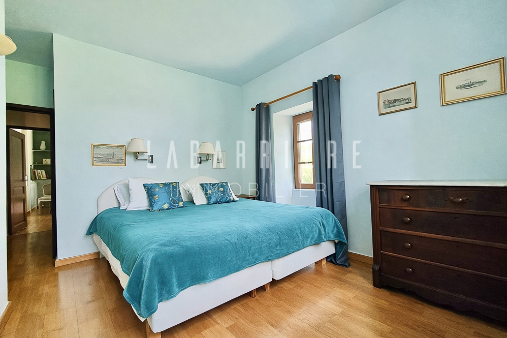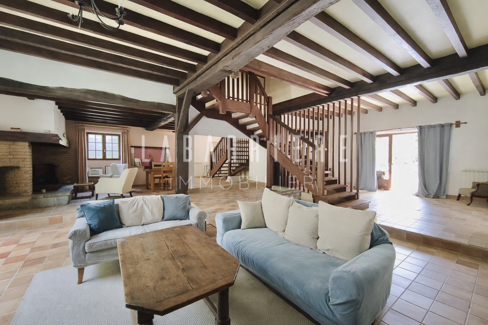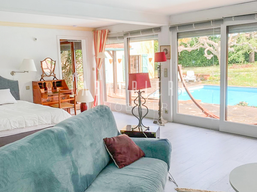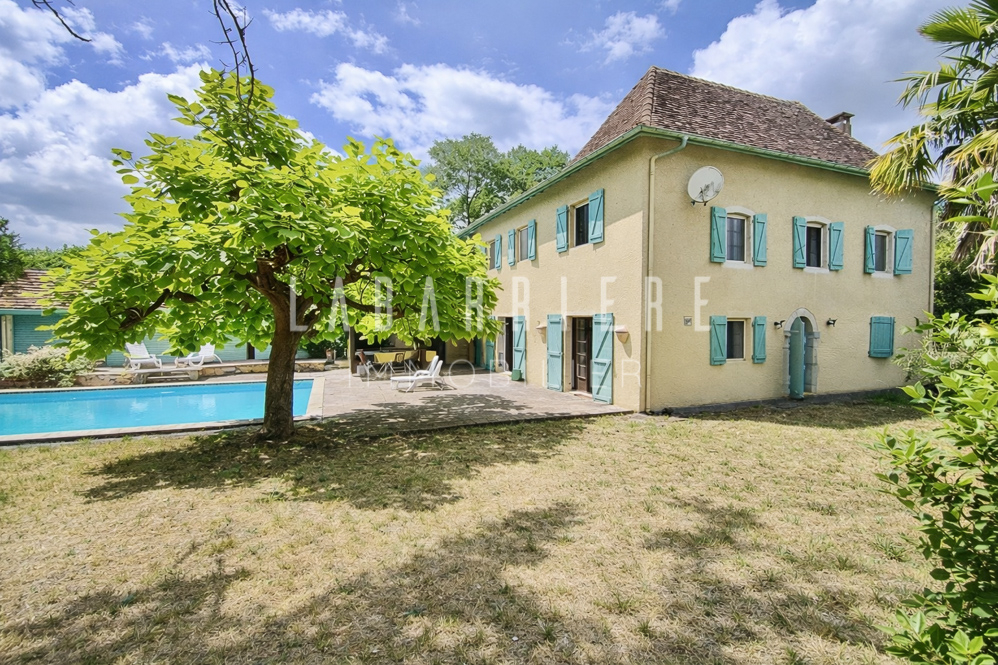 Exclusivité - A seulement 4,5 km du village médiéval de Sauveterre-de-Béarn, cette grande maison familiale se niche dans un environnement paisible et bucolique, au coeur d'un terrain arboré d'environ 2 700 m², agrémenté d'une piscine. Derrière sa façade discrète, elle dévoile de beaux volumes à vivre et tout le charme des maisons d'antan : un grand escalier central en bois, une cheminée qui invite aux soirées en famille, et une distribution idéale pour accueillir petits et grands. La maison se compose de 9 pièces sur environ 251 m² habitables. Elle dispose de six chambres, dont une suite parentale en rez-de-chaussée avec accès indépendant, pouvant facilement être aménagée en studio. Trois des quatre chambres de l'étage dispose de leur salle de bain. Le sous-sol, le grenier aménageable et le garage offrent de nombreuses possibilités d'extension ou de stockage selon vos besoins. A l'extérieur, un auvent abrité prolonge agréablement l'espace de vie et invite à profiter de la nature tout au long de l'année. Un bien rare, au calme, idéal pour une grande famille, une maison secondaire ou un projet d'accueil, dans une région préservée entre nature, patrimoine et douceur de vivre. Estimation des coûts annuels d'énergie du logement : Entre 3 210 euros et 4 430 euros par an. Prix moyens des énergies indexés au 1er janvier 2021 (abonnements compris). DPE daté du 03/01/2022. A votre disposition pour tout renseignement complémentaire au 06 13 83 11 20. Annonce rédigée par Arnaud de MAZENOD (E.I.), Agent Commercial, immatriculé au RSAC du Tribunal de commerce de ST-ETIENNE sous le numéro : 800 663 924, pour le compte de LABARRIERE IMMOBILIER, située 64500 ST JEAN DE LUZ, et détentrice de la carte T n° CPI 6401 2021 000 000 032 délivrée par la CCI de Bayonne Pays Basque. Honoraires d'agence inclus : 20500 euros TTC, soit 5,4 % du prix net vendeur, à la charge de l'acquéreur. Les informations sur les risques auxquels ce bien est exposé sont disponibles sur le site Géorisques : www.georisques.gouv.fr. Selon l'article L.561.5 du Code Monétaire et Financier, pour l'organisation de la visite, la présentation d'une pièce d'identité vous sera demandée. (5.40 % honoraires TTC à la charge de l'acquéreur.) Arnaud de MAZENOD (EI) Agent Commercial - Numéro RSAC : 800 663 924 - Saint Etienne.