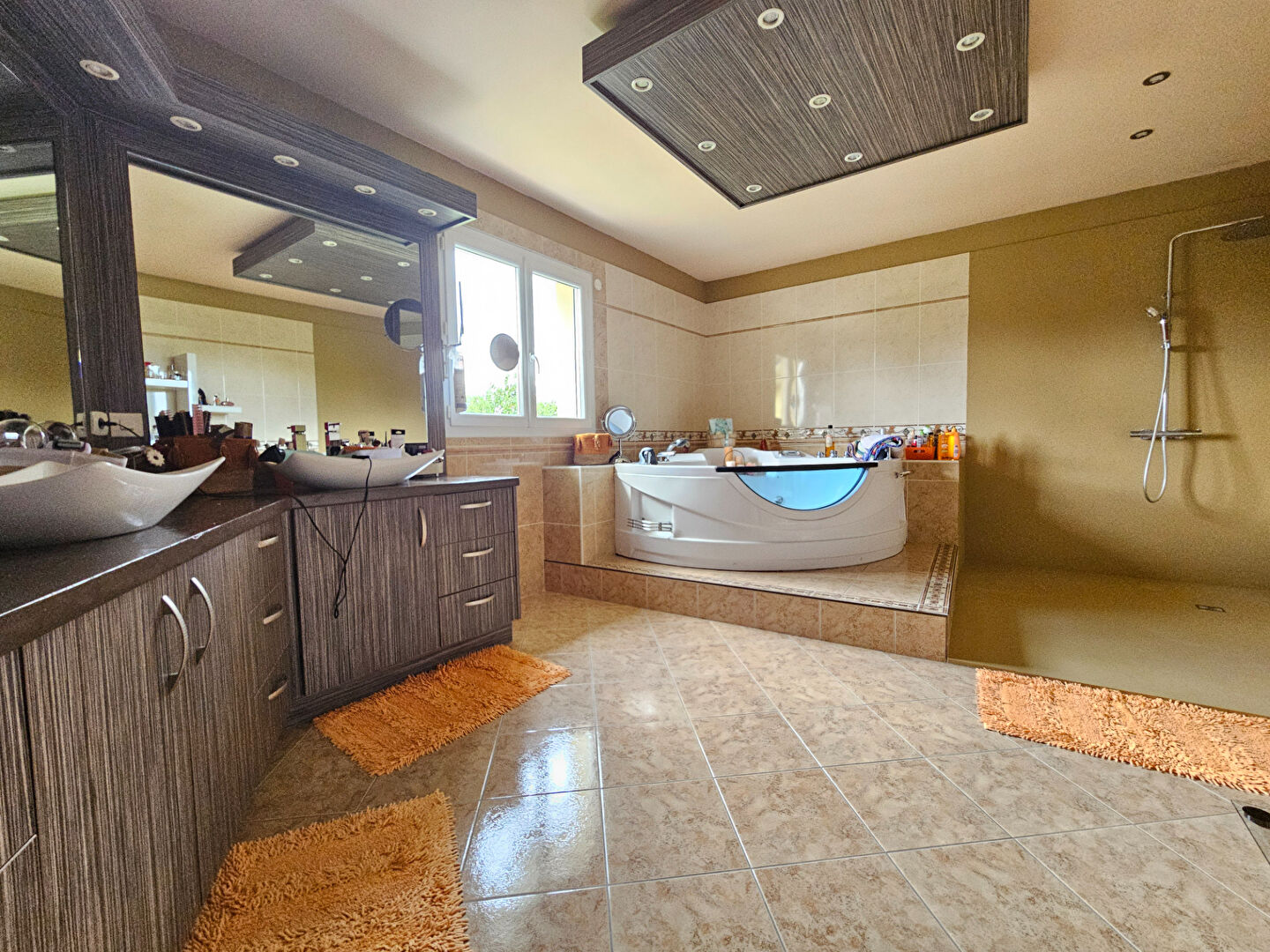 A VENDRE - MESNIL RAOUL - MAISON DE PLAIN -PIED / A 5 MINUTES DE BOOS RARE SUR LE MARCHÉ, maison 100% plain pied de 280m² habitables sur sous-sol. Elle se compose d'une vaste entrée qui distribue un séjour/salon lumineux de près de 60m² avec cheminée à foyer ouvert, une cuisine ouverte aménagée/équipée de 30m² avec son arrière-cuisine attenante, une 1ère chambre de 25m² avec salle de douche privative, une seconde chambre de 19m², un wc, une 3ème chambre de 35m² dont un dressing privatif, une salle de bains de 18m² avec baignoire balnéo et douche italienne, une 4ème chambre de 26m² avec bureau attenant de 22m². Huisseries aluminium et pvc, volets roulants électriques, chauffage par pompe à chaleur air/air, eau chaude sanitaire par cumulus. Une quinzaine de panneaux photovoltaïques pour une économie d'énergie non négligeable. Sous-sol pour 4 véhicules + partie atelier + cave à vin....Accès vide sanitaire sur le reste de la maison. Jardin clos paysager d'environ 1500m² à l'abri de tout regard. SES ATOUTS : EXCELLENT DPE (B), MAISON BIEN DISTRIBUÉE ET AUX VOLUMES HOMOGENES !!! Les informations sur les risques auxquels ce bien est exposé sont disponibles sur le site Géorisques : www.georisques.gouv.fr