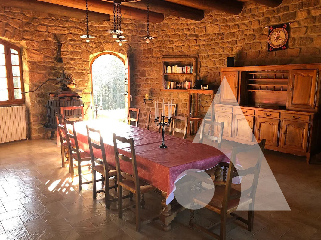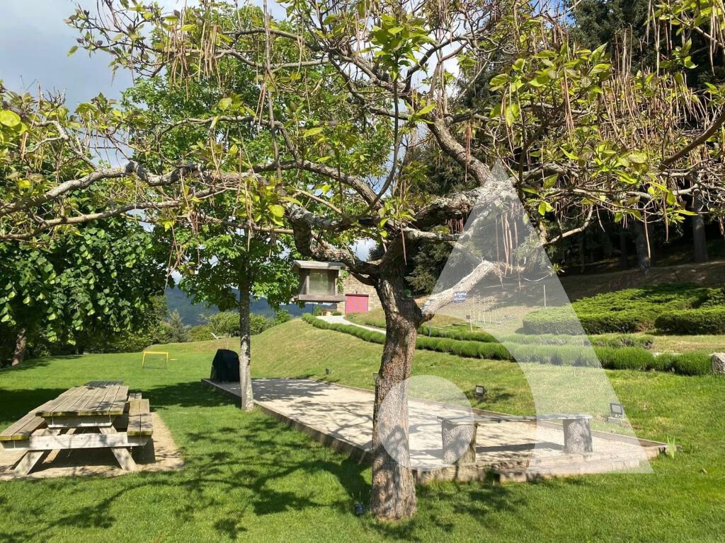 Propriété de caractère - Gîtes de grande capacité - Saint-Apollinaire-de-Rias Située dans les monts d'Ardèche, à proximité du village de Vernoux-en-Vivarais, cette propriété rare sur le marché offre un potentiel exceptionnel pour une activité d'accueil ou une grande résidence familiale. Sur un domaine de plus de 6 hectares (2 ha de parc paysagé, 3 ha de bois attenants et 1 ha supplémentaire détaché), l'ensemble se compose de deux gîtes en pierre parfaitement intégrés dans leur environnement naturel. Le premier gîte, d'une surface de 360 m², propose : Une capacité d'accueil de plus de 15 personnes, - 7 chambres, 3 salles de bains, - Une cuisine semi-professionnelle adaptée à la réception de groupes, - Des espaces de vie spacieux et lumineux. Le second gîte, d'une surface de 88 m², offre 5 couchages, 2 chambres et 1 salle de bain, idéal pour accueillir des familles ou pour compléter l'activité locative. L'extérieur est à la hauteur du cadre : - Parc arboré, pelouse entretenue, forêt privée, - Annexes de qualité : carport, garage, kota grill, sauna, - Une dépendance équipée pour la cuisson au feu de bois (pain, pizzas, grillades). L'ensemble est situé à 40 minutes de Valence, 1h30 de Lyon, 2h15 de Marseille. Revenus locatifs actuels : 50 000 euros par an. Ce bien conviendra aussi bien à un projet de résidence principale avec activité touristique, qu'à une résidence secondaire familiale, avec un fort potentiel de rentabilité.