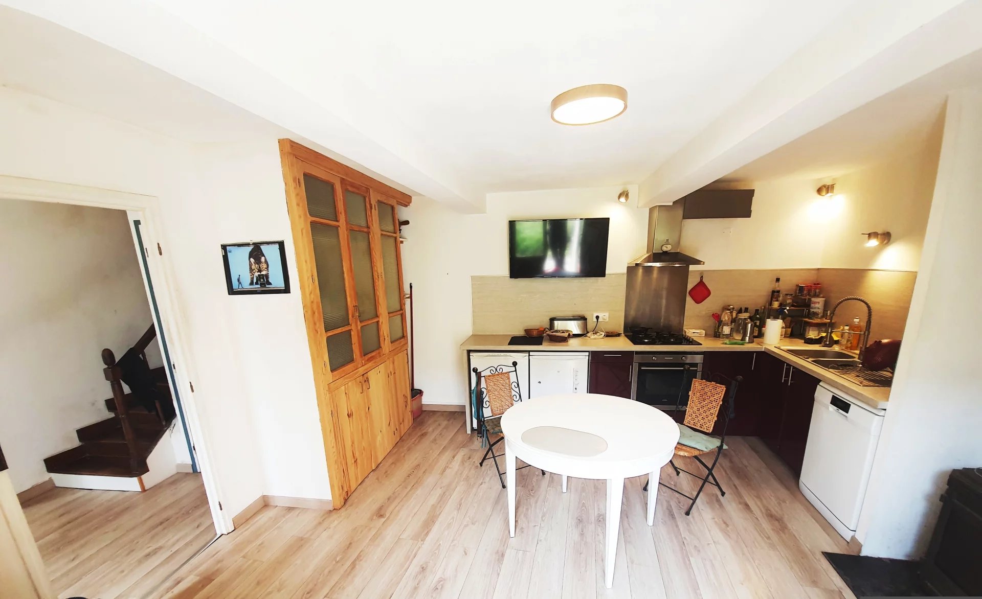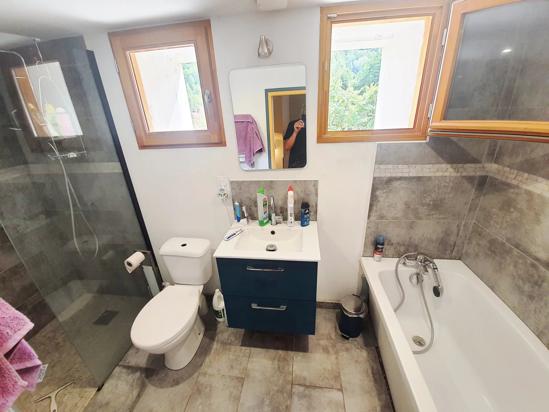 Maison en pierre avec jardin orienté au sud et vues. Très lumineuse avec des pièces spacieuses, comprenant un hall, un salon et une cuisine avec des portes-fenêtres donnant sur le jardin. La propriété dispose d'un WC/salle d'eau. Au 1er étage, il y a 2 chambres doubles, une douche/WC et un hall. Au 2ème étage, il y a des chambres supplémentaires, un hall et un grenier aménageable (possibilité d'une 4ème chambre). Le toit a été remplacé en 2014. En 2019, les plafonds et les murs ont été isolés et le double vitrage, l'électricité, la plomberie, la cuisine, la douche et la façade ont été rénovés. Elle est située à 10 minutes d'une ville avec commodités, à 40 minutes du ski, et à 1 heure et 10 minutes de la Méditerranée. VIDÉO DISPONIBLE.