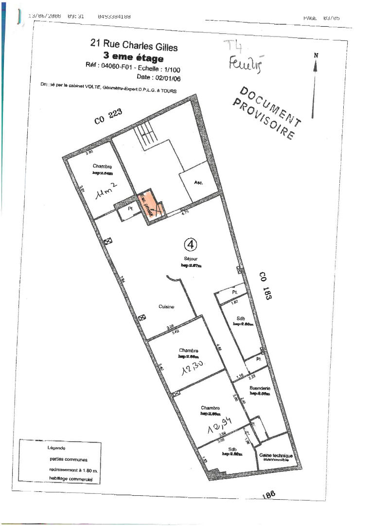 TOURS CENTRE - RUE CHARLES GILLES Disponible dès maintenant Au 3eme étage avec ascenseur, superbe T4 lumineux, en hyper centre au pied des commerces et des transports. Appartement spacieux proposant : un séjour avec cuisine ouverte aménagée équipée (plaques, hotte, four, lave-vaisselle), une chambre, ainsi qu'un couloir desservant une salle d'eau avec wc, 2 placards, une buanderie et deux autres chambres dont une suite parentale avec salle de bains et wc. Orienté plein ouest, très lumineux, volets électriques dans les chambres. Places de parking disponibles à la location dans la rue (sous-sol sécurisé). Honoraires : 1295.03 euros Dépôt de garantie : 1060.00 euros