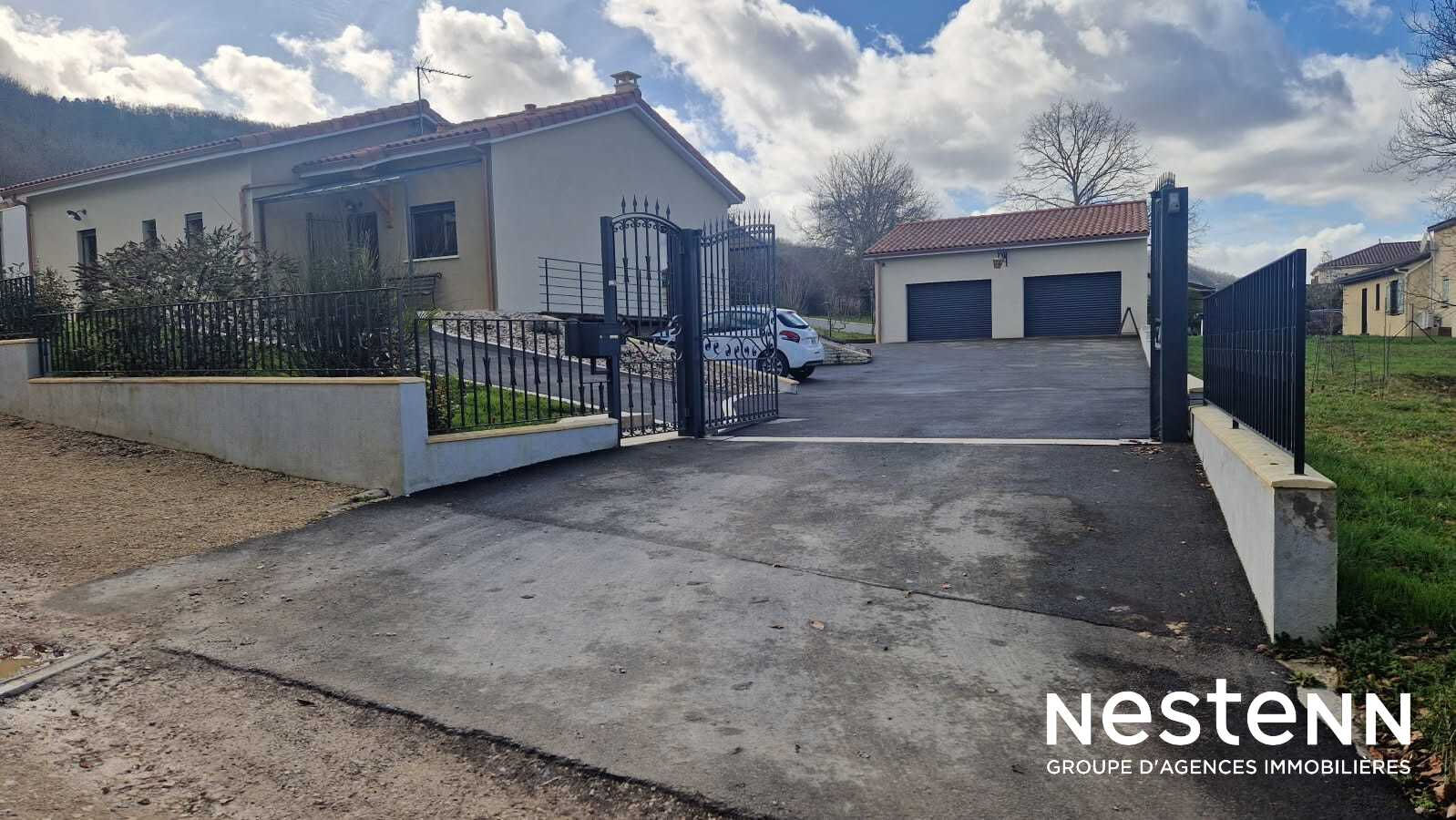 EXCLUSIVITE ! A 800 mètres des commerces et à 7km de Cahors, maison récente (2022) composée, de plain-pied, d'une entrée, d'un séjour climatisé avec conduit de cheminée existant, d'une cuisine américaine aménagée et équipée, d'une buanderie, de 2 chambres climatisées avec placards, d'une salle d'eau avec WC et d'un WC invité avec lave mains.. Le tout en excellent état sur une parcelle clôturée d'environ 1 040 m² avec un garage double électrifié d'environ 56 m². Contactez nous dès maintenant !