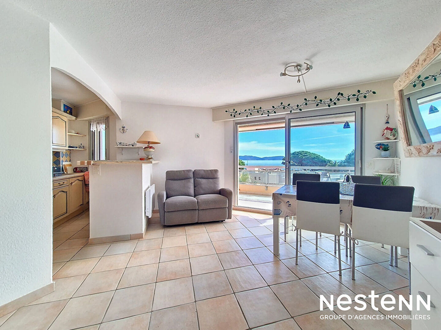 L'agence Nestenn Cavalaire est heureuse de vous présenter cet appartement avec une très belle vue, en deuxième ligne sur le FRONT DE MER à Cavalaire-sur-Mer à 100 mètres de la plage. Situé au deuxième étage accessible par un ascenseur dans une jolie résidence sécurisée, cet appartement climatisé d'une superficie habitable d'environ 50,54 m² est composé d'un lumineux séjour avec cuisine ouverte donnant sur une belle terrasse de 15 m² environ, de deux chambres avec placards, d'un dégagement avec placard, une salle d'eau et un WC indépendant. Et également sur le même palier un studio indépendant d'environ 17 m² avec salle d'eau et WC. Un GARAGE en sous-sol et une place de stationnement privative satisferont vos besoins de stationnement. Ses atouts : sa vue mer et sa grande terrasse ainsi que la proximité de la plage et du centre. A visiter dès que possible. Contactez Olivier Bourgeois 06.87.57.11.57. o.bourgeois@nestenn.com 984 219 600 (EI) RSAC Fréjus Olivier BOURGEOIS (EI) Agent Commercial - Numéro RSAC : 984 219 600 - Frejus.