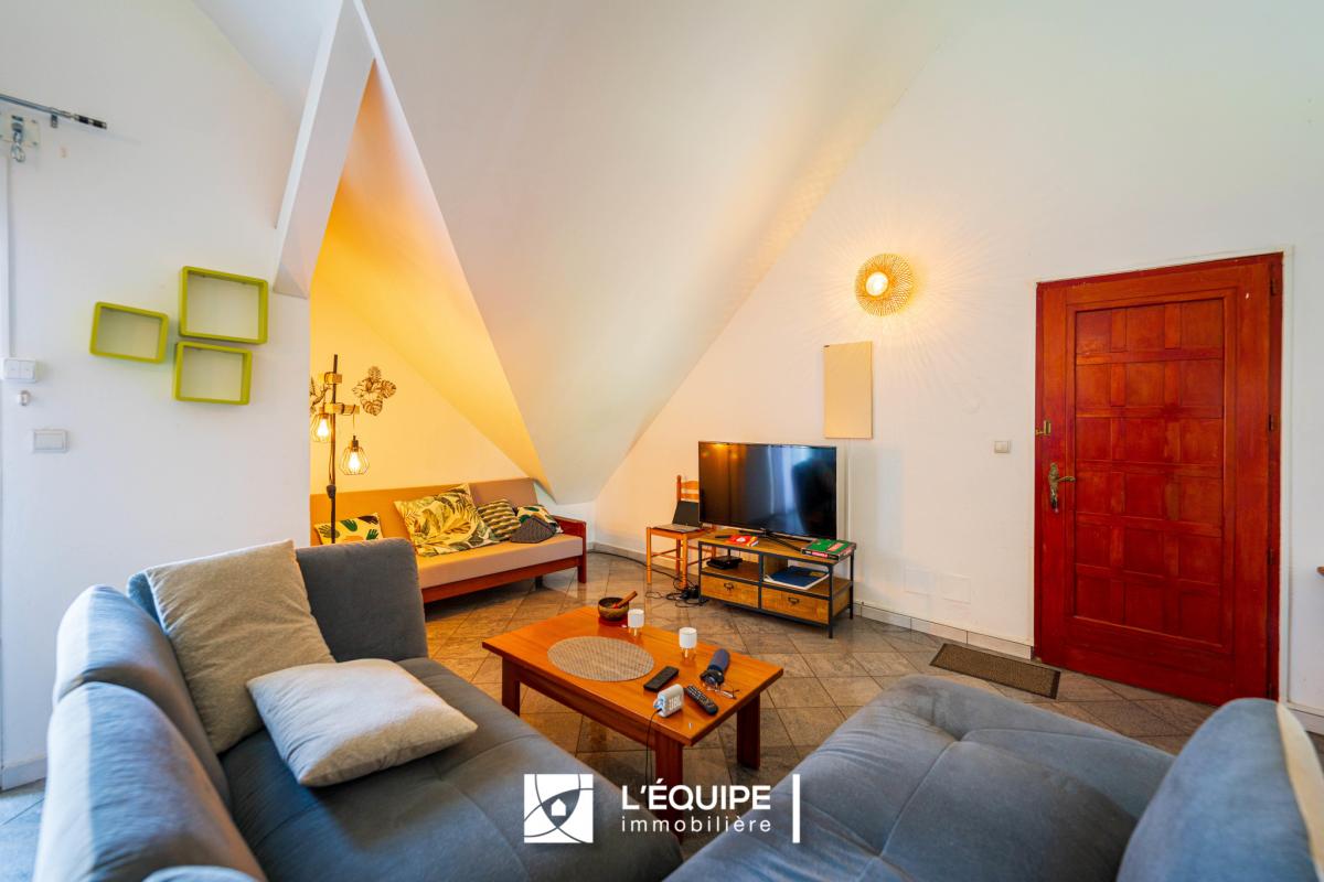 L'Equipe Immobilière vous propose ce beau T3 de 90 m2 prolongé coté cuisine et coté séjour de varangues confortables. Il est constitué d'un séjour de 30 m2 avec une belle hauteur sous plafond de 6 m, d'une chambre de 17 m2, d'une plus petite d'environ 12 m2 surmontée d'une mezzanine, d'une grande cuisine indépendante, d'une salle de bains et de toilettes séparées. Chambres et séjour climatisés. La résidence est composée de 10 logements sur deux niveaux, elle est sécurisée et dispose de nombreux parkings. Ce bien est libre de toute occupation. Le loyer précédent était de 1 100 euros CC. Taxe foncière : 1 126 euros. Montant des charges trimestrielles : 417, 98 euros dont 266,30 euros part locataire . fonds Alur : 23,54 euros. Ce bien vous est proposé par Mme Sylvie COTTU (NoRSAC: 323 466 409), votre interlocutrice privilégiée pour cette annonce, nous vous invitonsà la contacter pour plus d'informations au O692 65 61 17)