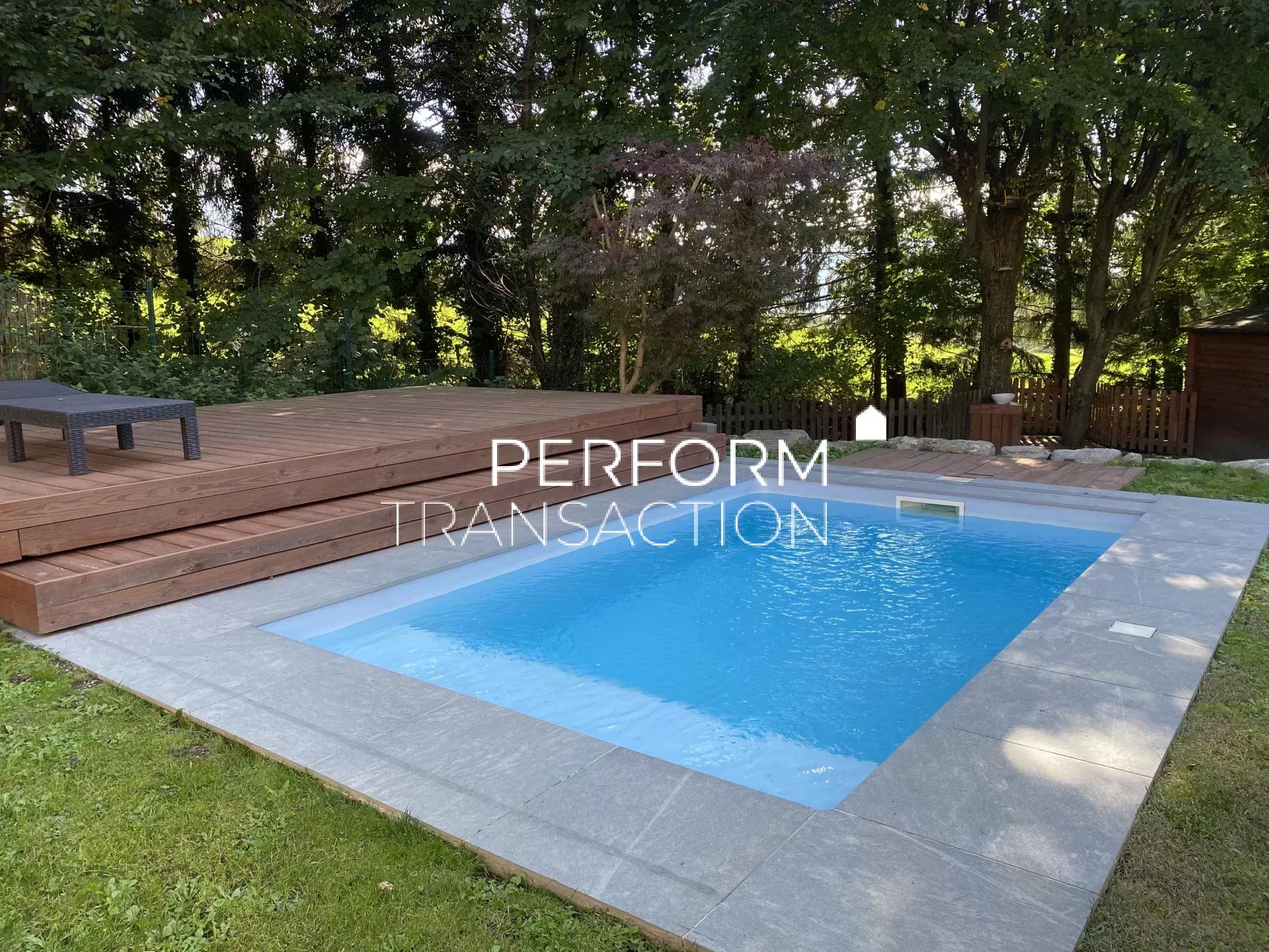 et surtout un extérieur exceptionnel : terrasse ensoleillée, piscine modulable, coin barbecue et jardin arboré clos de 680 m².
