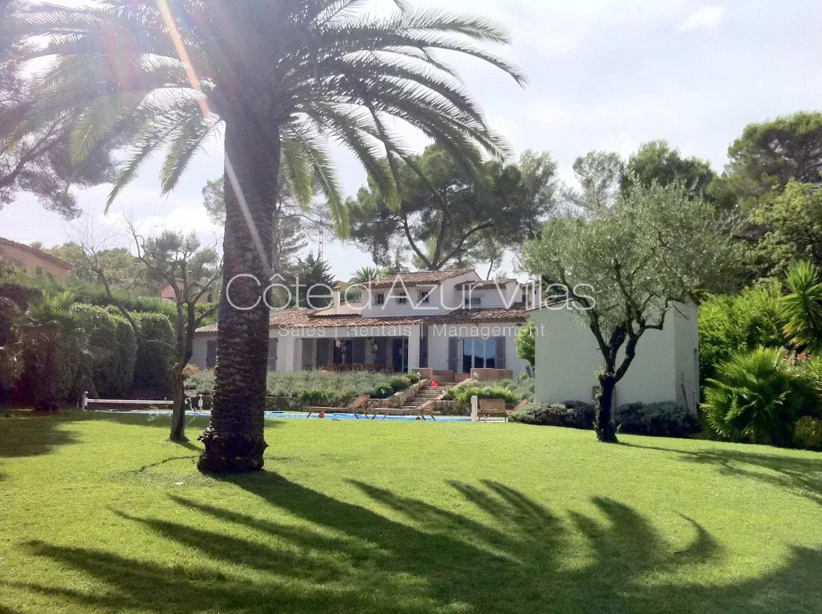 - une terrasse tropézienne offrant une belle vue dégagée sur la piscine et le jardin