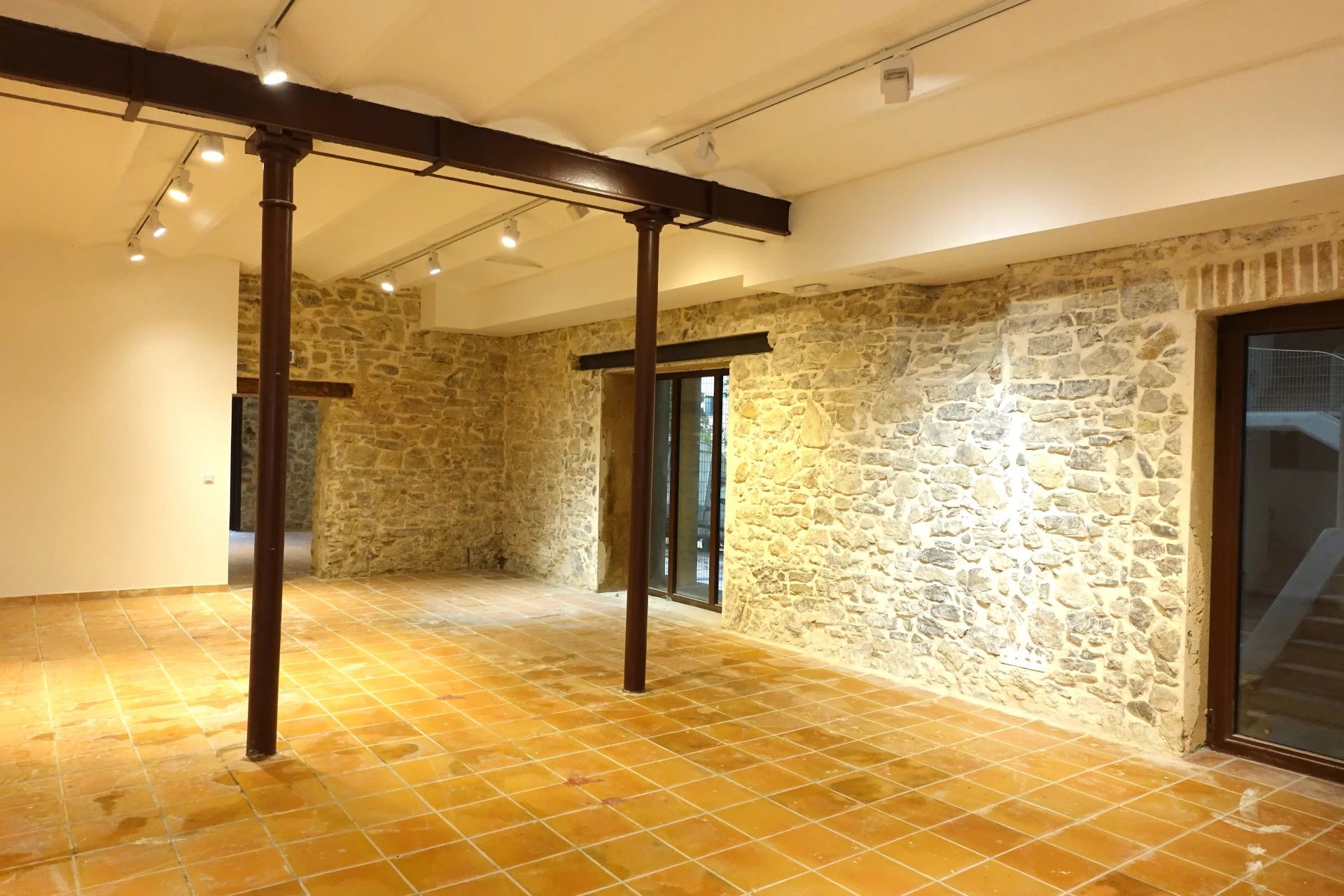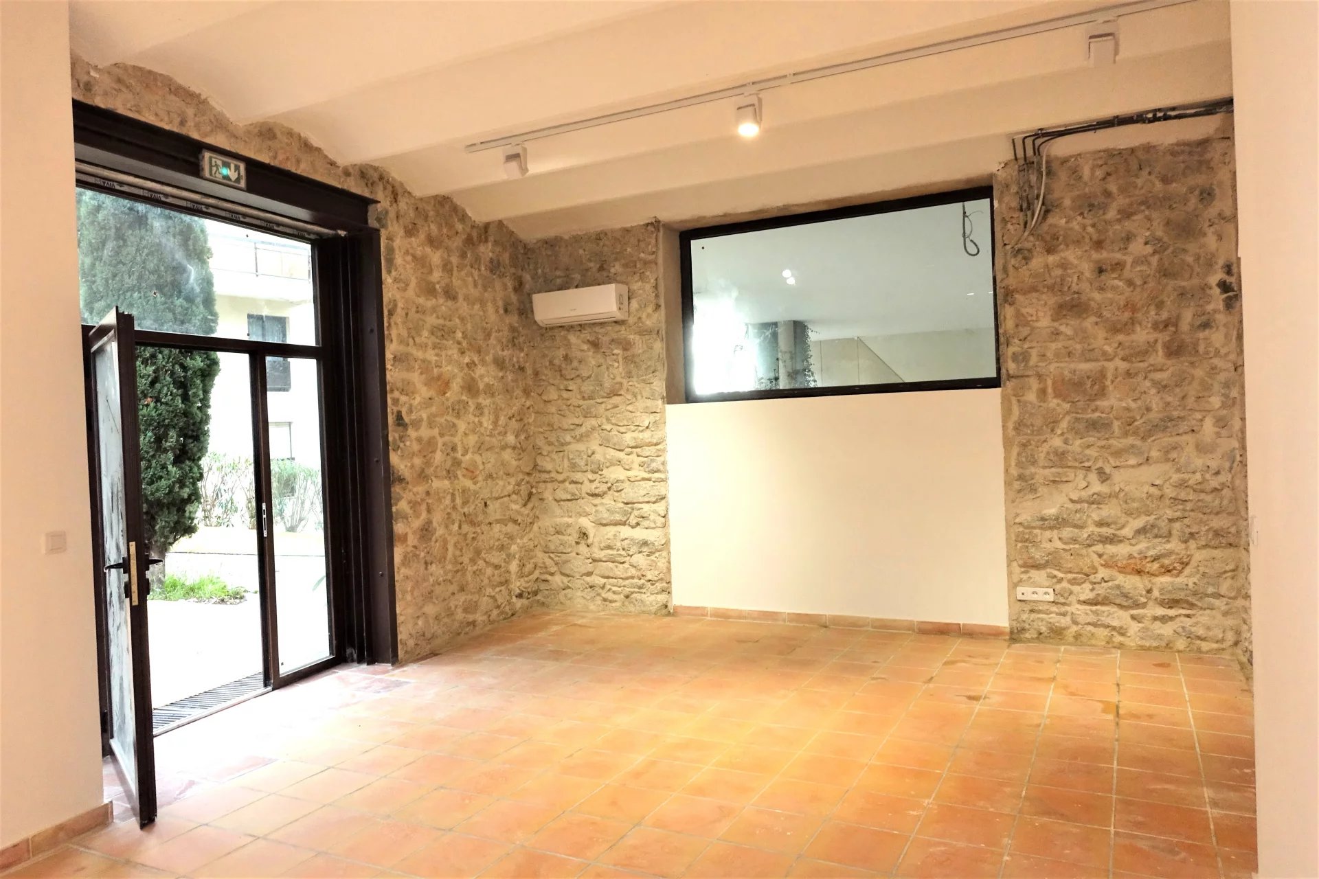 Situé face au rondpoint allant au boulevard COURTELINE à l'entresol d'une bastide Aixoise bénéficiant de beaucoup de cachet ,un local à usage professionnel ou atelier d'une superficie de 103,24m² loi carrez avec accès indépendant +la jouissance privative d'une emplacement extèrieur carrelé au droit du local d'environ 20m² .Les lieux sont composés de 2 espaces principaux climatisés avec murs en pierre et voutes ainsi q'un bloc sanitaire .La première pièce donne sur une porte vitrée donnant sur l'extèrieur et sur une terrasse privative , et l'autre pièce possède des ouvertures dans le hall de l'immeuble contemporain de grand standing bati en mitoyenneté .D'importants travaux de rénovation viennent d'être réalisés ( remplacement de tous les ouvrants, réfection de l'electricité,pose de deux climatiseurs réversibles,peinture des murs ,création de sanitaires ) .A vendre libre de toute occupation :270 000€ commission comprise.