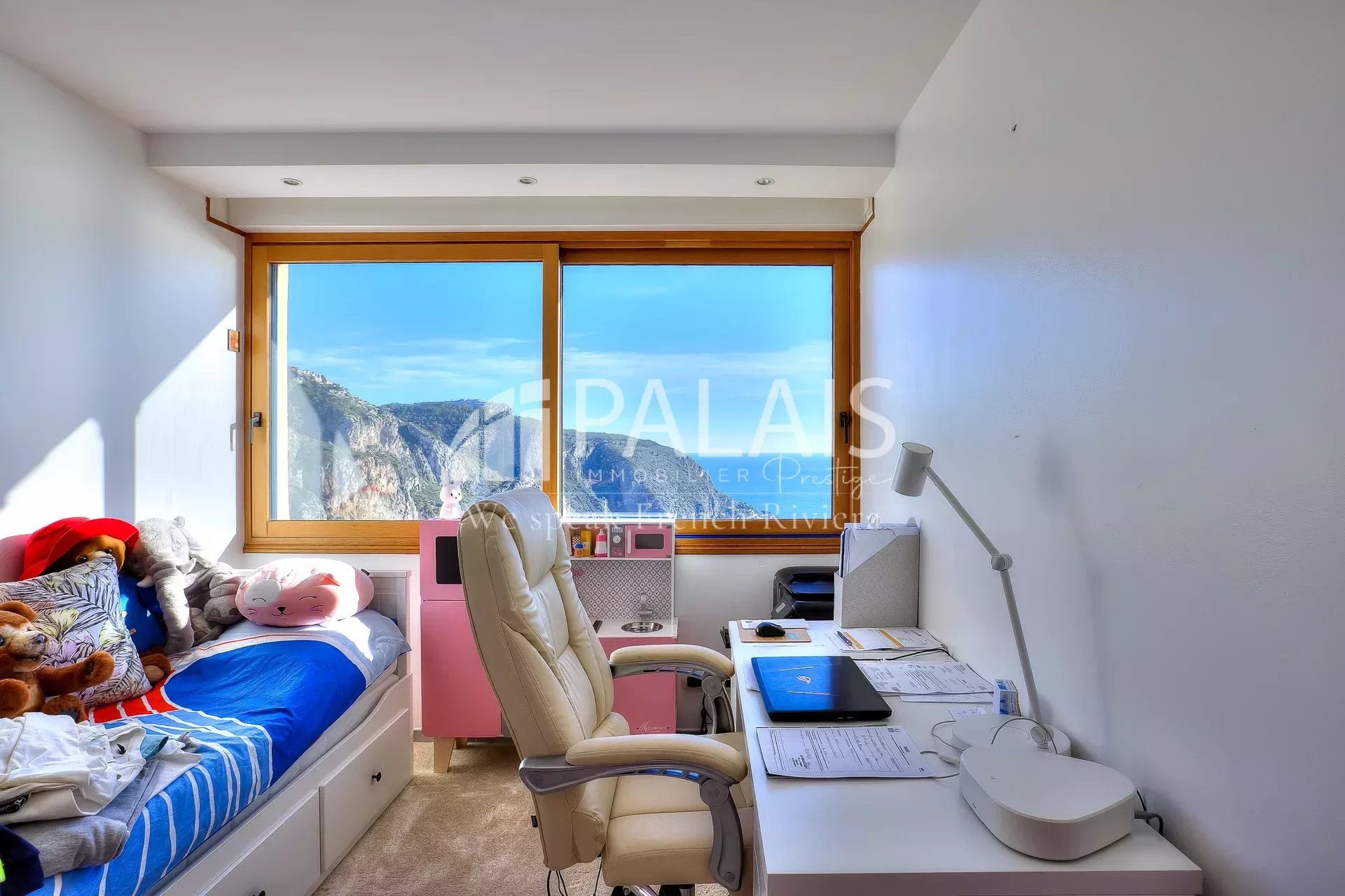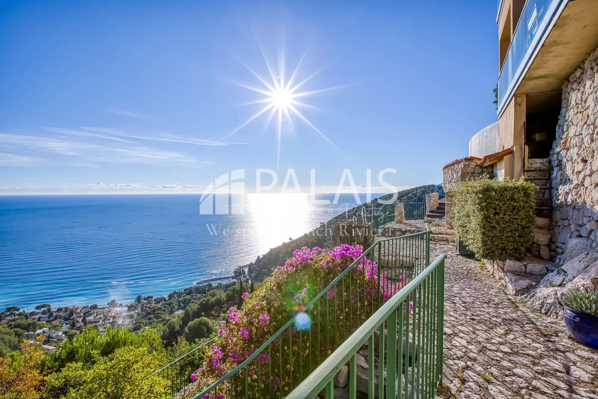 Située sur la Moyenne Corniche entre Nice et Monaco, au calme absolu avec accès routier facile.