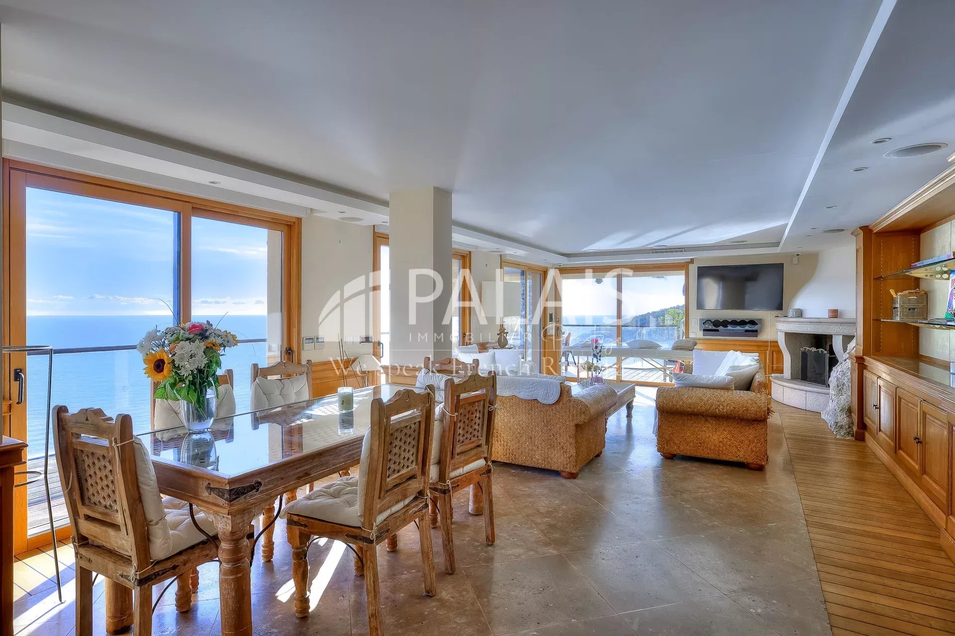 - L'epace de vie avec un très beau séjour , salle à manger, salon avec cheminée bénéficiant d'une double exposition ouvert sa terrasse,