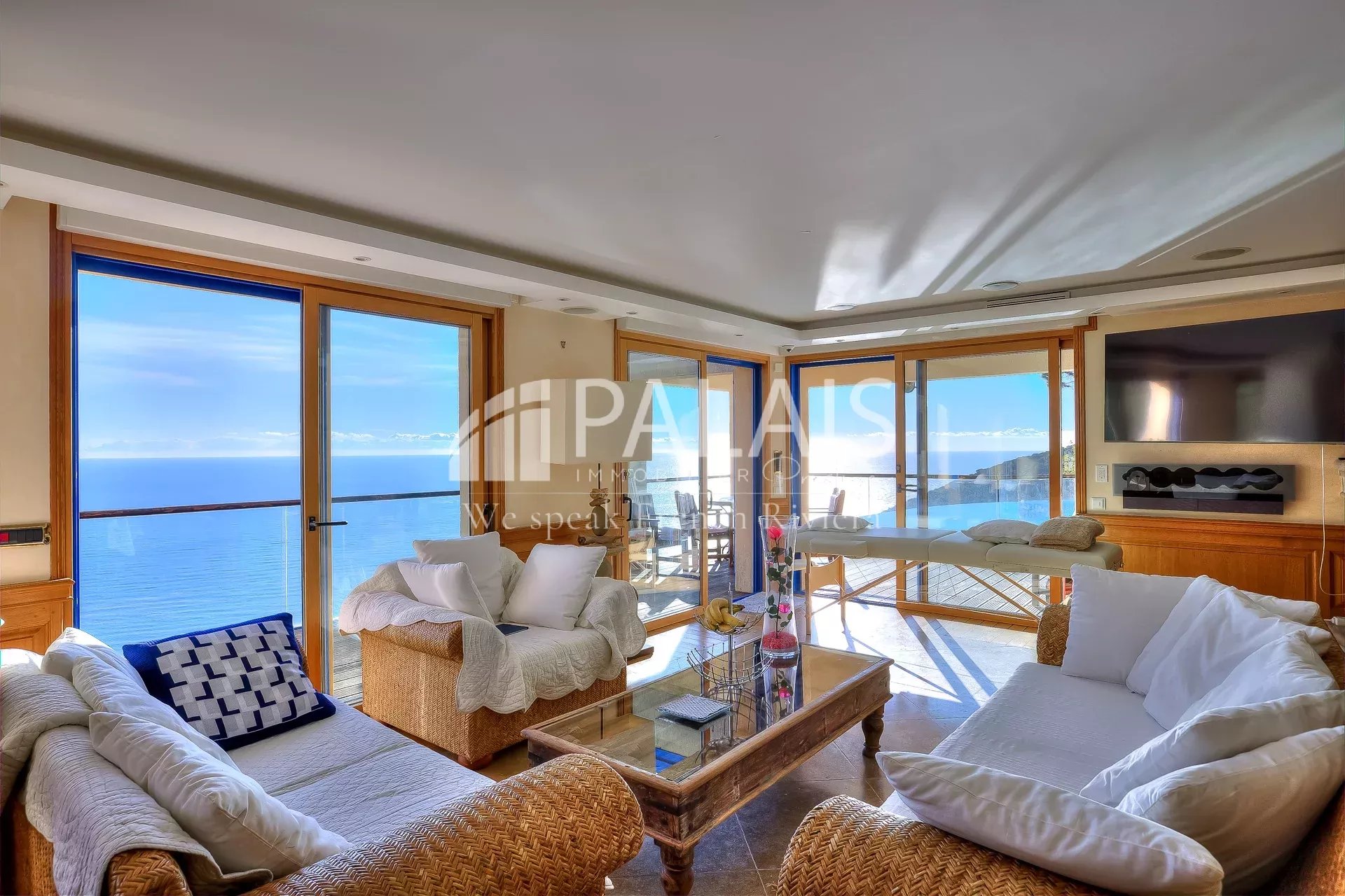 Cette villa d'exception offre une vue mer panoramique depuis toutes ses pièces et également de ses terrasses. Comme une sensation de vivre sur un bateau.