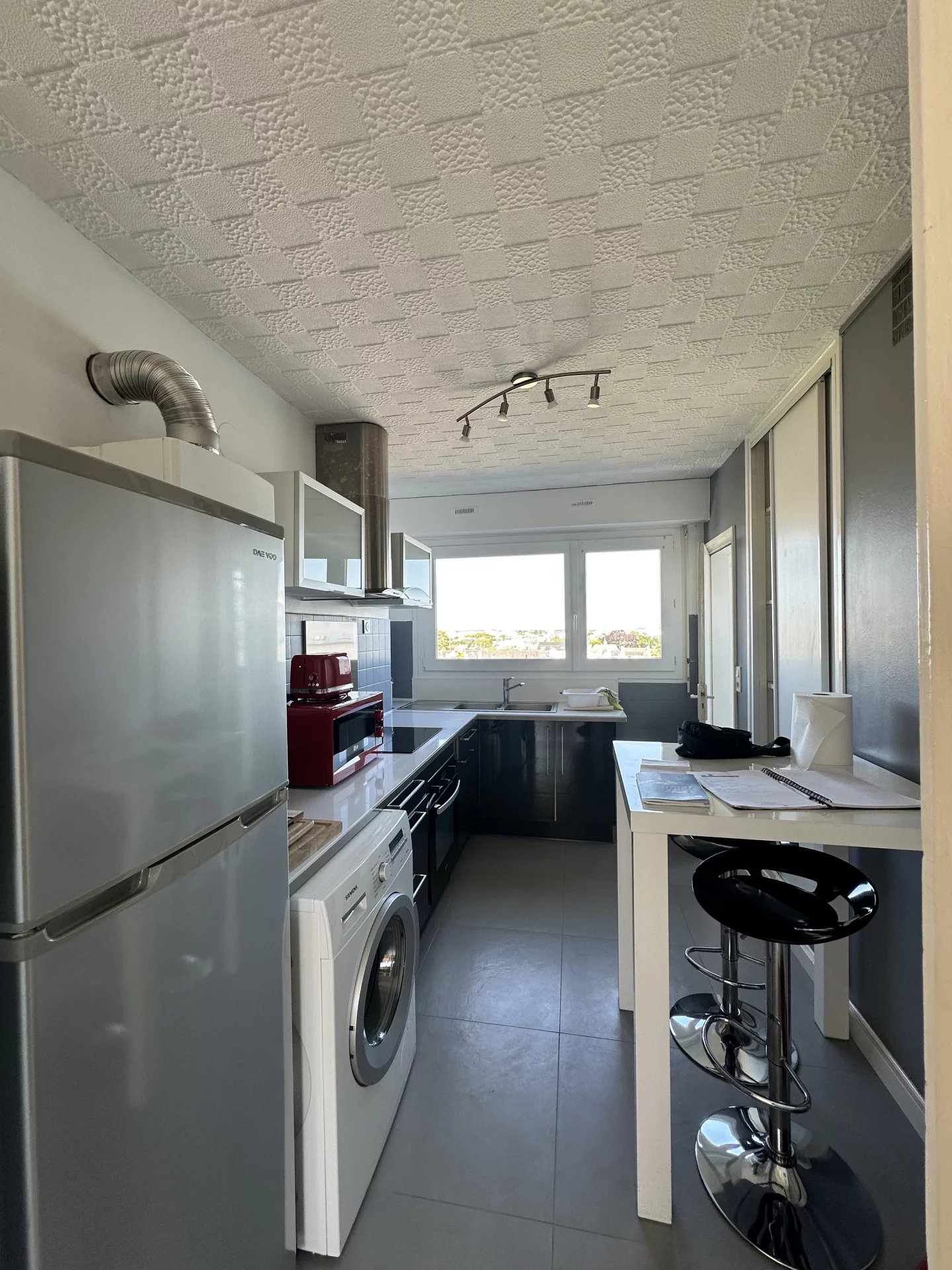 Au 4ème et dernier étage d'une résidence entretenue, Fabienne vous présente ce T3 qui se compose d'une entrée, une cuisine fermée équipée, un cellier, une pièce de vie avec balcon exposée sud-ouest, deux chambres, dressing, une salle de bain, toilettes, rangements dans le couloir. LES PLUS : appartement rénové très bien situé, proche commodités, bus, écoles,