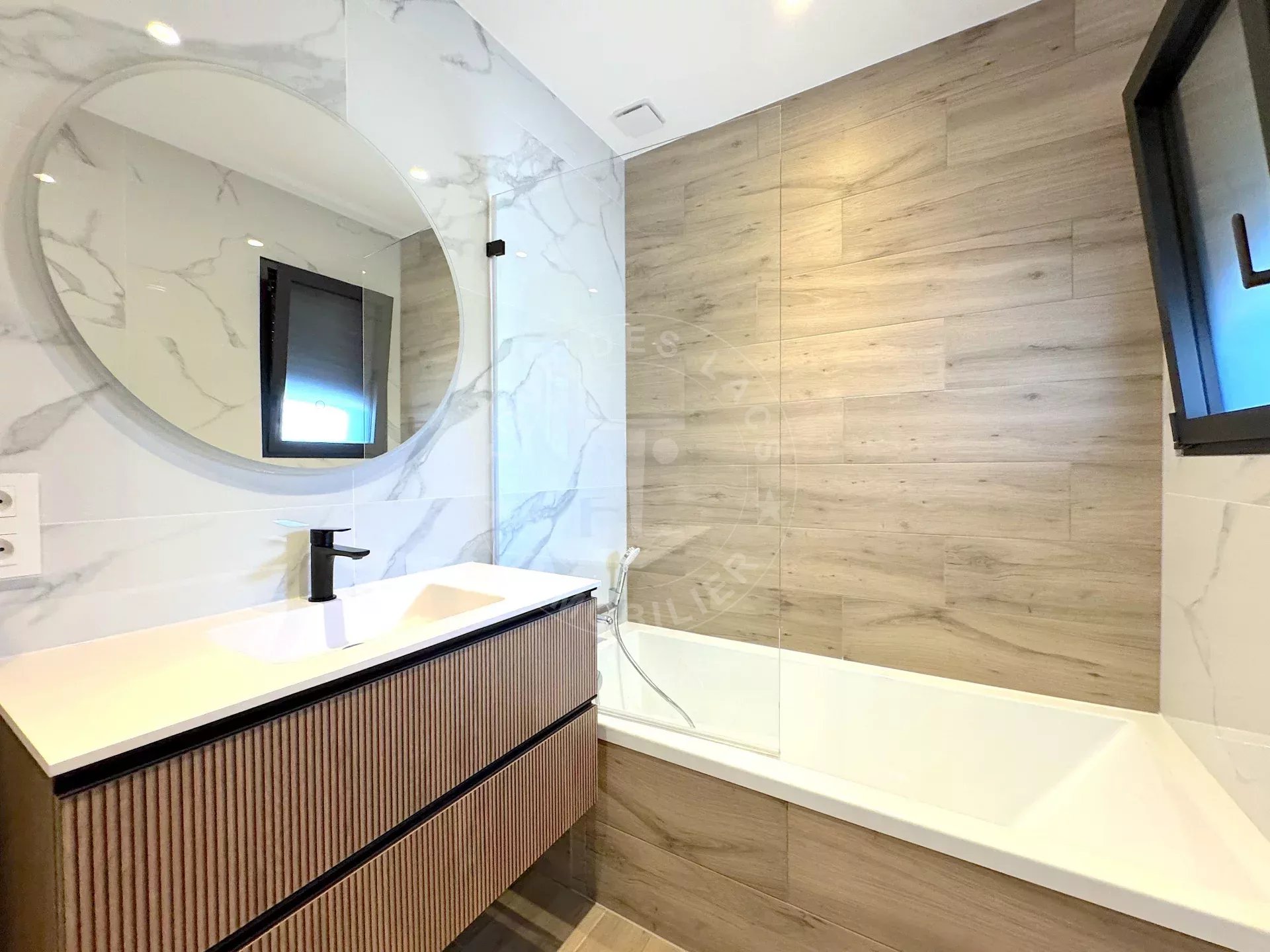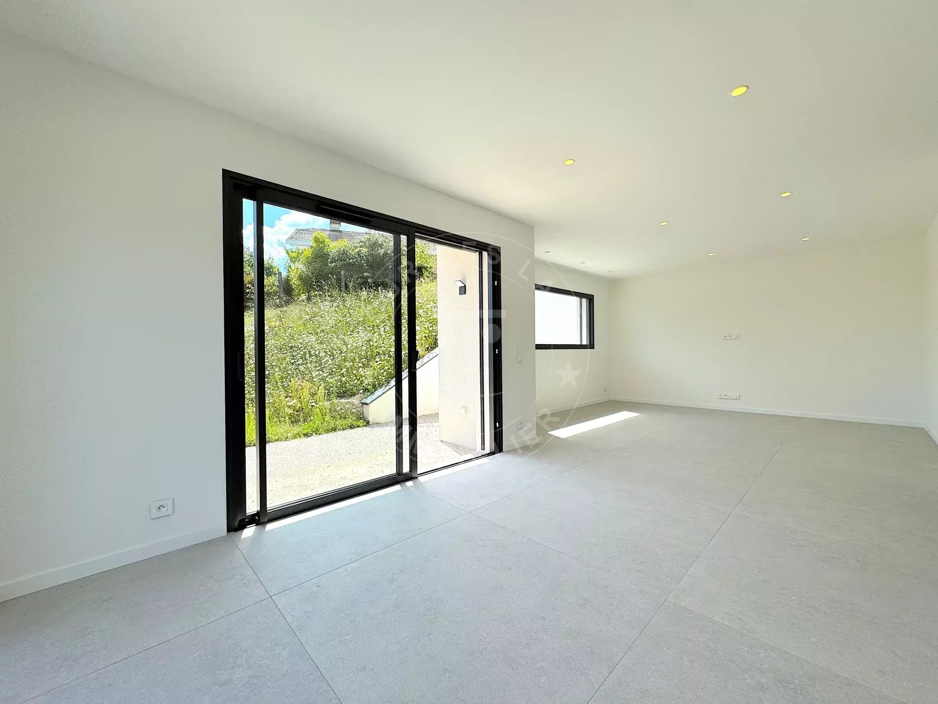 Cette maison offre 5 pièces spacieuses et lumineuses, grâce à ses grandes baies vitrées coulissantes en aluminium, sa distribution fonctionnelle et ses prestations haut de gamme