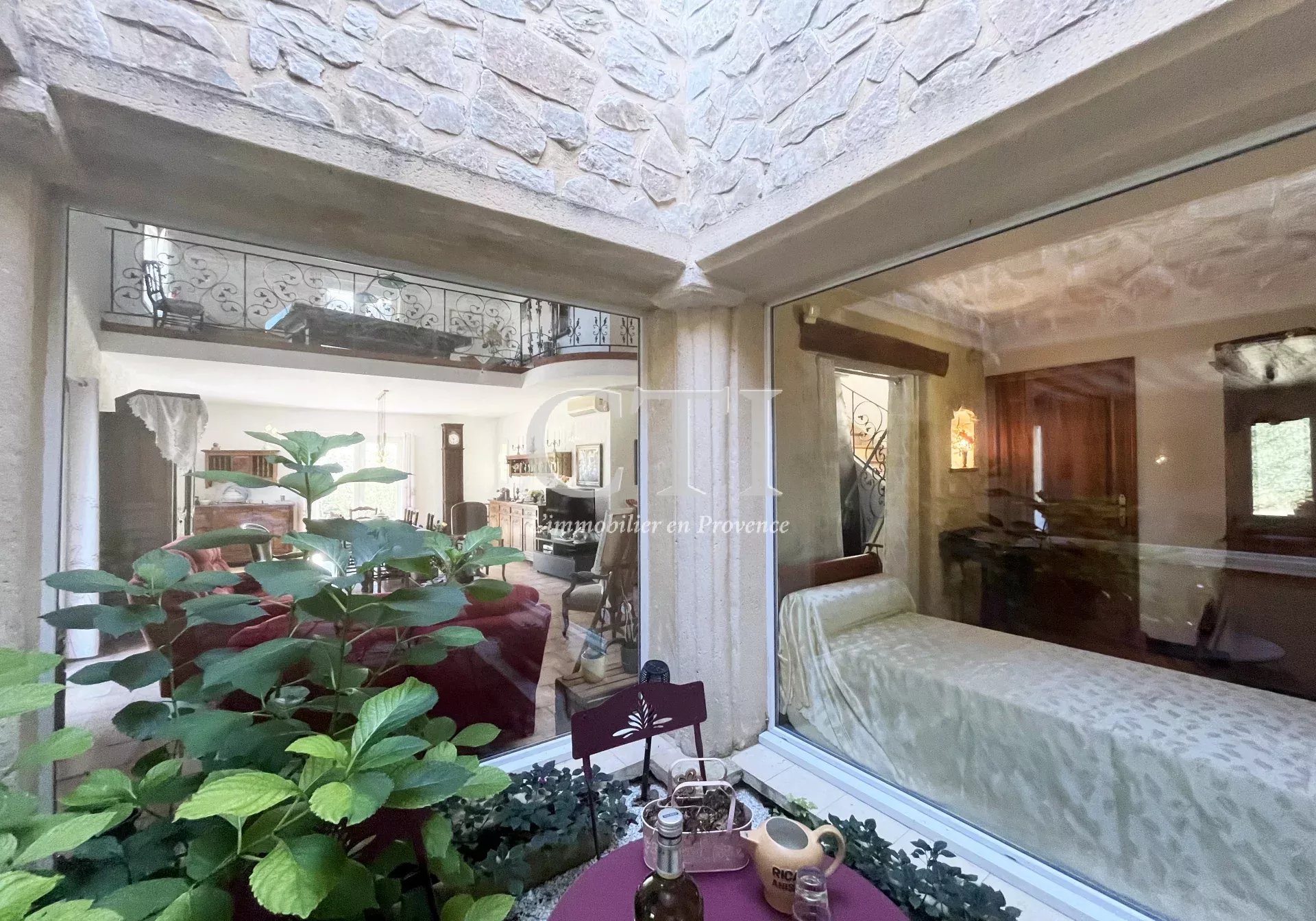 L'intérieur de la maison se compose de spacieux espaces de vie baignés de lumière, avec des matériaux de qualité qui soulignent le caractère de la pierre. Les nombreuses ouvertures permettent de profiter de l'environnement extérieur tout au long de l'année. L'ensemble des pièces sont agencées pour garantir à la fois fonctionnalité et convivialité.