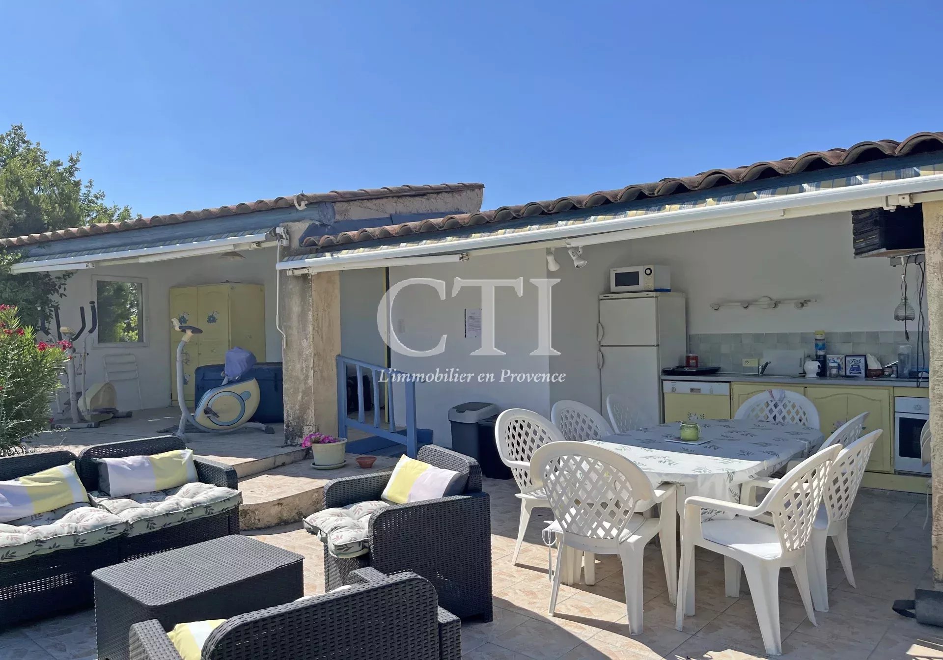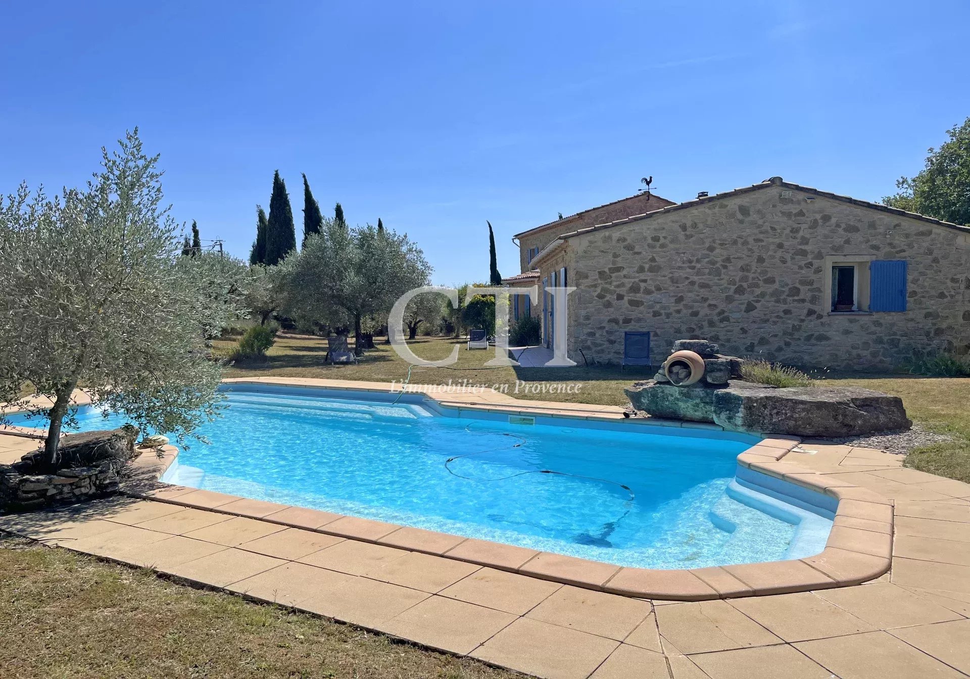 À l’extérieur, le terrain paysager se prête à des moments de détente en famille ou entre amis, grâce notamment à la piscine qui offre une vue spectaculaire sur le Mont Ventoux. Des dépendances telles qu'un pool house, un garage et un atelier complètent l'ensemble, apportant à la propriété des atouts fonctionnels appréciables.