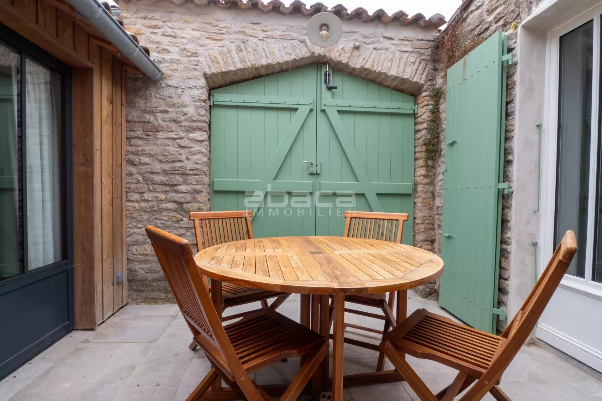 Dans une des plus belle rue du village , jolie maison de pays entièrement rénovée comprenant au rdc : vaste entrée, séjour avec poêle à bois, cuisine équipée et aménagée, chambre, salle d'eau et toilettes. A l'étage : palier desservant 2 chambres, salle de bains et toilettes. L'ensemble ouvre sur deux rues, une jolie cour privative et dispose également d'un charmant jardin bordé de murs en pierre. C'est un bien rare à découvrir avec l'agence Abaca des Portes en Ré.