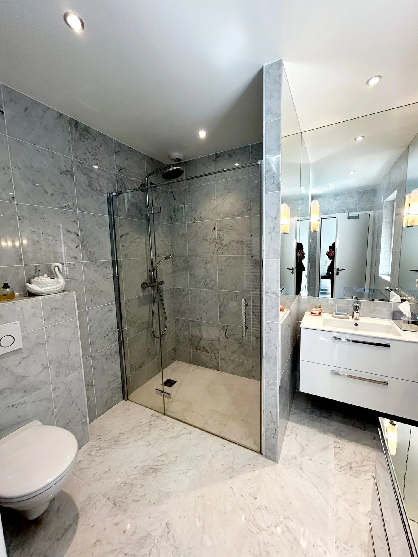 elle se compose : d'un hall d'entrée, séjour, salon, très belle cuisine équipée, 1 chambre en suite, placard, Terrasse abritée.