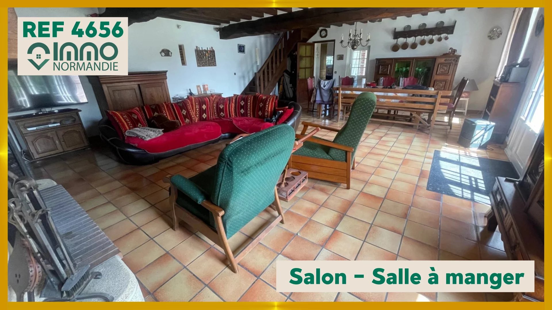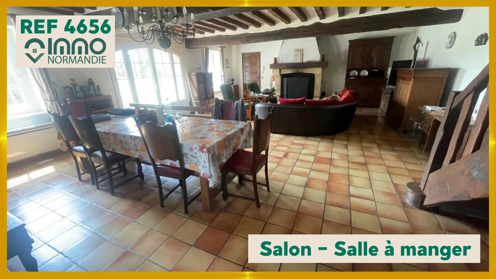 Rez-de-chaussée: Cuisine, Grand séjour avec cheminée