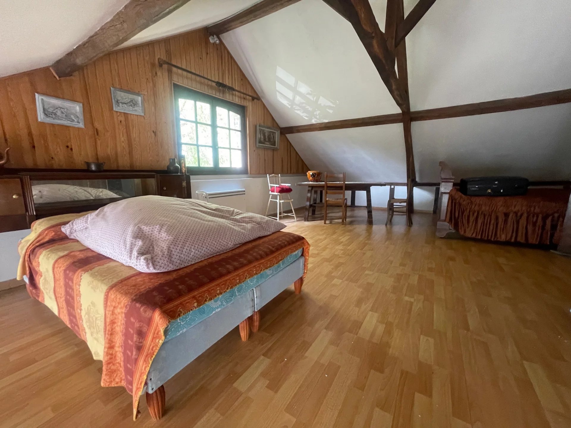 Sur une belle parcelle arborée de 3 800 m², découvrez cette bâtisse pleine de cachet, idéale pour une famille ou une résidence secondaire. Rez-de-chaussée: Cuisine, Grand séjour avec cheminée Étage: Palier avec nombreux placards, Salle d’eau avec toilettes, 4 chambres. Garage Extérieur : grand jardin de 3800m2, potentiel d’aménagement (potager, jeux, piscine* selon réglementation) Chauffage électrique + cheminée Menuiseries PVC double vitrage Assainissement individuel : fosse toutes eaux Extérieur : grand jardin, potentiel d’aménagement (potager, jeux, piscine* selon réglementation)