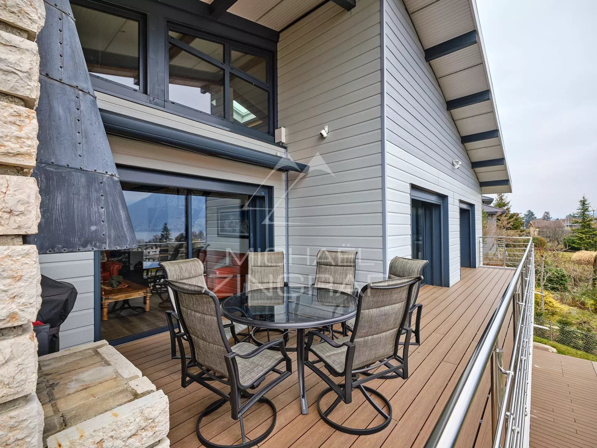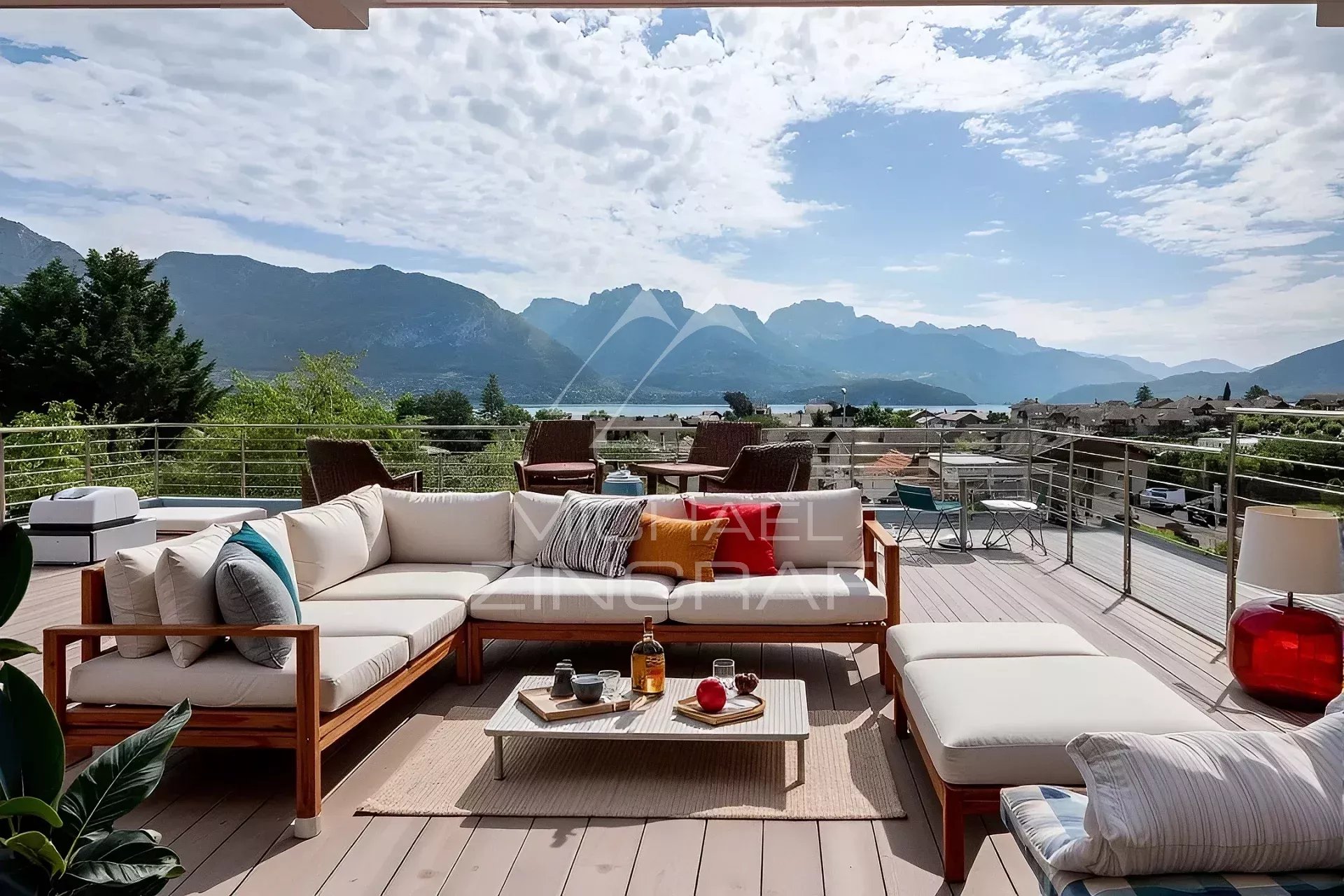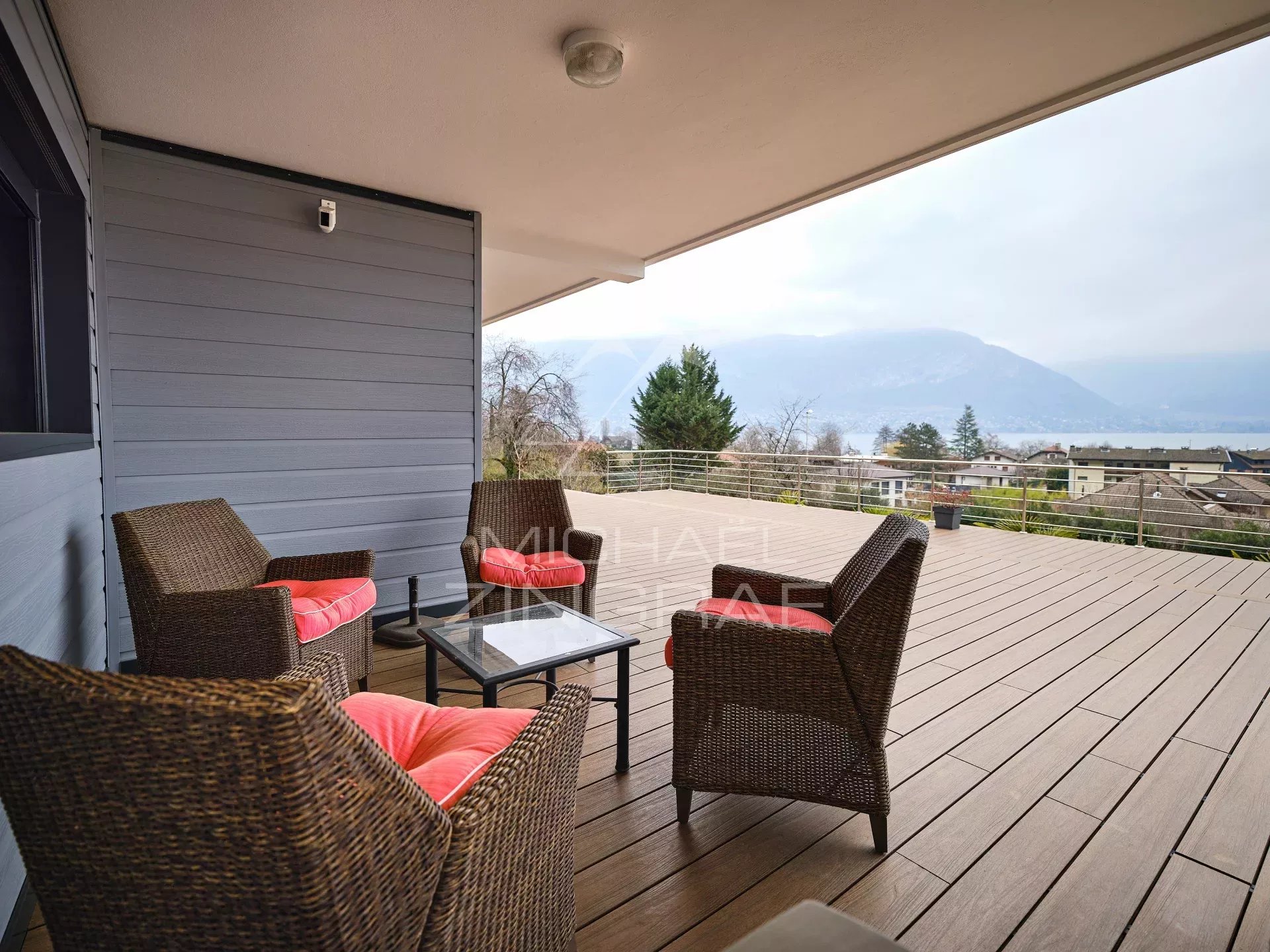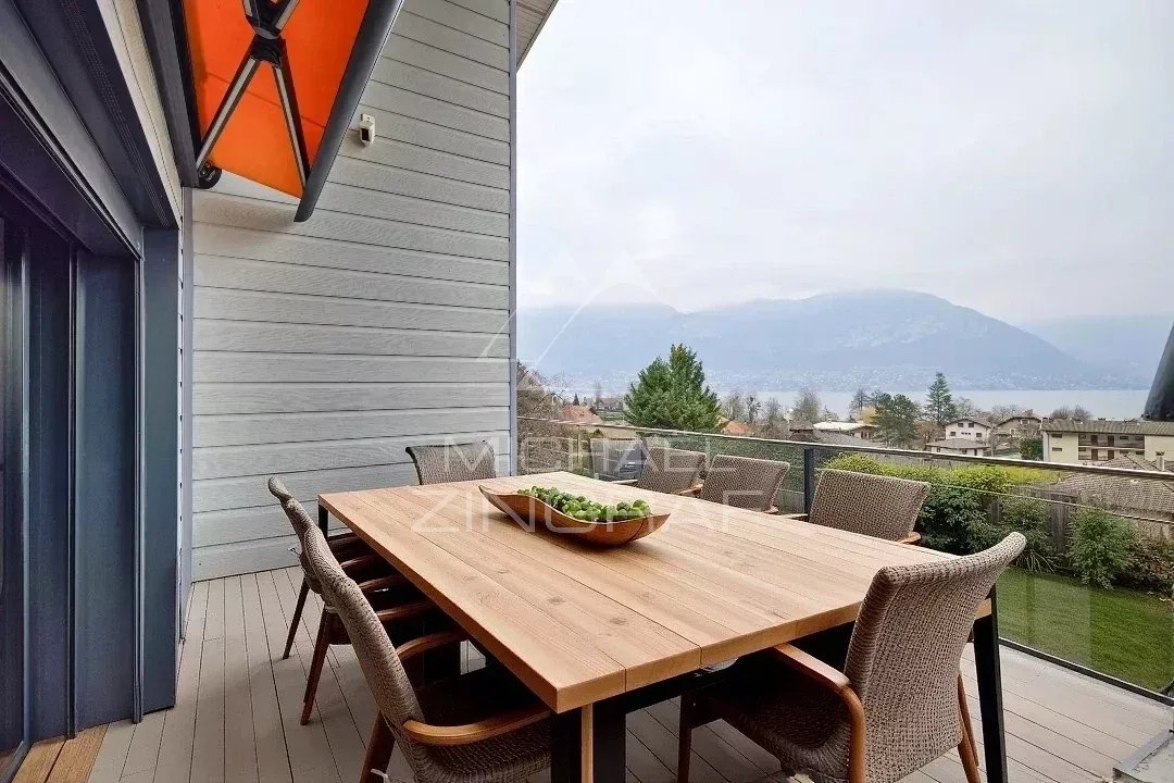 L'agence Michael Zingraf vous présente cette villa contemporaine (241m² Carrez /293m²), offrant une vue panoramique spectaculaire sur le lac d'Annecy et les montagnes environnantes. Excellente situation à 8' d'Annecy Centre / 45' de l'Aéroport de Genève, à proximité immédiate du lac, de la plage de Sévrier, ainsi que des commerces du village.