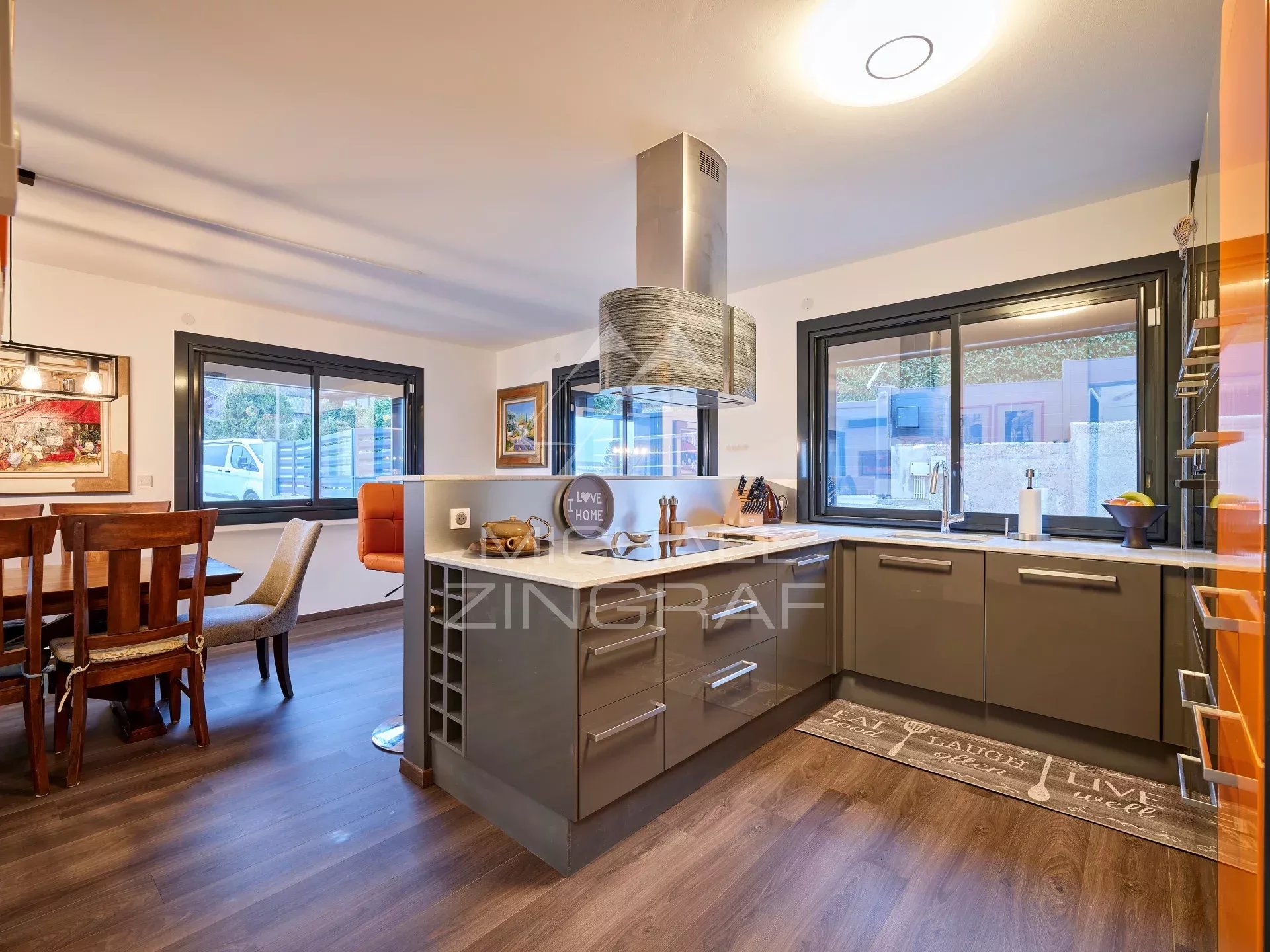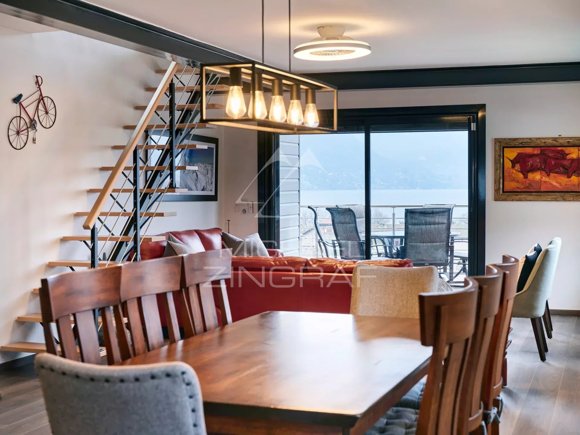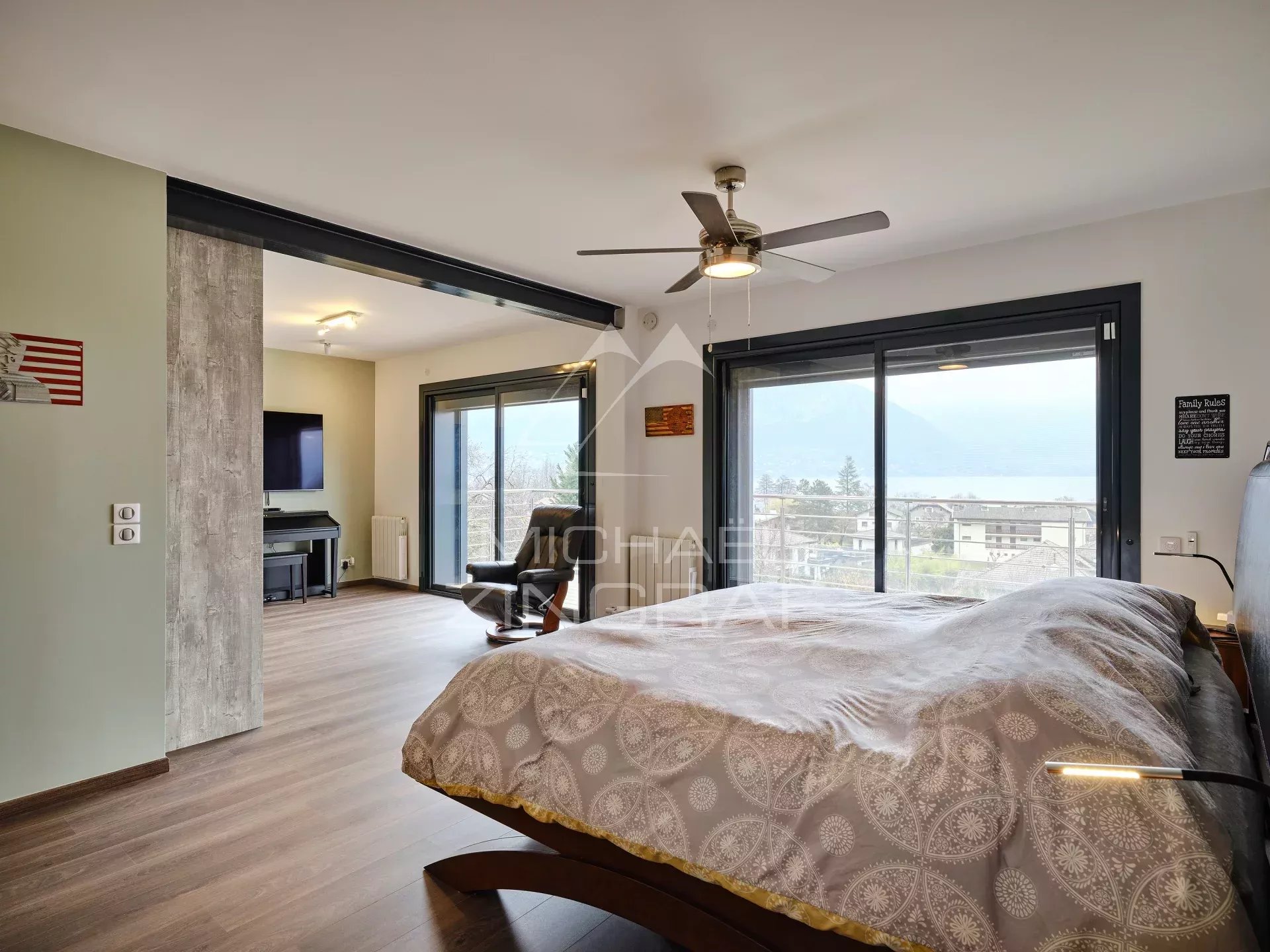 L'agence Michael Zingraf vous présente cette villa contemporaine (241m² Carrez /293m²), offrant une vue panoramique spectaculaire sur le lac d'Annecy et les montagnes environnantes. Excellente situation à 8' d'Annecy Centre / 45' de l'Aéroport de Genève, à proximité immédiate du lac, de la plage de Sévrier, ainsi que des commerces du village.