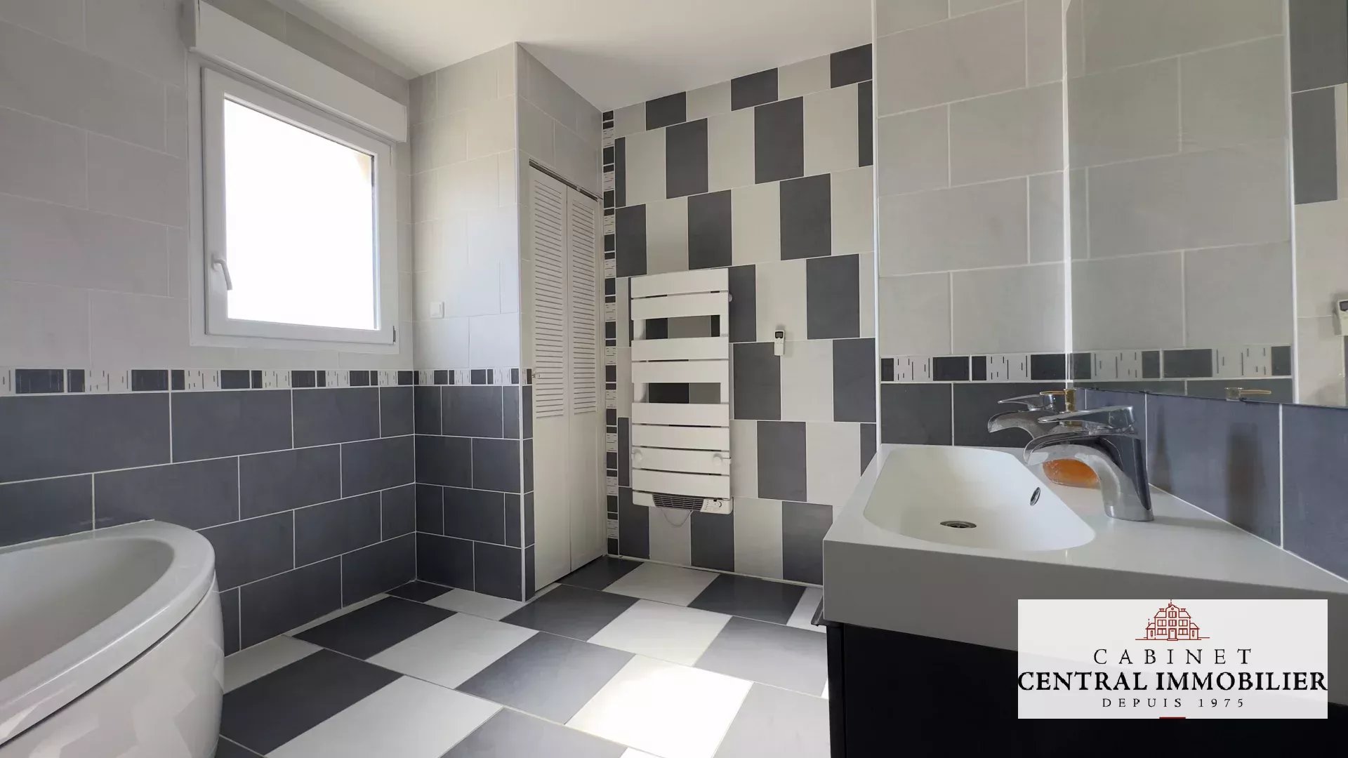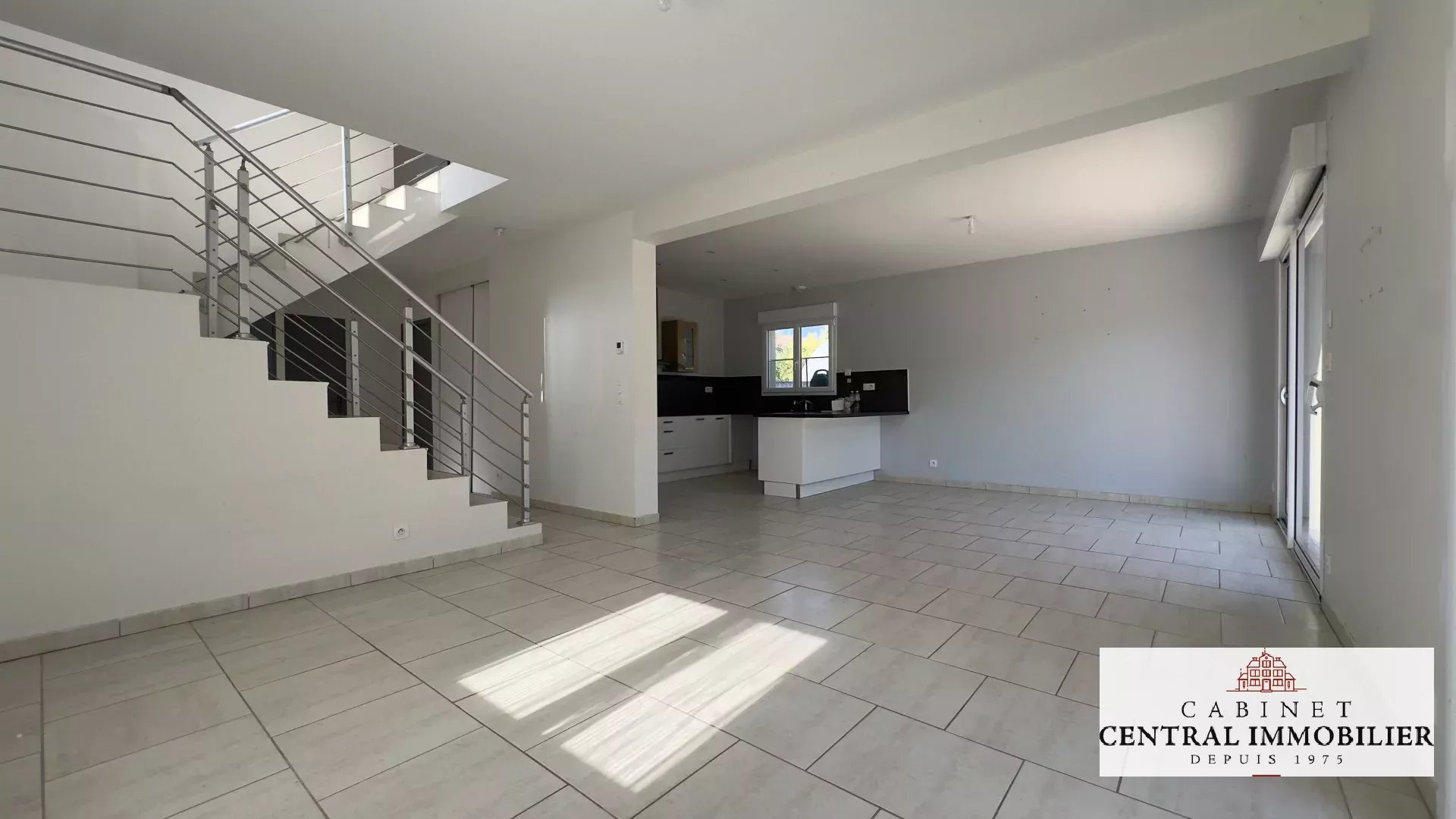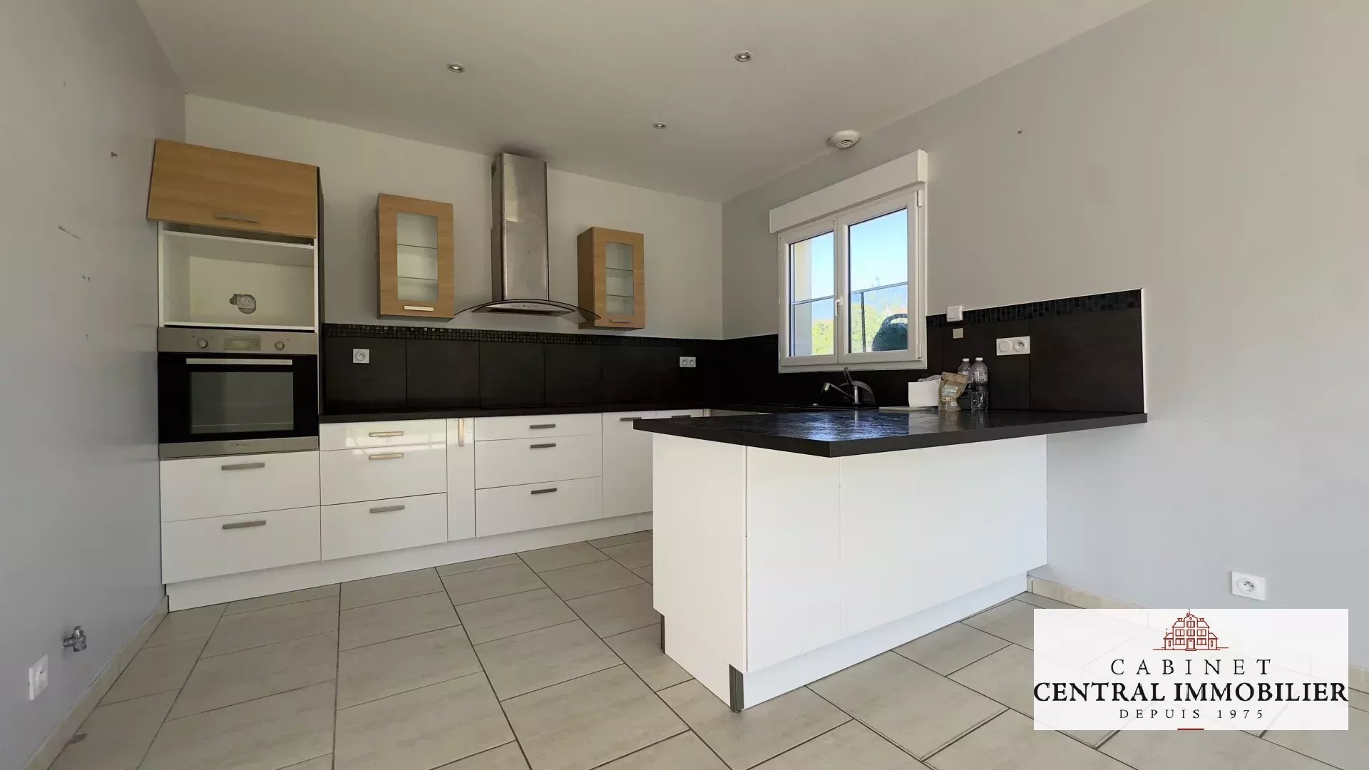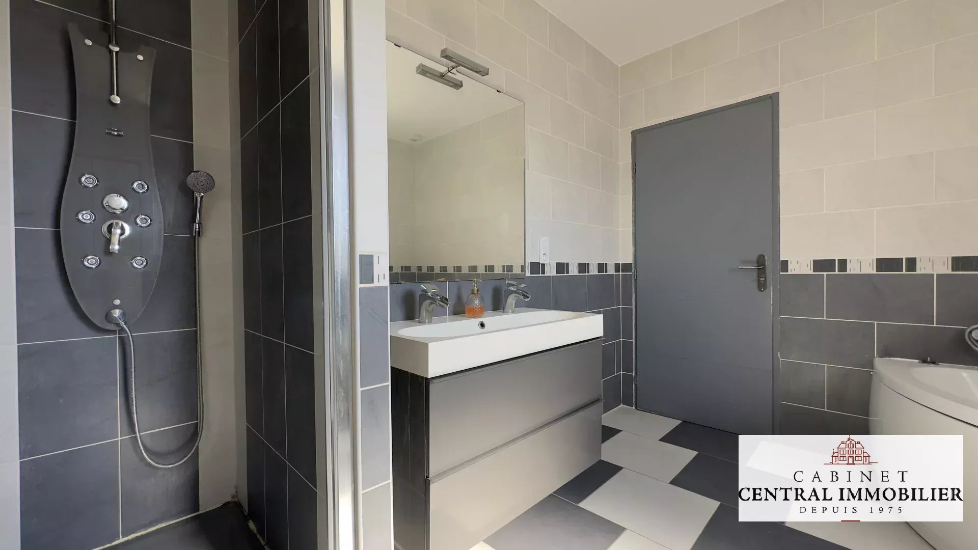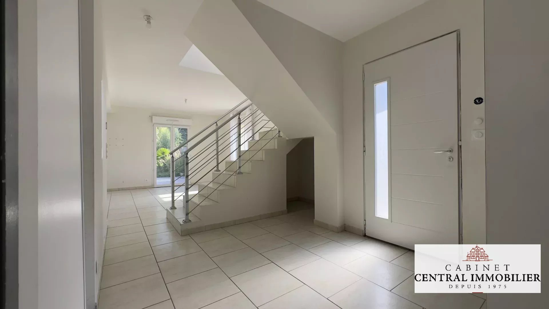 Pavillon hors lotissement, en centre ville, comprenant : entrée carrelée avec placard, pièce de vie de 37.60m² carrelée avec cuisine aménagée équipée et baie vitrée accès terrasse, buanderie carrelée, wc carrelé avec lave mains, suite parentale de 13.20m² carrelée (dressing/salle d'eau/wc). À l'étage : palier carrelé, 3 chambres de 15.10m²/16.50m² et 14.20m² carrelées avec placards, bureau de 7.60m² carrelé, wc carrelé, salle de bains de 10.50m² carrelée (douche/baignoire/double vasques). Chauffage au sol au rez de chaussée et convecteurs à l'étage. Volets roulants électriques. Garage avec porte automatisée. Appenti. Terrain clos de 692m².