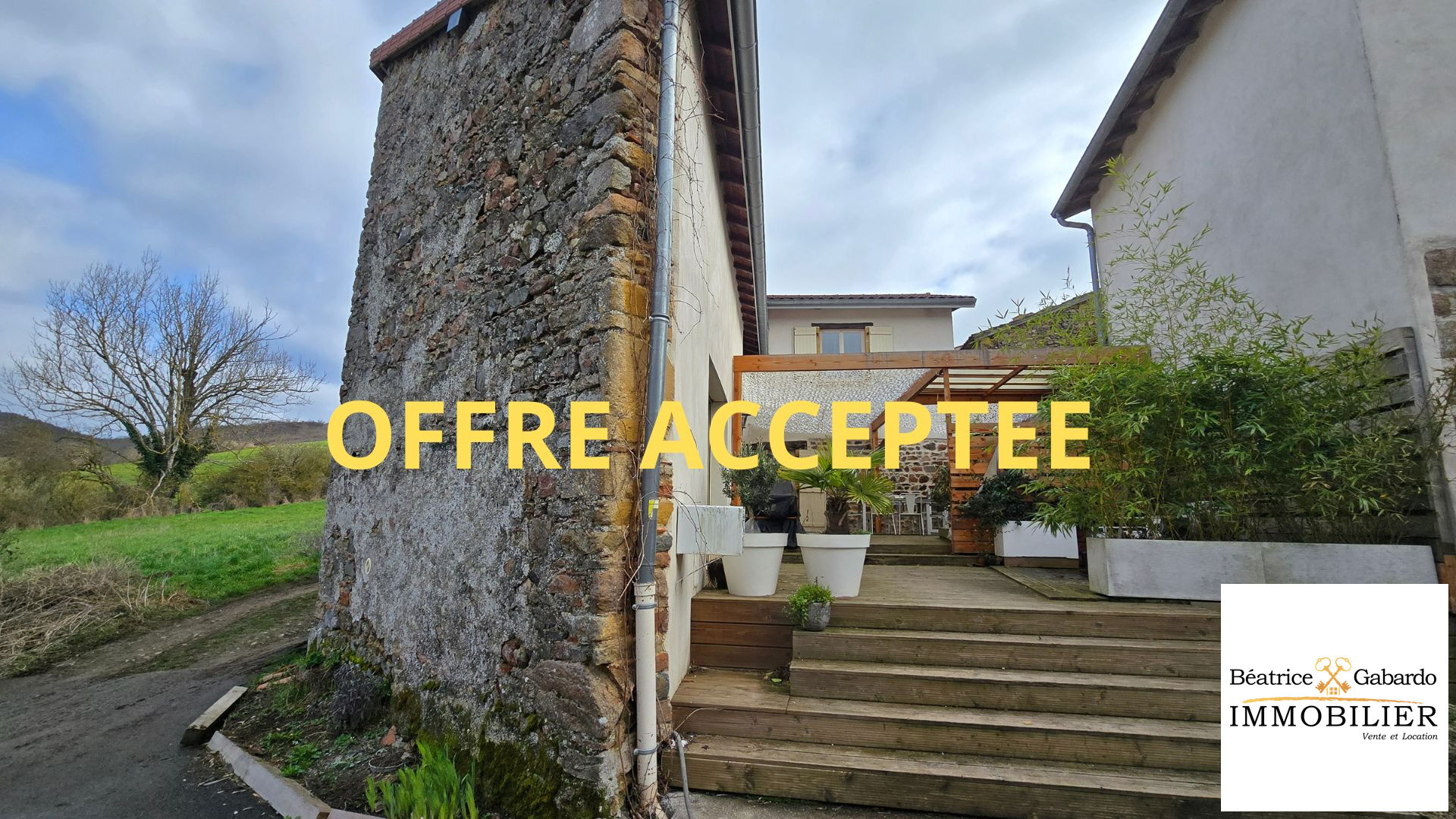 TROP TARD - OFFRE ACCEPTEE Béatrice GABARDO Immobilier vous propose en exclusivité cette belle maison avec charme située sur la commune de Létra (69620). Sans travaux vous y poserez vos valises car ce sera un coup de coeur. Elle est composée d'une cuisine équipée, d'une salle à manger, d'une chambre au rez de chaussée. A l'étage un salon cosy, deux chambres et une salle d'eau et un wc. La terrasse de 100 m² sans vis à vis, son garage pour stocker, sa dépendance de 54 m² sur 3 n