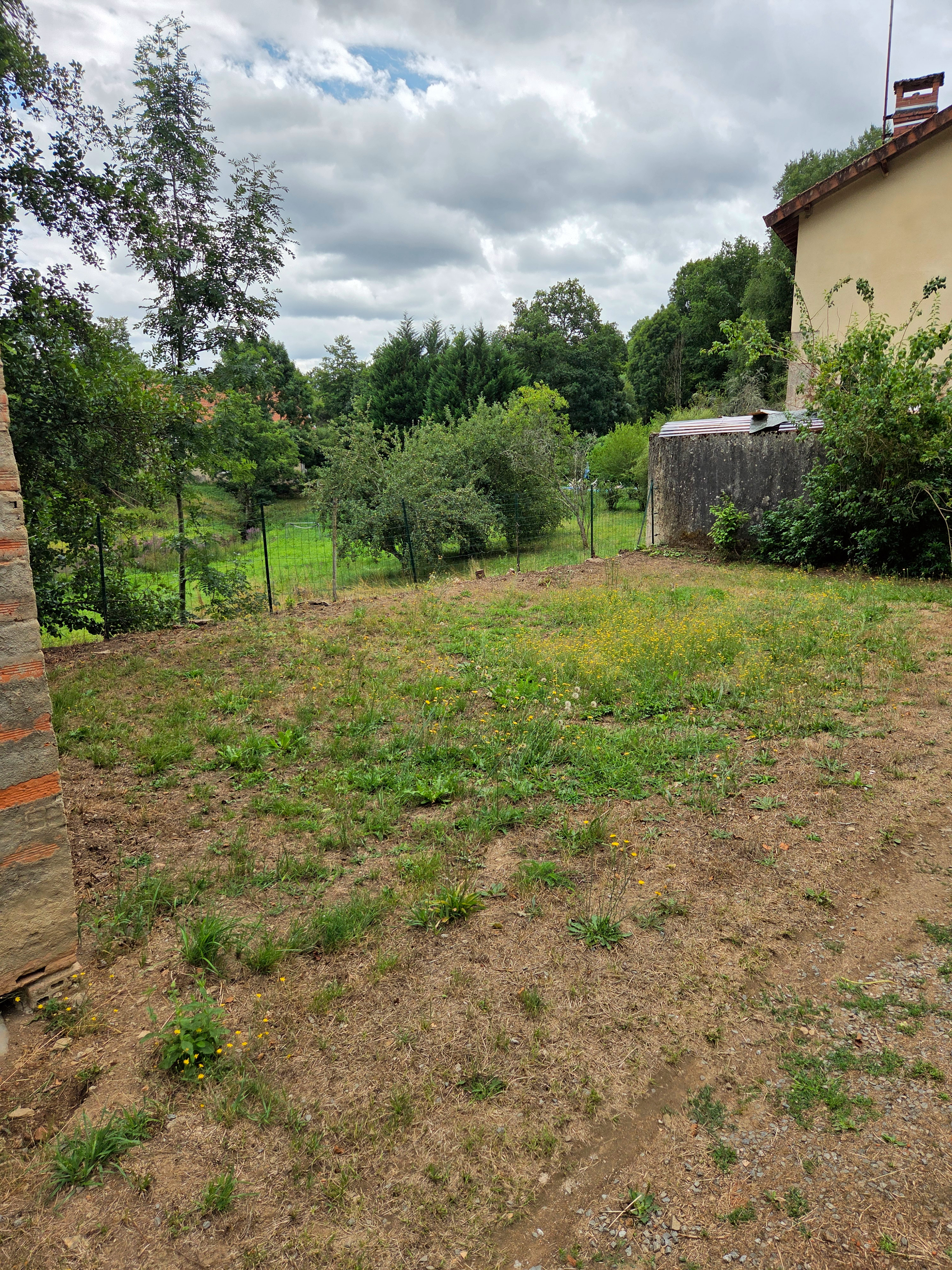 L'entrée de la propriété se fait par une cour commune à deux autres maisons. Un bornage est prévu avant la vente afin de délimiter précisément la parcelle.