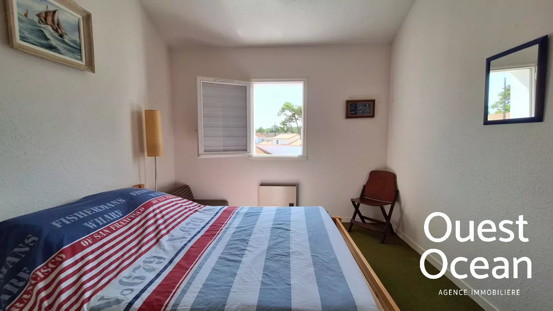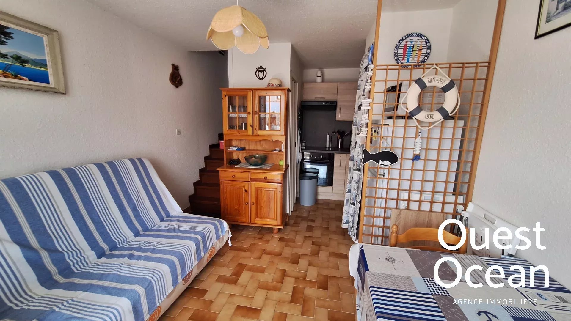 Votre agence Ouest Océan ,vous accueille téléphoniquement du lundi au vendredi à partir de 8h30, prenez rendez-vous avec Monsieur Yann ROBINEAU au 06.61.22.69.61 pour venir visiter ce pavillon de type T2 composé d'une pièce de vie, cuisine aménagée et équipée, cellier.A l'étage, sur palier, placard/penderie, une salle de bains et WC et une chambre. A l'extérieur, une terrasse et son store banne. Le lot est compléter d'une place de stationnement à proximité du logement. Vendu partiellement meublé. A 5 minutes à pieds des commerces et de plage et foret. Idéalement placé pour une résidence secondaire.