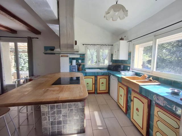 A VENDRE Maison Sud Ardèche 07 / Proche Saint Paul le Jeune, quartier calme, Bâtisse en pierre de 155 m2 offrant 4 spacieuses chambres, une grande cuisine américaine, belle pièce de vie avec cheminée, 2 salles d'eau. En complément, un Gîte indépendant d'environ 45 m2 comptant 3 chambres. Très beau terrain clos de 4500 m2, piscine de 12 x 4, belle terrasse ombragée et superbe vue sur la vallée. Idéal grande famille ou gîte. Garage, chauffage au sol.REF/ 4023