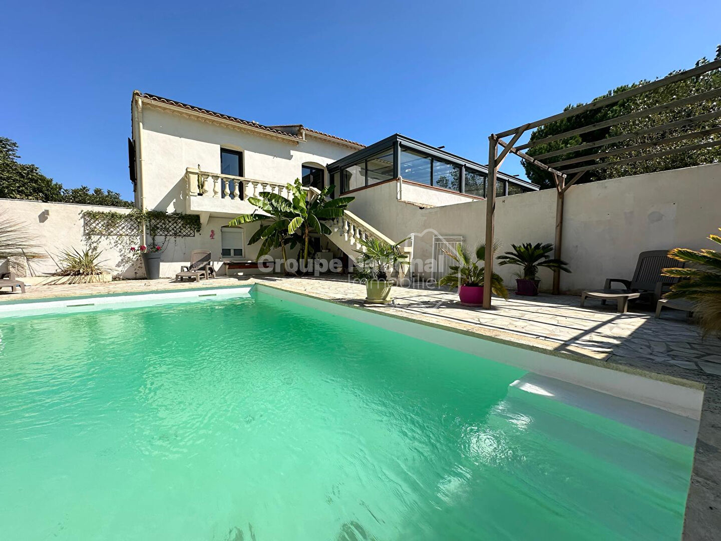Située au centre de la commune de VALERGUES, à seulement 15min de MONTPELLIER et des axes principaux ( A9 et gares) , venez découvrir cette magnifique villa de plus de 370 m² sur une parcelle de 1349 m². A l'étage vous trouverez l' habitation principale d'une surface habitable de 250m² disposant d un vaste séjour très lumineux de 135 m² avec sa véranda , d'une cuisine entièrement équipée , de 5 chambres ( dont une en duplex avec sa propre salle d eau), d une salle de bain et d 'un wc séparé. Au rez de chaussée , 3 appartements ( studio, T2, T3) sont loués avec chacun leur entrée indépendante générant environ 1900 euros /mois de revenus locatifs . Un très bel espace piscine , à l abris des regards ,vient compléter ce bien unique sur le secteur. - climatisation - isolation des combles - ballon thermodynamique - grand garage de 100 m² - panneaux solaires - double vitrage - exposition SUD OUEST N hésitez pas à nous contacter si besoin de renseignements complémentaires pour ce bien au fort potentiel .