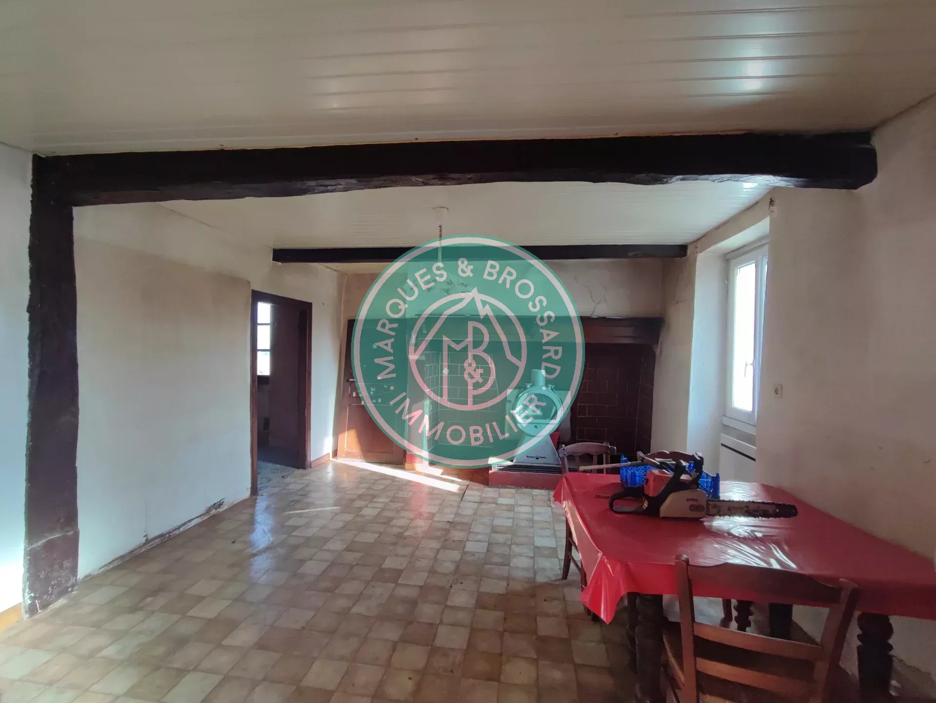 Concernant la deuxième maison d'environ 122 m², vous pourrez trouver en RDC un vaste séjour / cuisine de plus de 47 m², un cellier buanderie de 21.5 m², une salle d'eau, un WC, ainsi qu'une chambre (aujourd'hui utilisée en bureau).