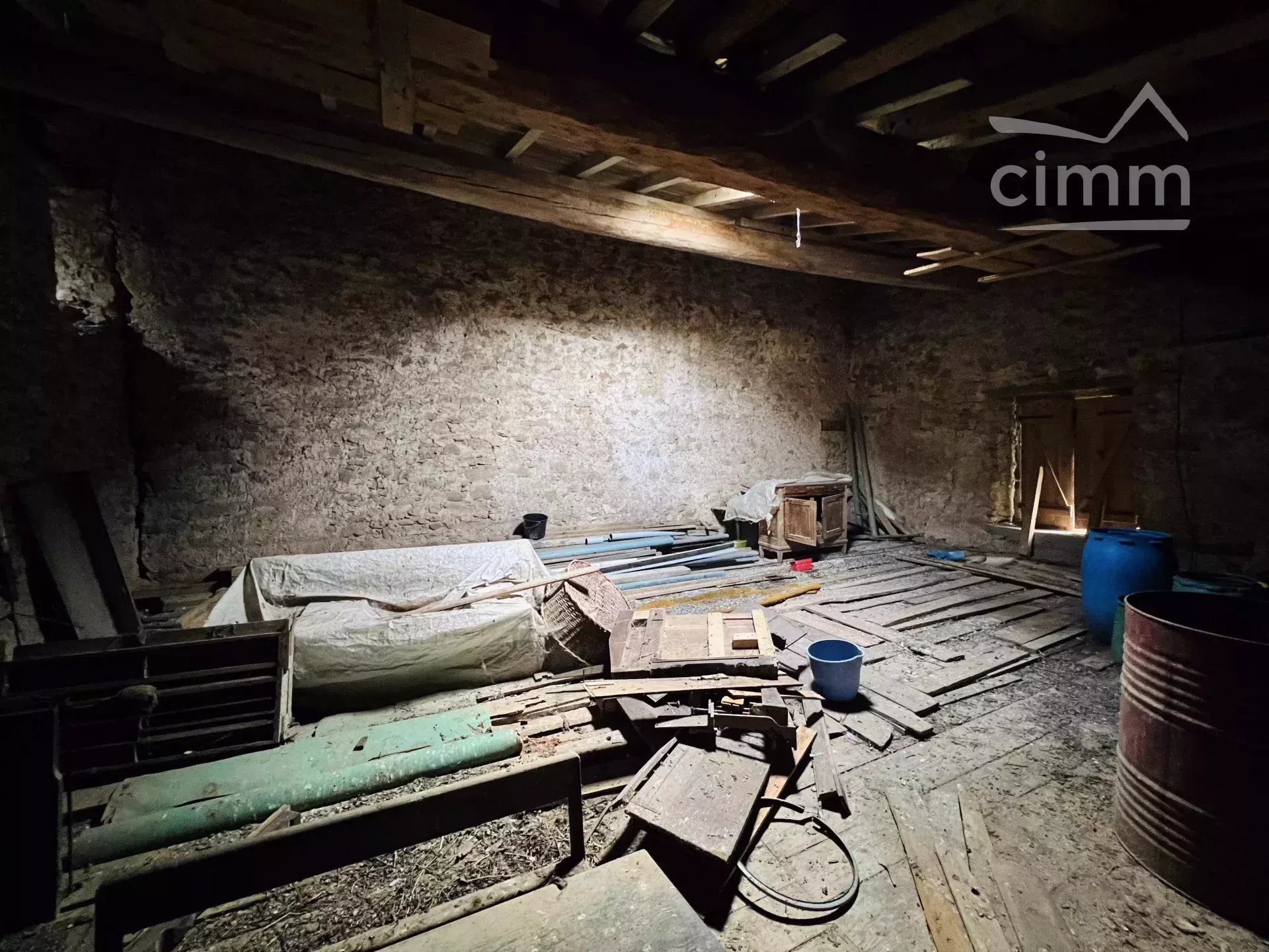 Belle grange à rénover entièrement avec un beau volume composée d'une pièce de 80 m² en rez-de-chaussée donnant sur une terrasse extérieure de 56 m² et un abri de 35 m².