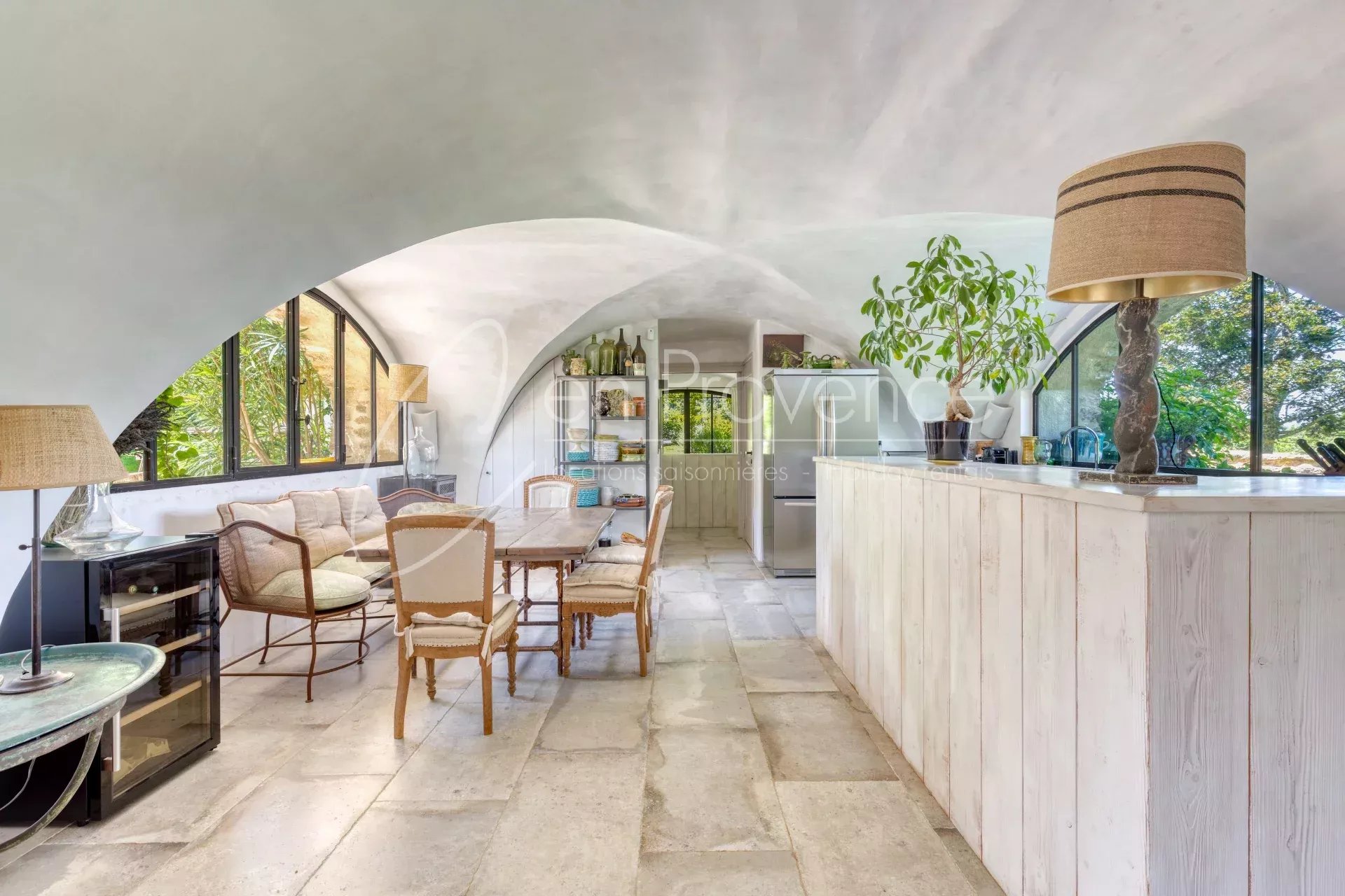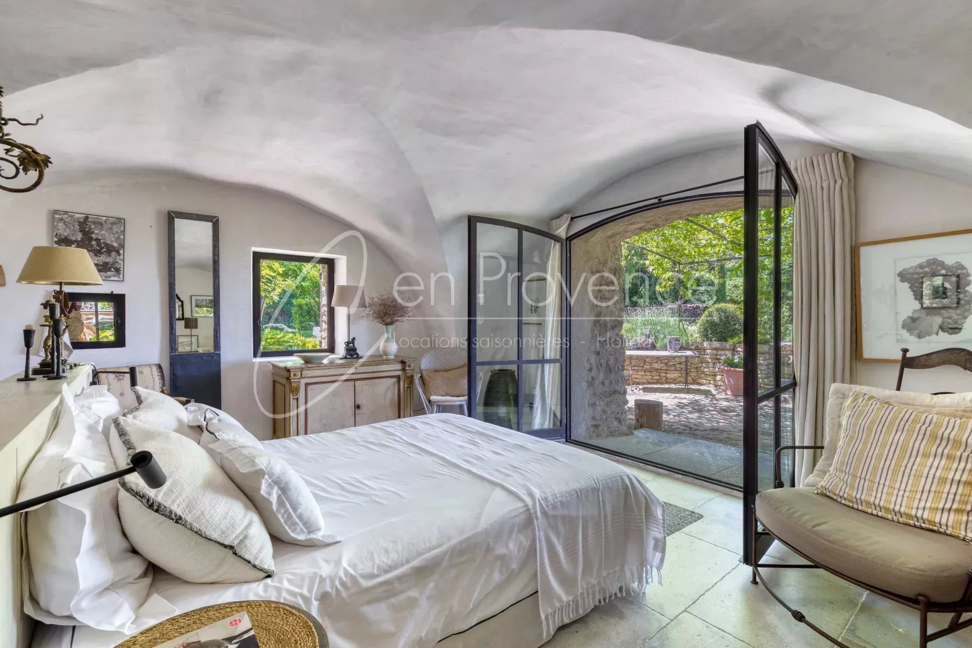 Ancienne chapelle du XIIe siècle restaurée avec élégance, cette maison de vacances unique allie authenticité, caractère et confort moderne. Située à seulement 1 km du village perché de Saignon, elle offre des vues spectaculaires sur le Luberon et le Mont Ventoux.